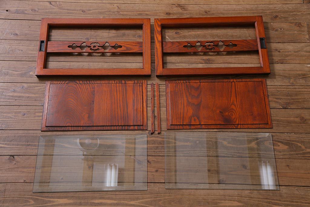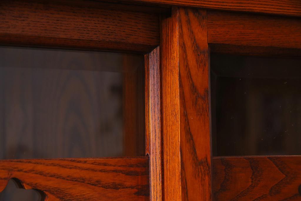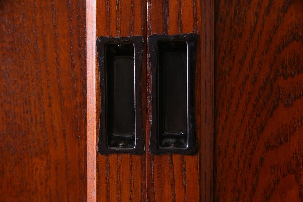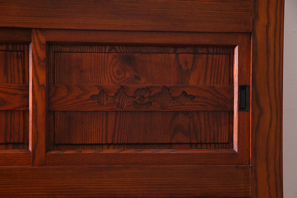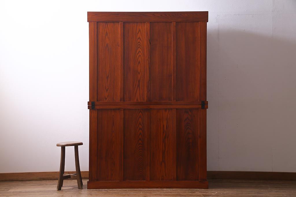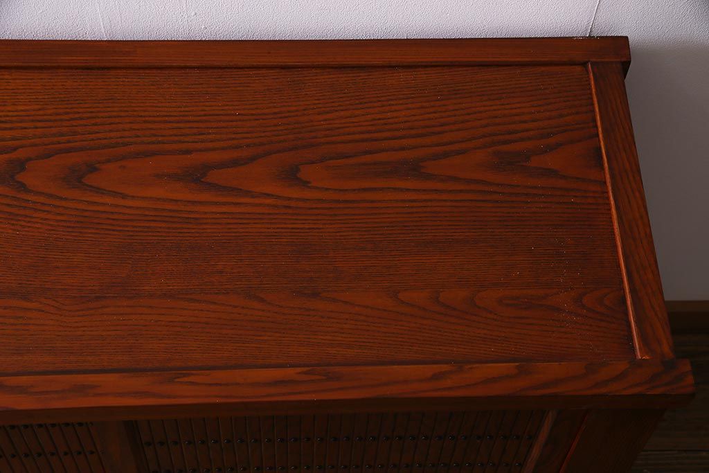 民芸家具 > 新古品 民芸家具 ニレ無垢材 重厚感と上品さを醸し出す重ね水屋箪笥(収納棚、食器棚、キャビネット)(R-037911)