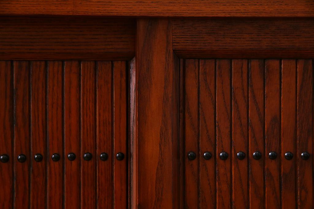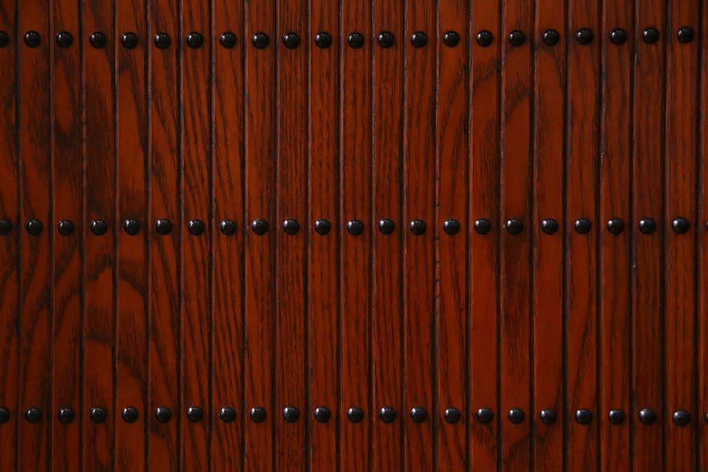 整然と並ぶ縦桟と鋲が存在感を高めており、
