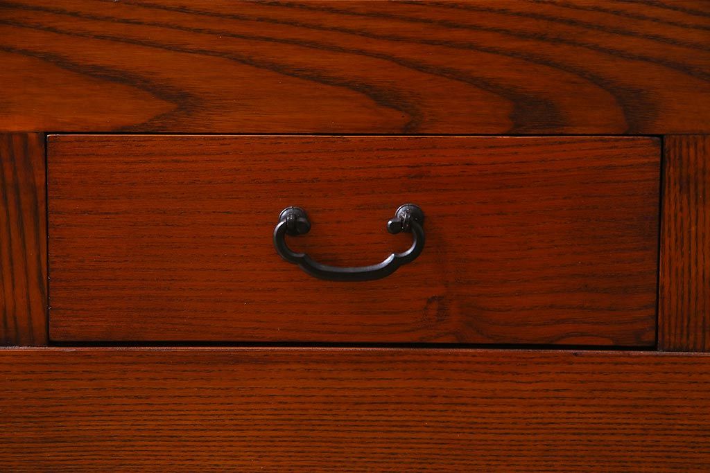 外観はもちろん、引き出しの中や背面までニレの無垢材が使用されており、