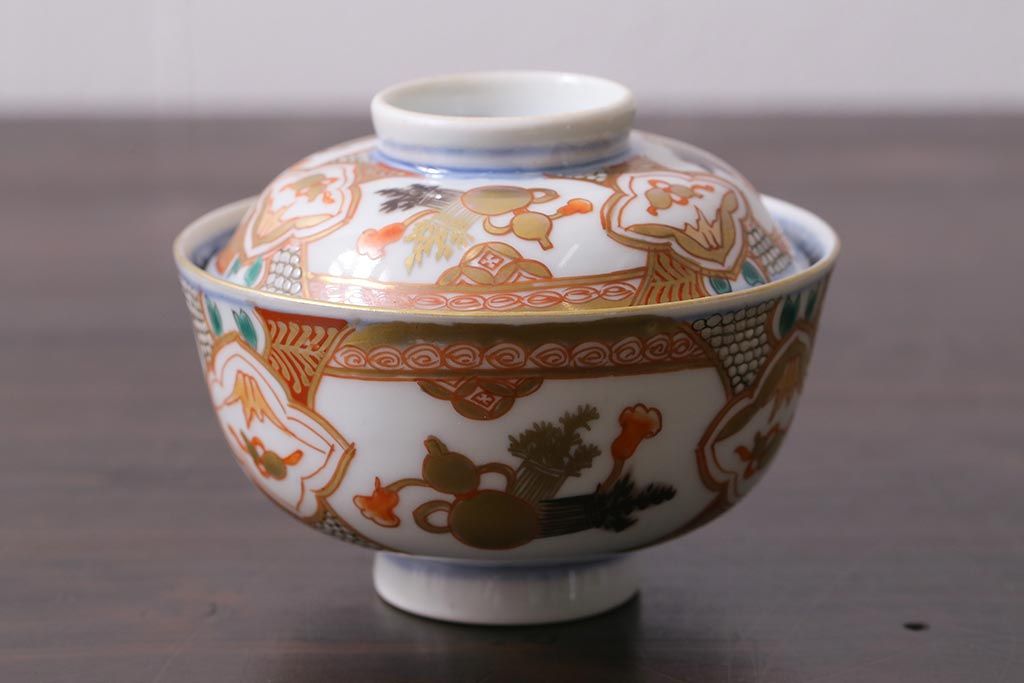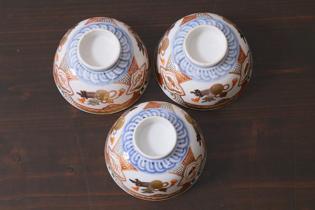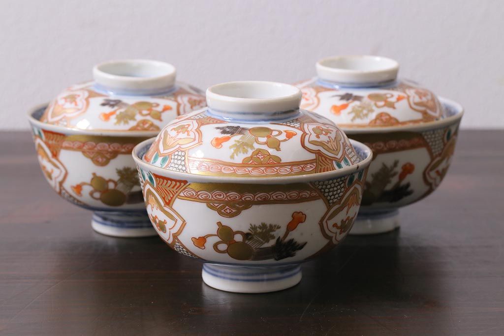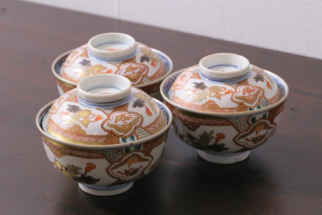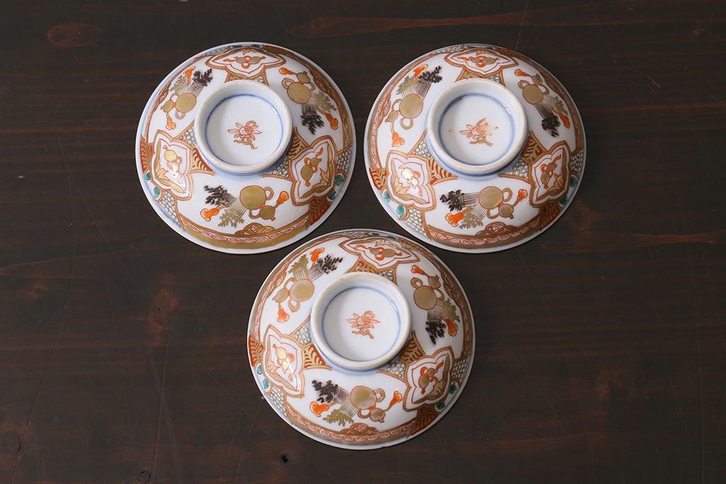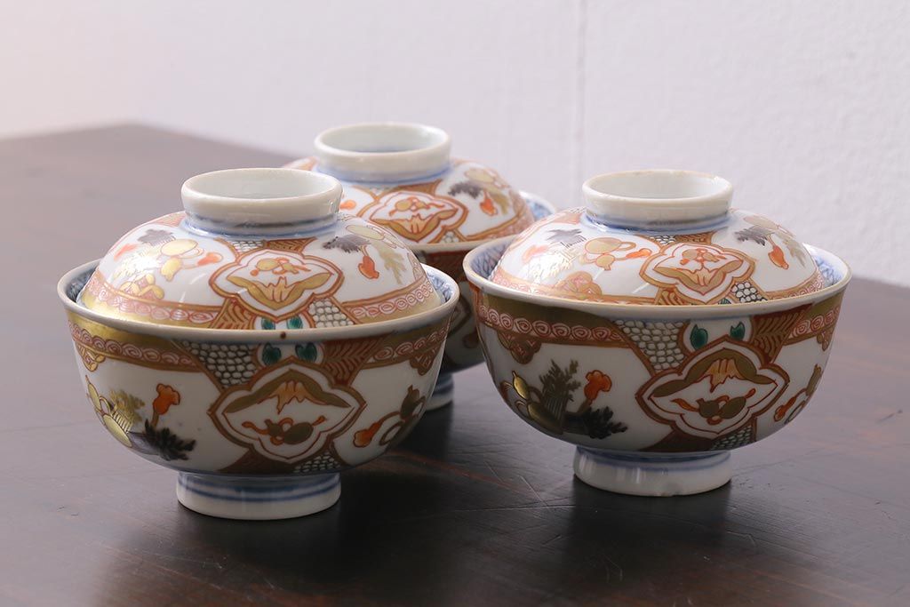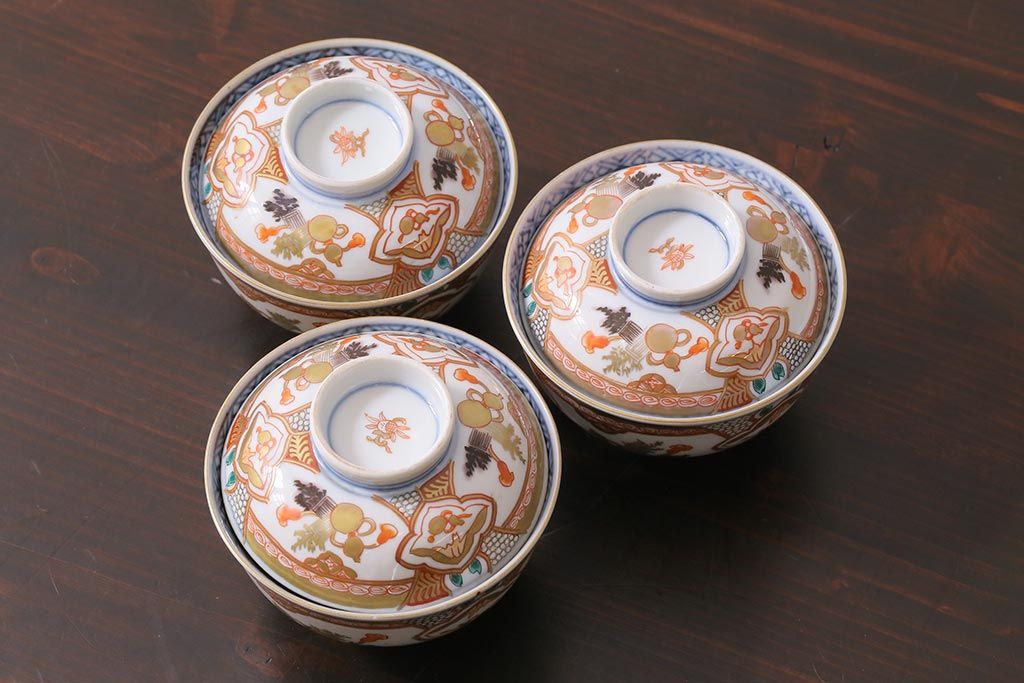 アンティーク雑貨 江戸期 色絵蓋付茶碗3個(伊万里)(R-037874)