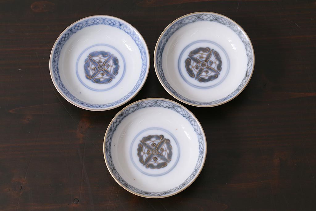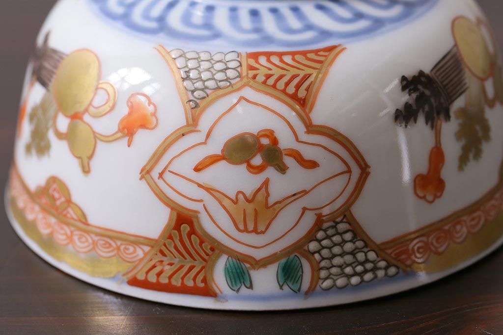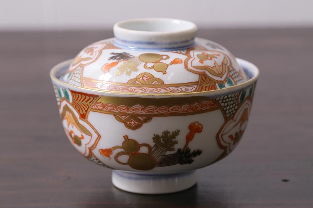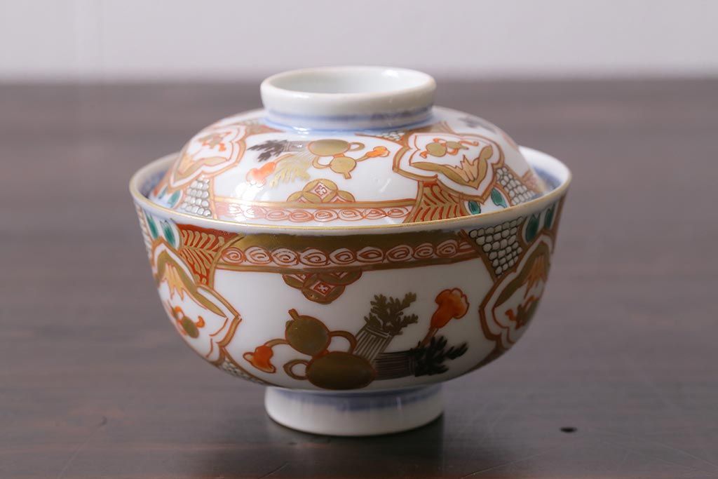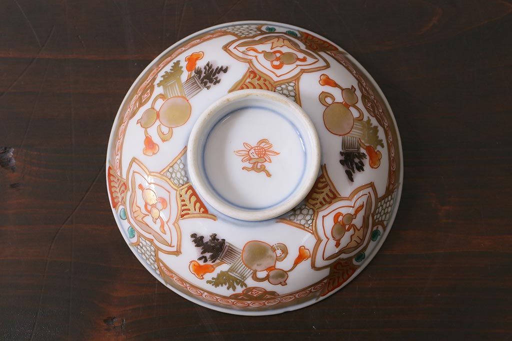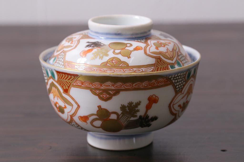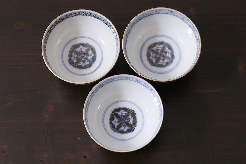 アンティーク雑貨 江戸期 色絵蓋付茶碗3個(伊万里)(R-037874)