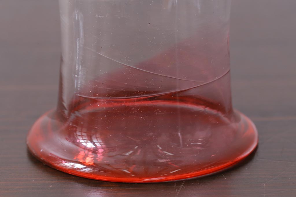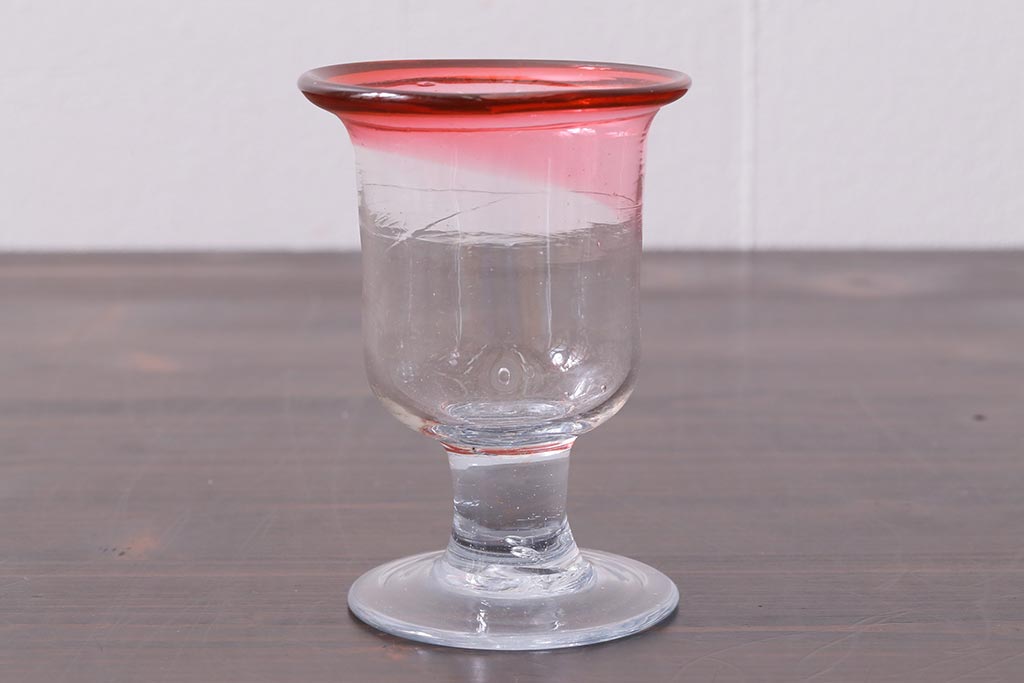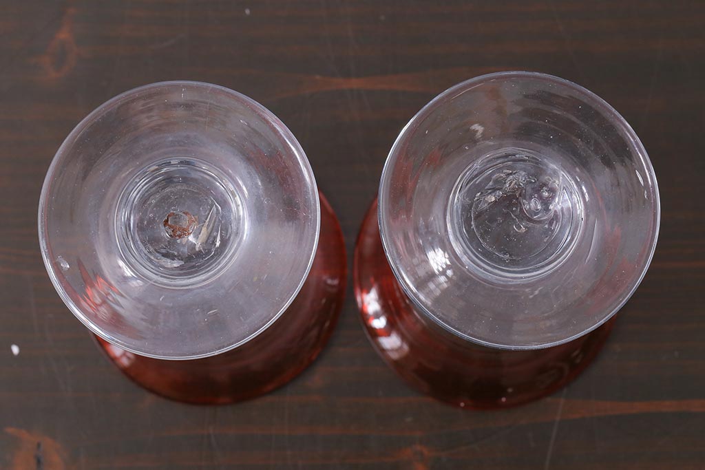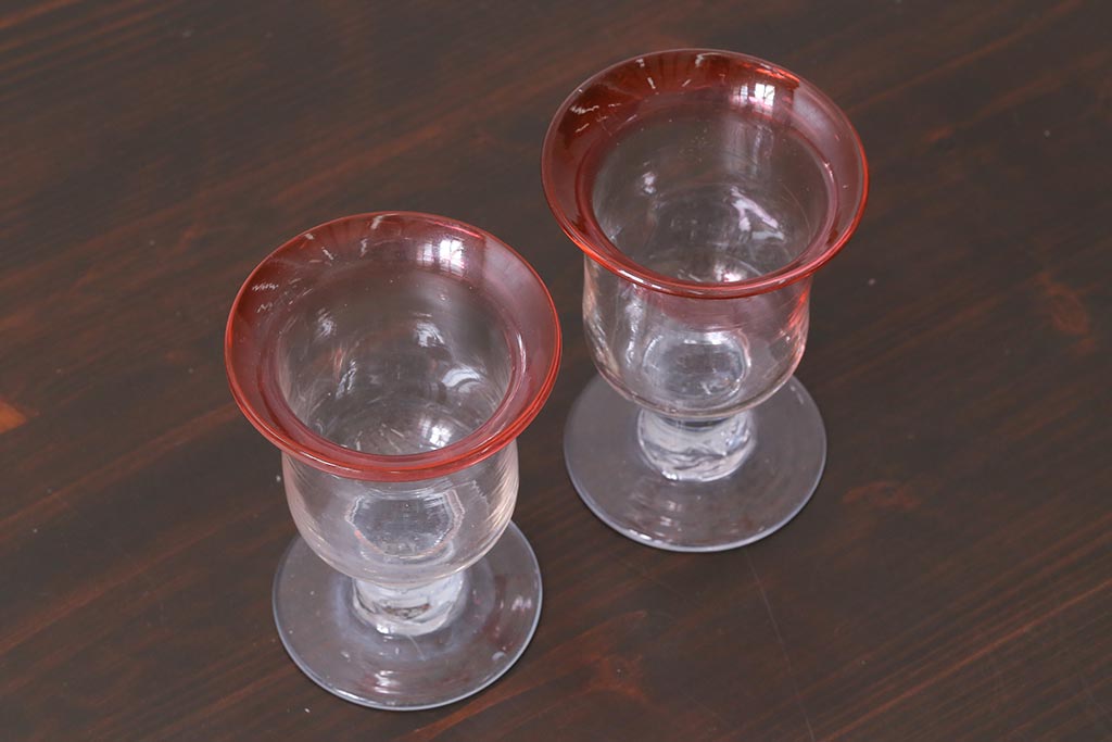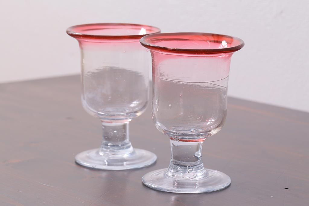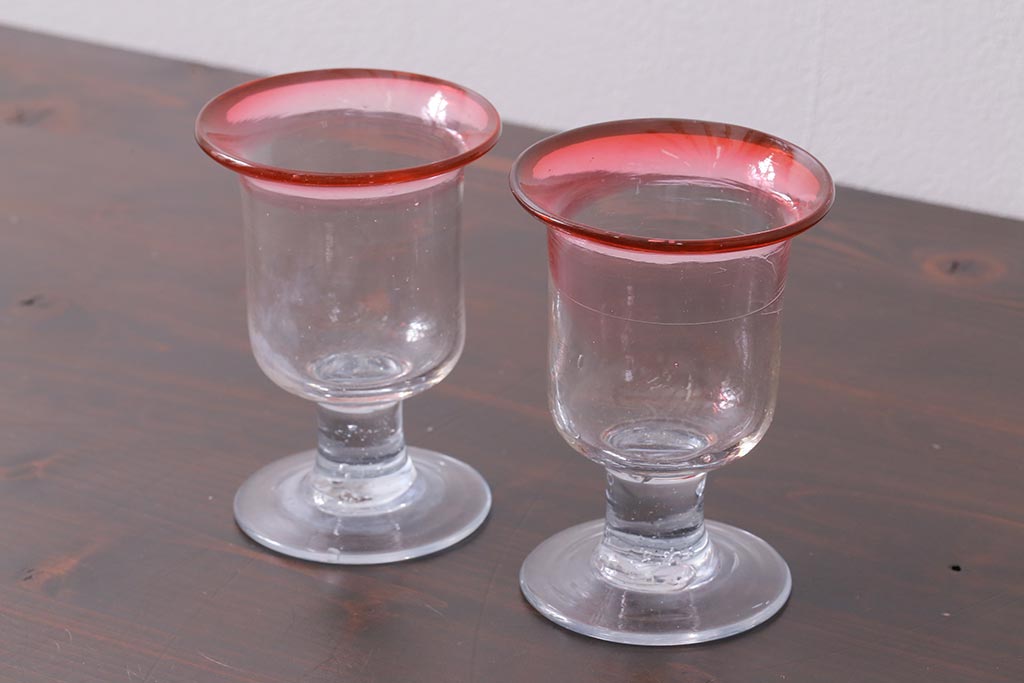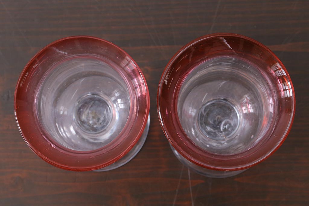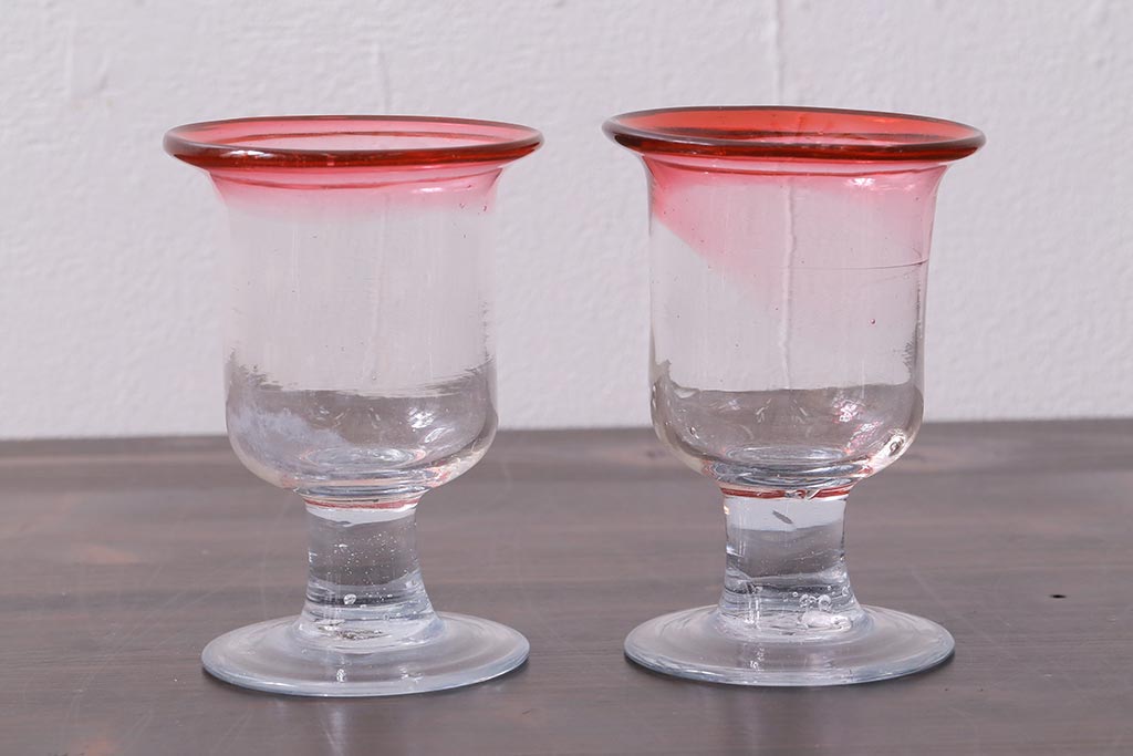 アンティーク雑貨 古民具・骨董 大正期 赤縁氷コップ2点(ペア・吹きガラス)(R-037843)