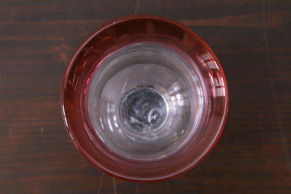 ラフジュ工房> 和食器・茶道具 > アンティーク雑貨 古民具・骨董 大正期 赤縁氷コップ2点(ペア・吹きガラス)(R-037843)