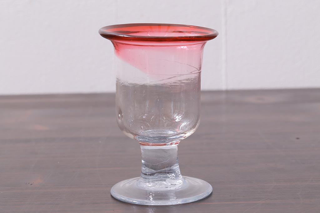 ラフジュ工房> 骨董・美術品 > アンティーク雑貨 古民具・骨董 大正期 赤縁氷コップ2点(ペア・吹きガラス)(R-037843)