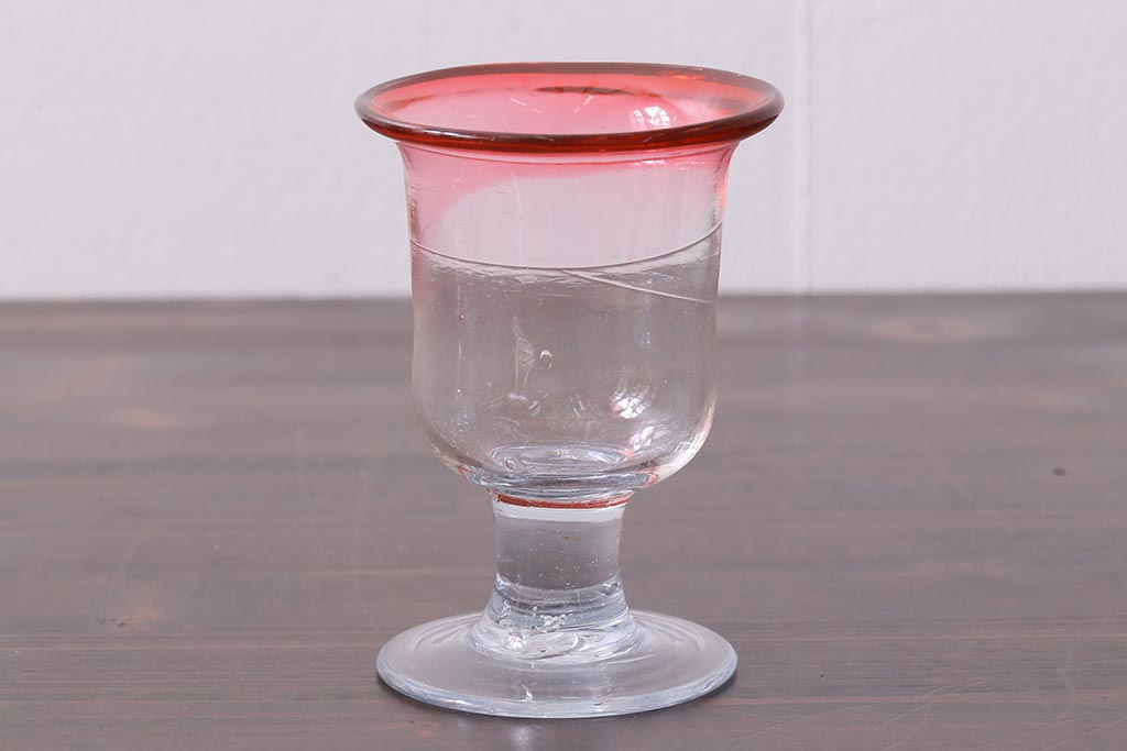 ラフジュ工房> 骨董・美術品> 骨董-ガラス食器 > アンティーク雑貨 古民具・骨董 大正期 赤縁氷コップ2点(ペア・吹きガラス)(R-037843)