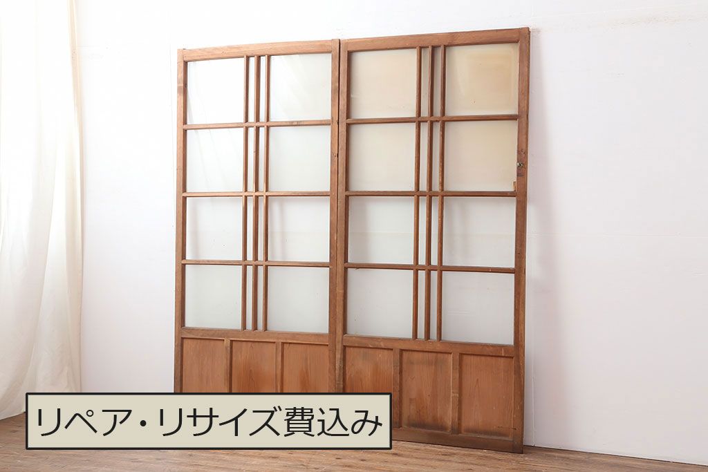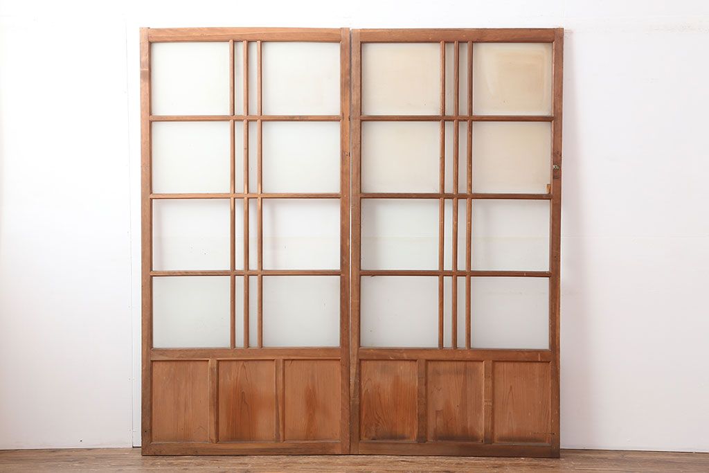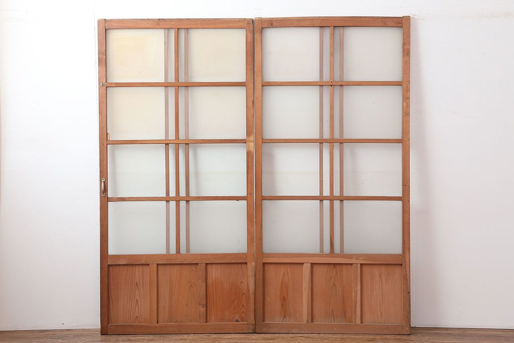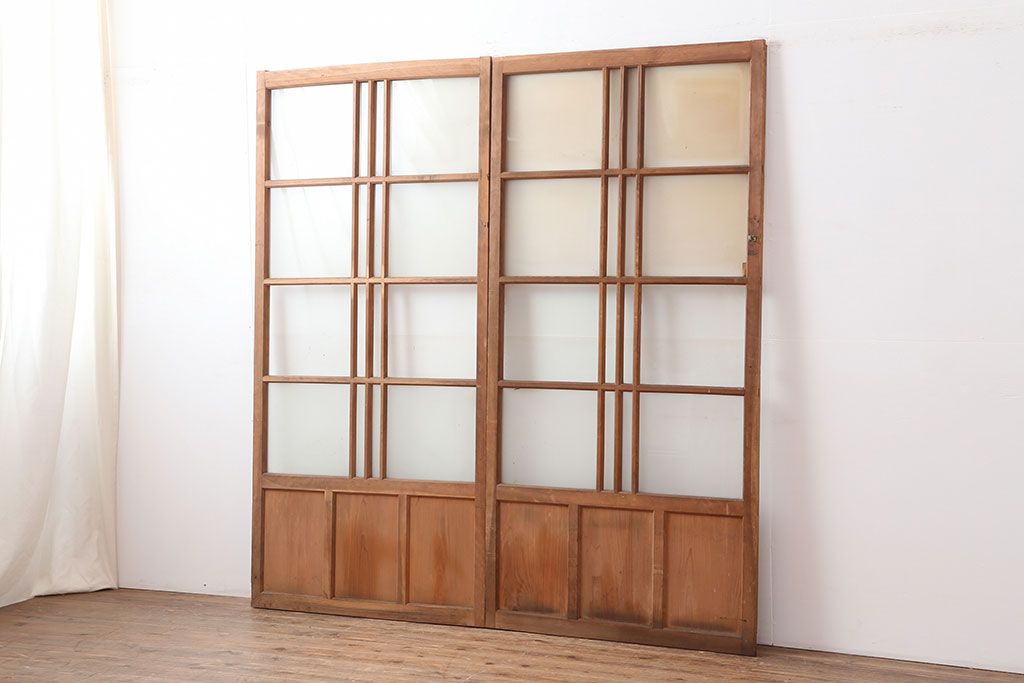 ラフジュ工房> ドア・建具> 2枚・3枚セット > アンティーク建具 昭和中期 シンプルさが魅力のガラス戸2枚セット(引き戸、建具)(R-037088)