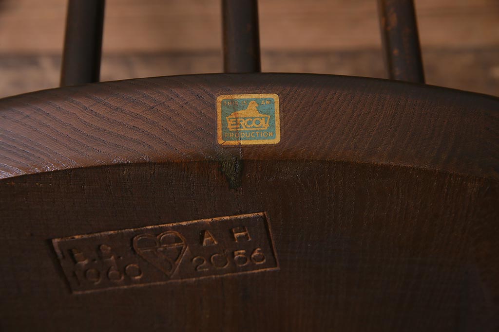 椅子・ベンチ> ウィンザーチェア > ヴィンテージ家具 イギリスビンテージ ERCOL(アーコール) 美しく丈夫な作りが魅力的なクエーカーチェア(ダイニングチェア、椅子、ウィンザーチェア、ウインザーチェア)(R-037997)