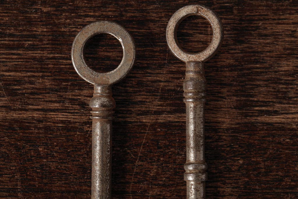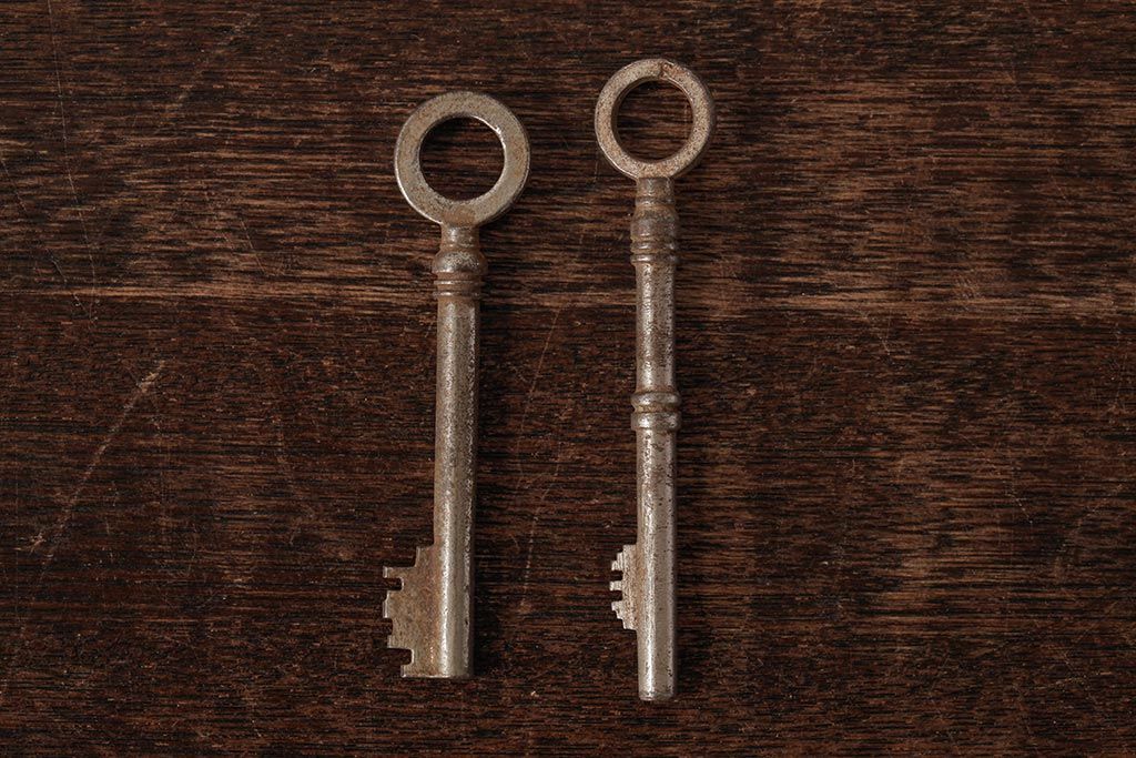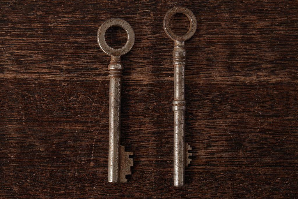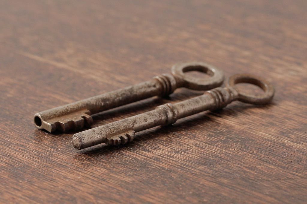 アンティーク雑貨 フランスアンティーク 味のある風合いが魅力の古いキー2本セット(鍵、カギ)(R-035475)