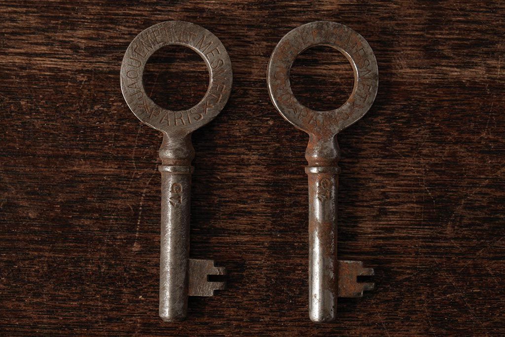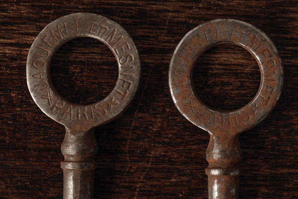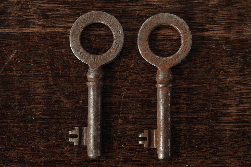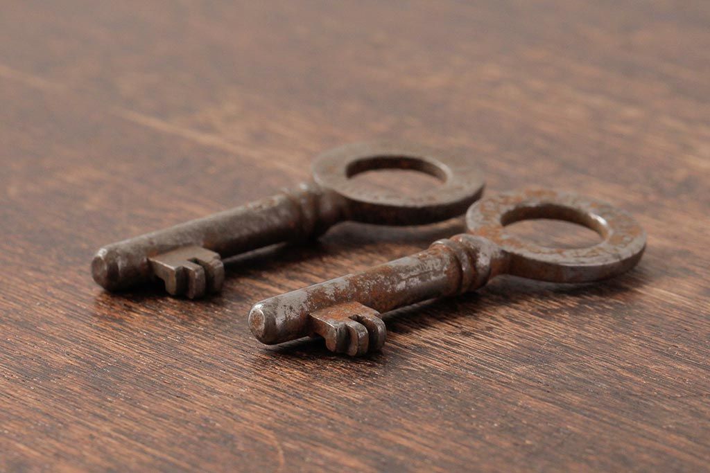 アンティーク雑貨 フランスアンティーク ブロカントスタイルに合うシャビーなキー2本セット(鍵、カギ)(R-035478)