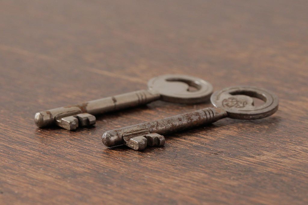 アンティーク雑貨 フランスアンティーク ブロカントスタイルに合うシャビーなキー2本セット(鍵、カギ)(R-035479)