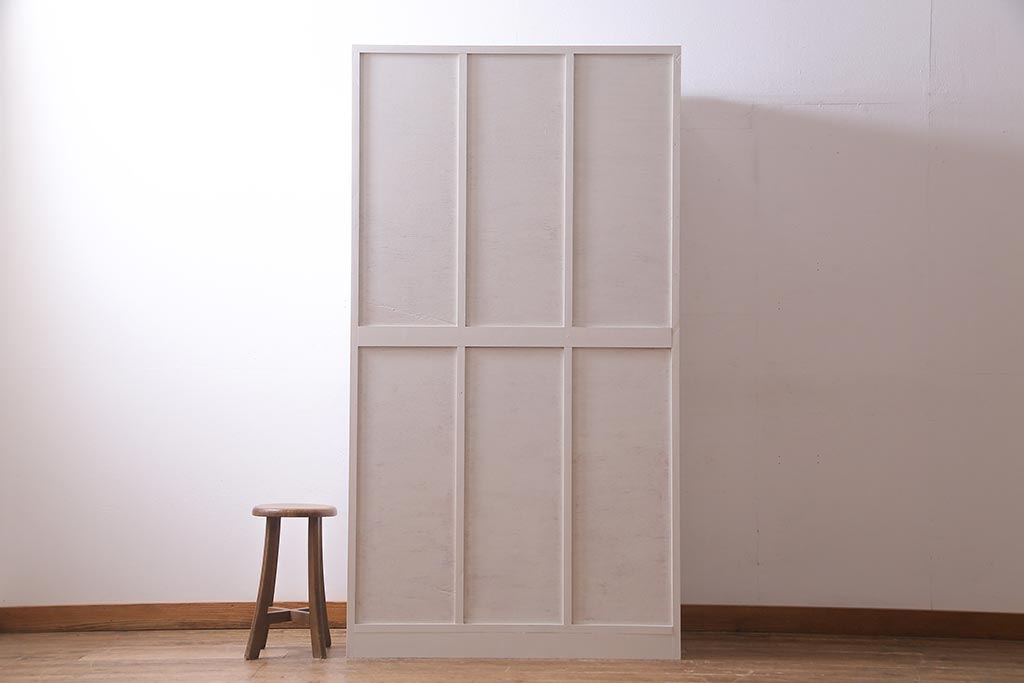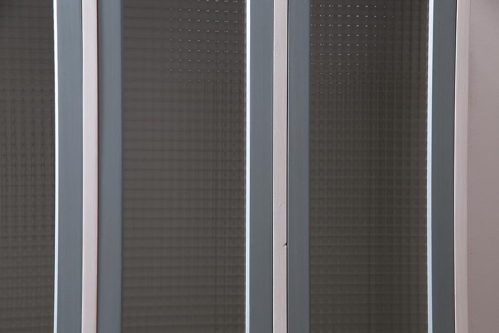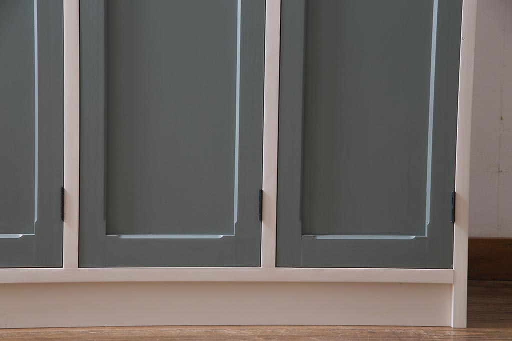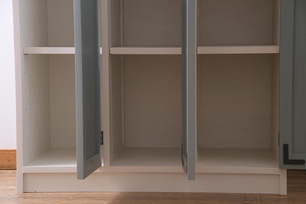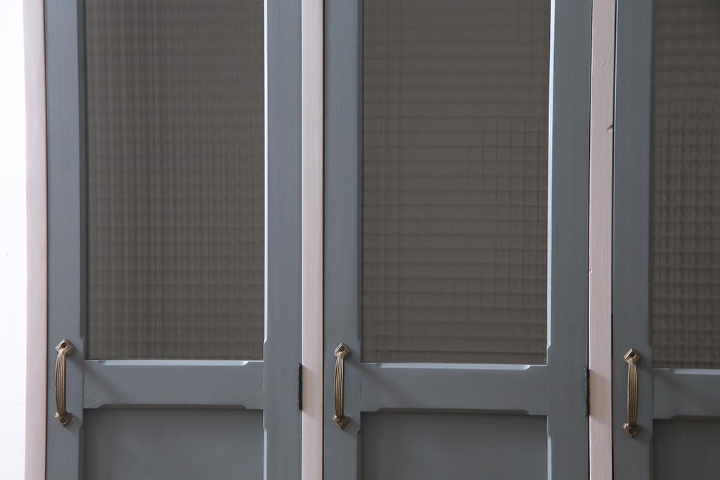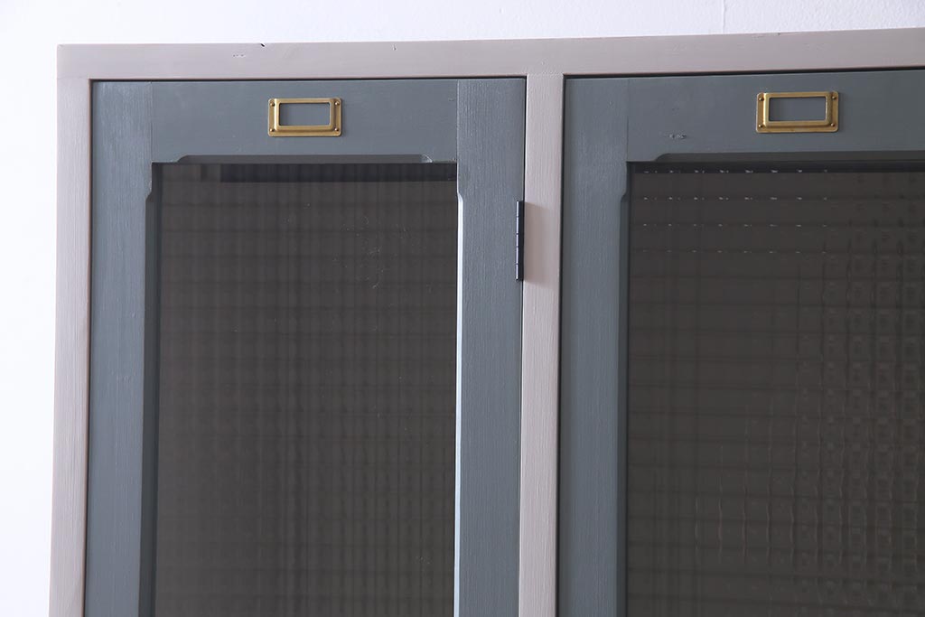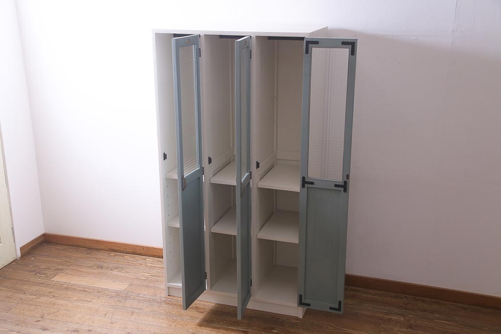 ラフジュ工房> ワードローブ・ロッカー > ラフジュ工房オリジナル ヒノキ無垢材・ヒバ材 チェッカーガラス入り レトロペイントの3人用ロッカー(収納棚、戸棚)(R-037984)