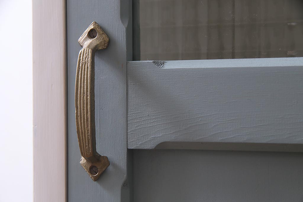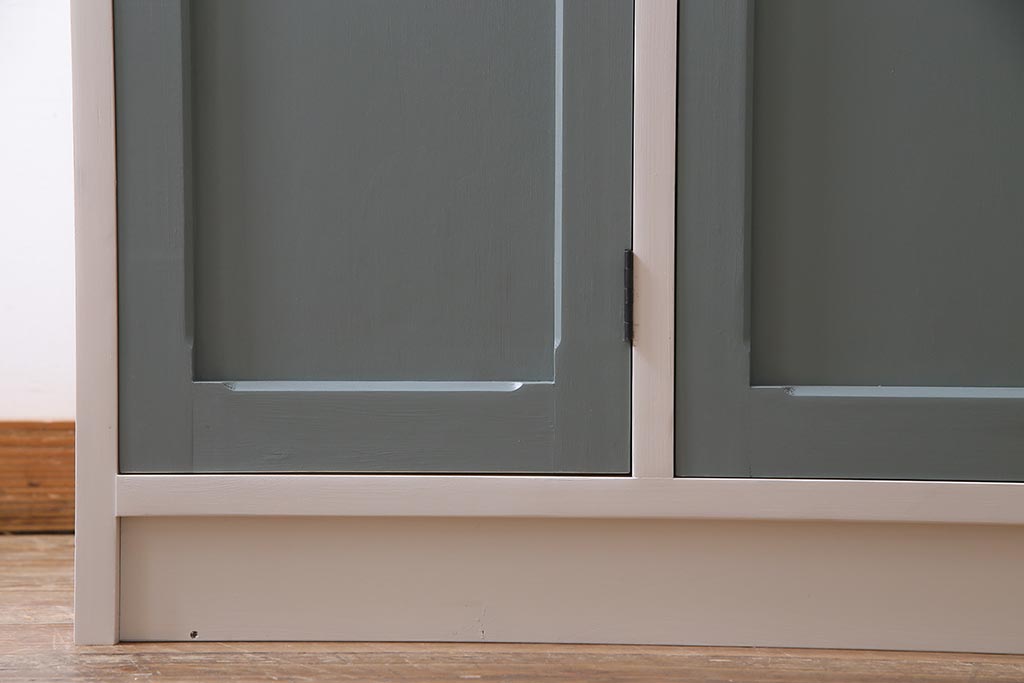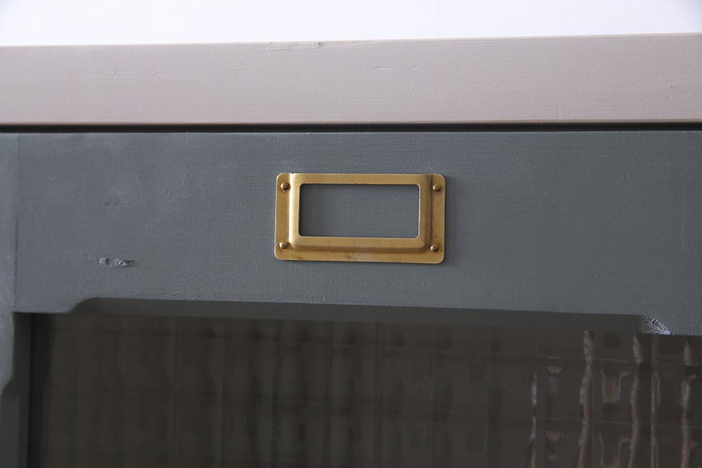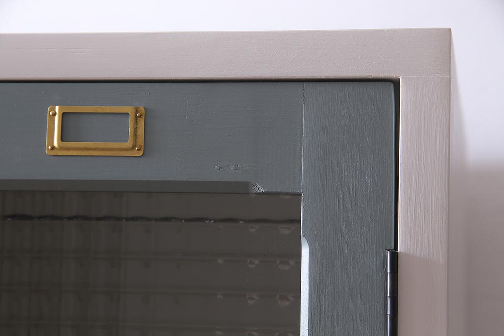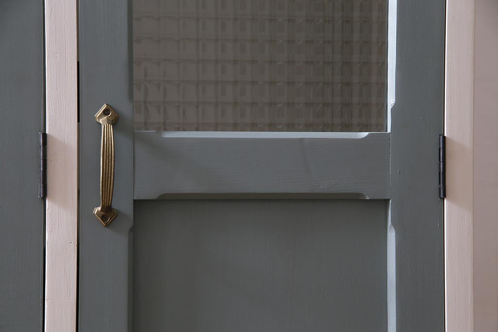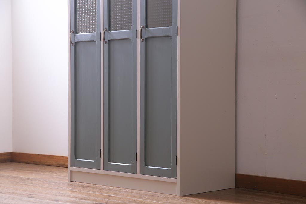 ラフジュ工房> ワードローブ・ロッカー> ロッカー > ラフジュ工房オリジナル ヒノキ無垢材・ヒバ材 チェッカーガラス入り レトロペイントの3人用ロッカー(収納棚、戸棚)(R-037984)