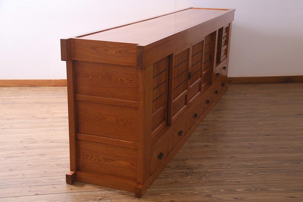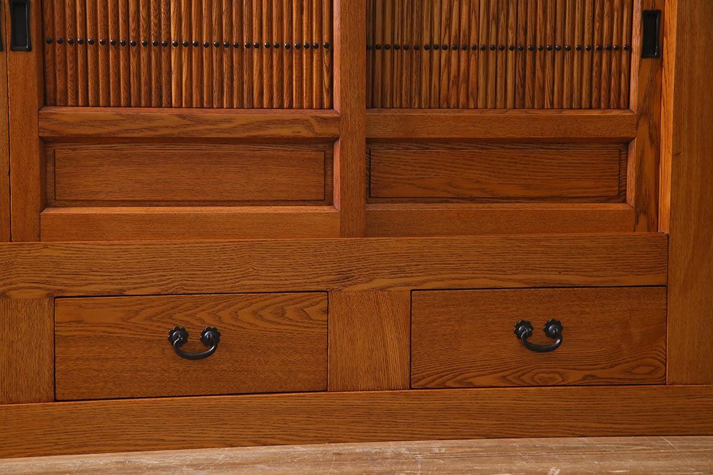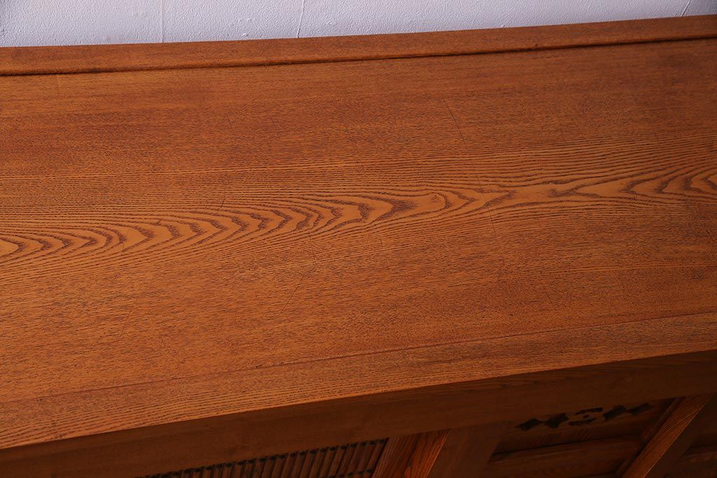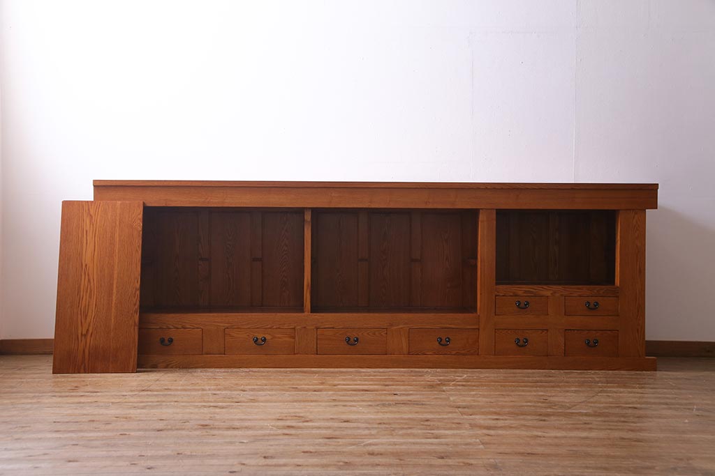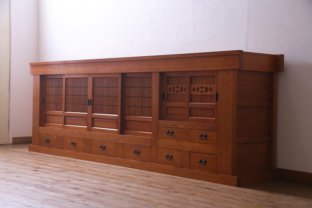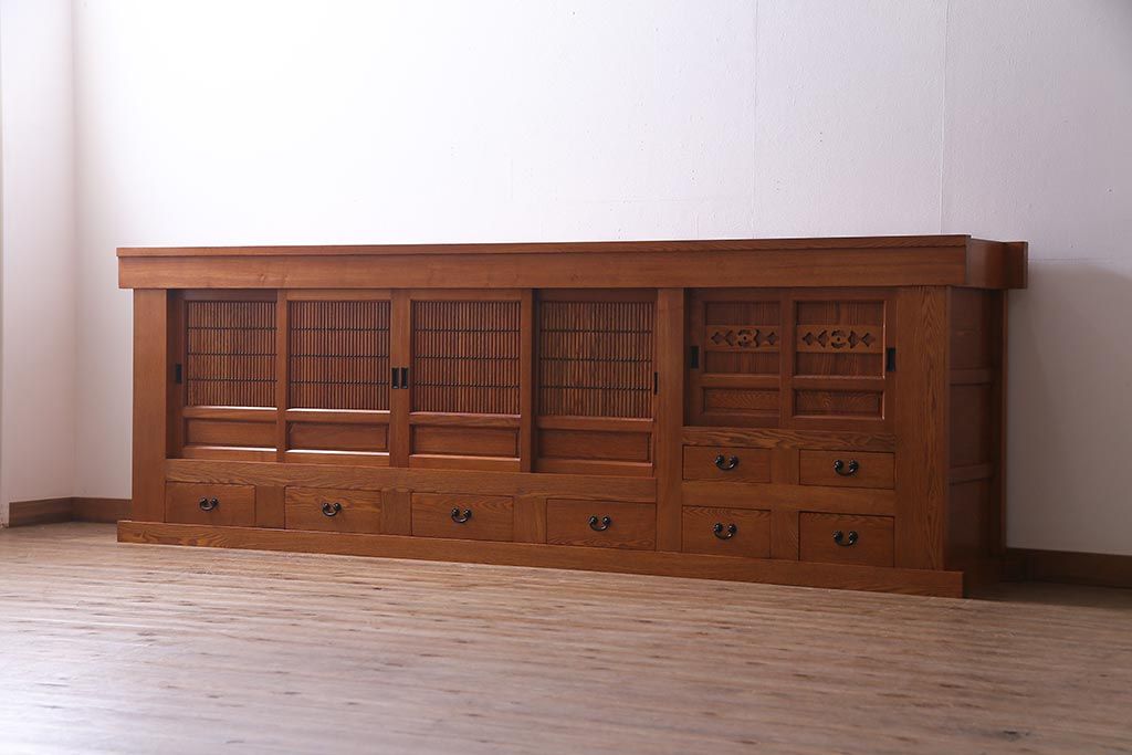 和箪笥> 水屋箪笥 > 新古品 特大サイズ! ニレ無垢材 和の空間作りに活躍する9尺水屋箪笥・上(九尺水屋、サイドボード、和箪笥、収納棚)(R-038029)