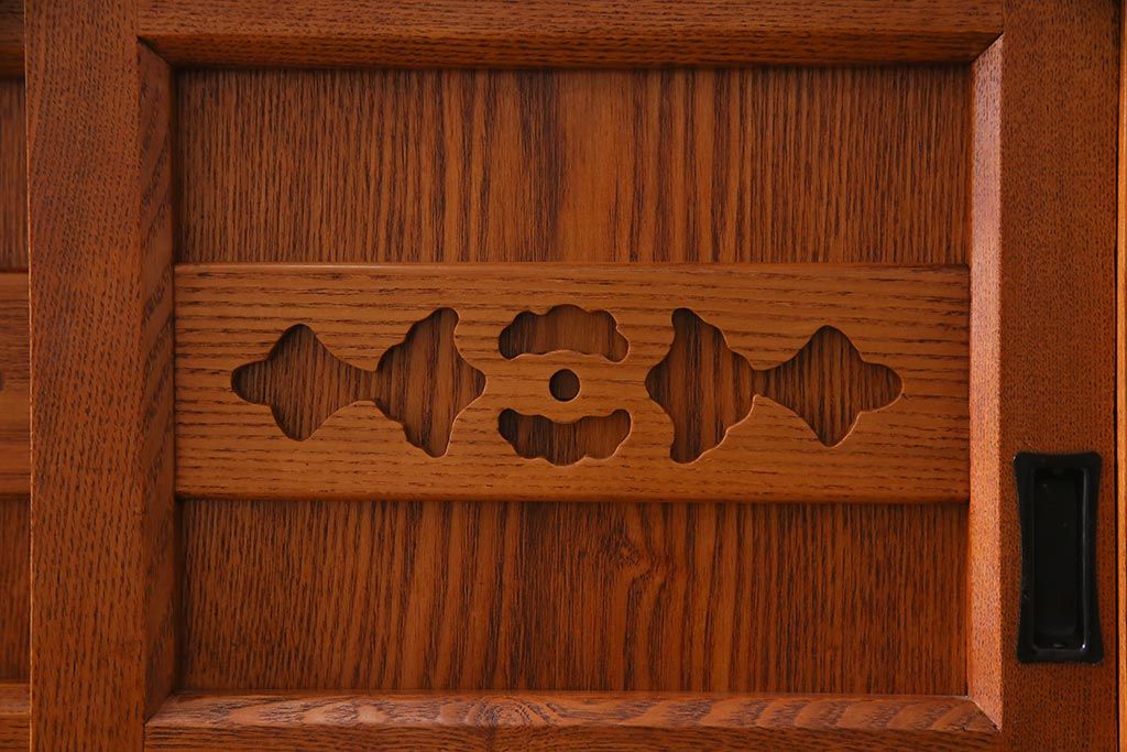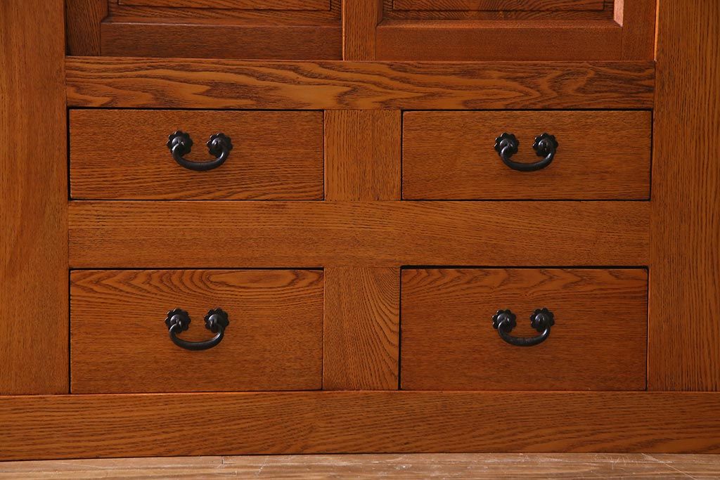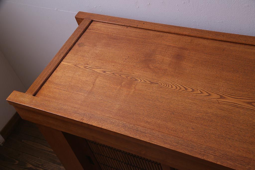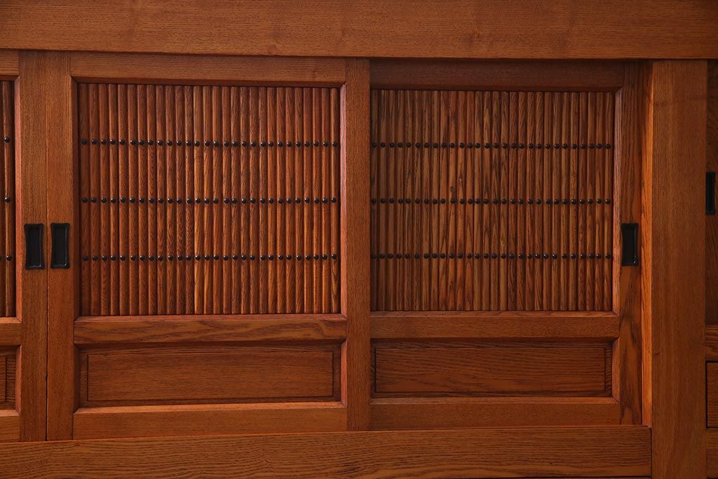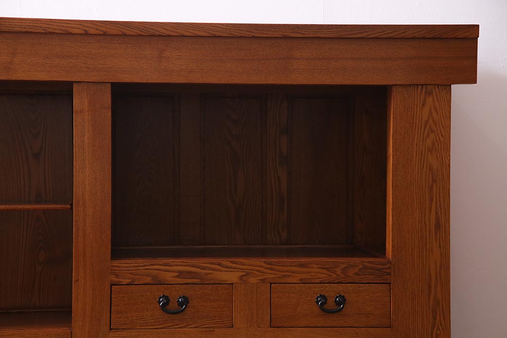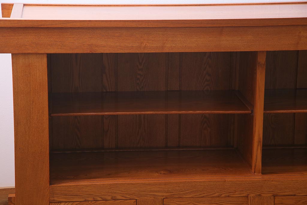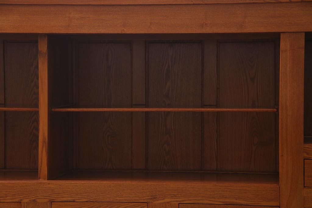 和箪笥> 水屋箪笥 > 新古品 特大サイズ! ニレ無垢材 和の空間作りに活躍する9尺水屋箪笥・上(九尺水屋、サイドボード、和箪笥、収納棚)(R-038029)