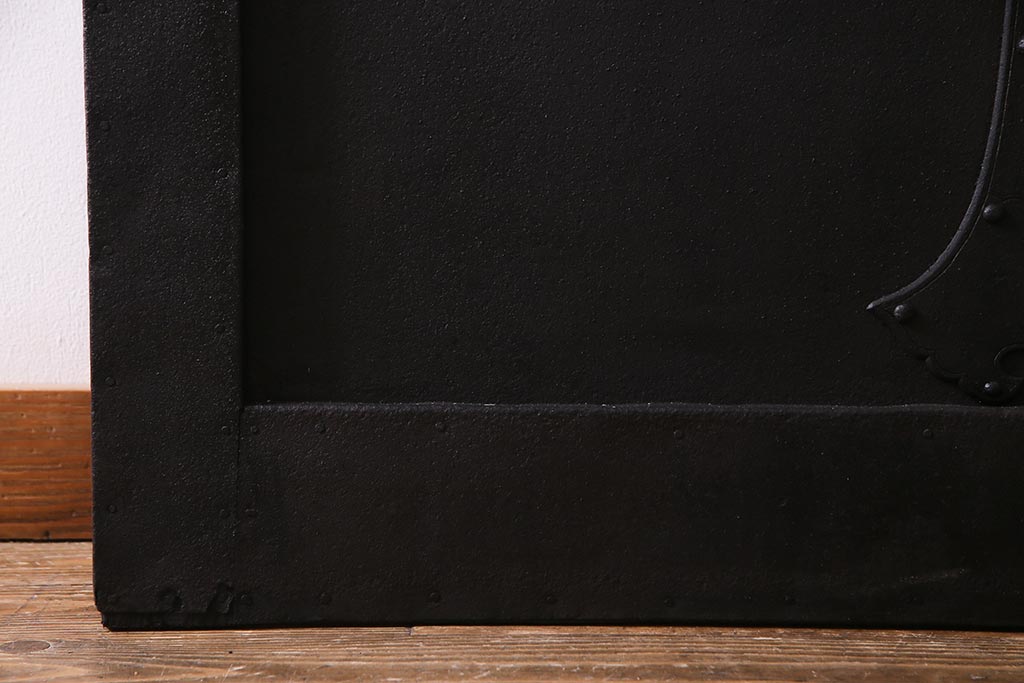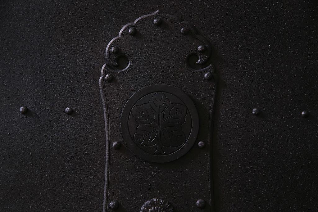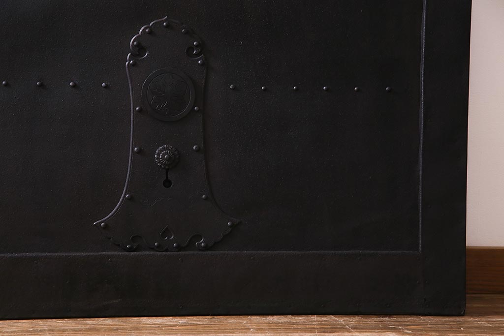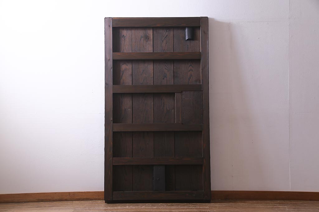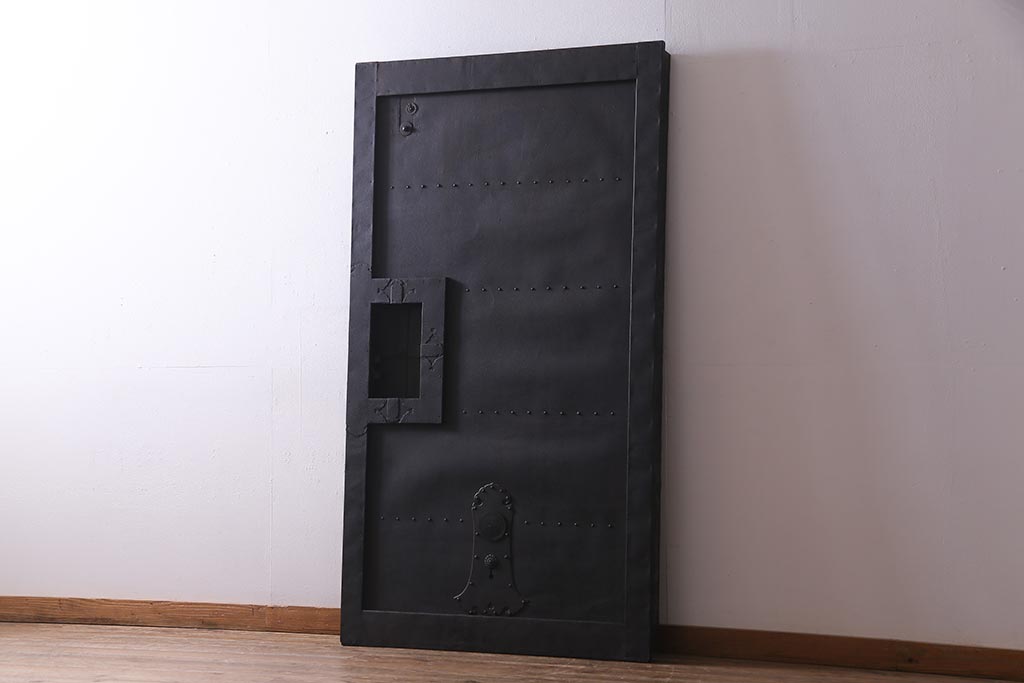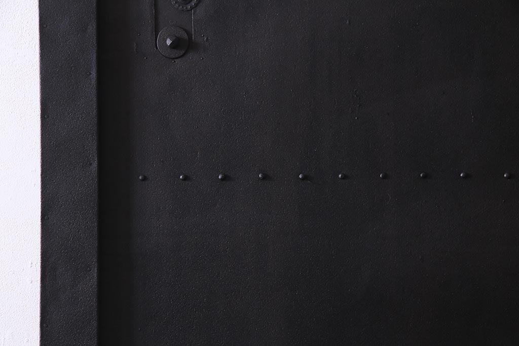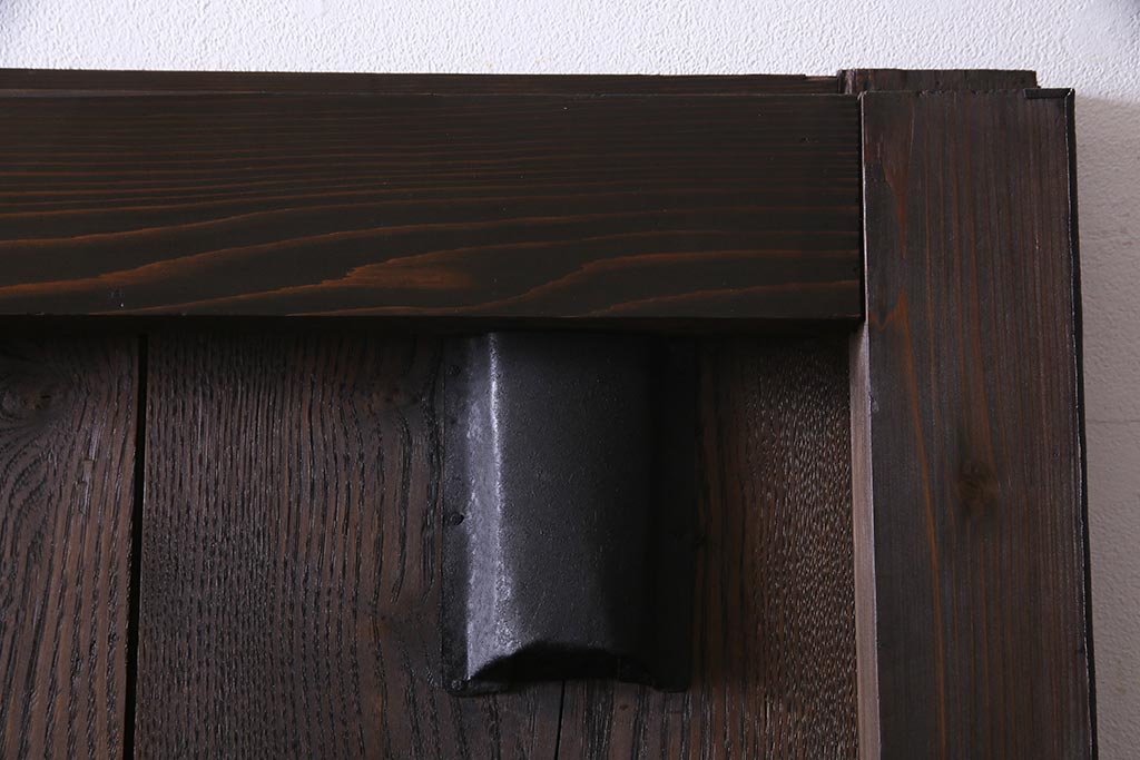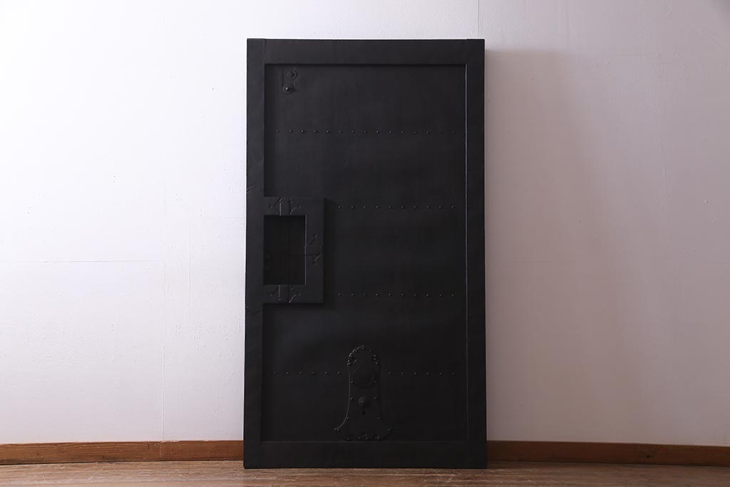アンティーク建具 激レア 使い込まれた渋さが魅力的な鉄板付き蔵戸(鉄扉、引き戸、玄関戸)(R-037996)