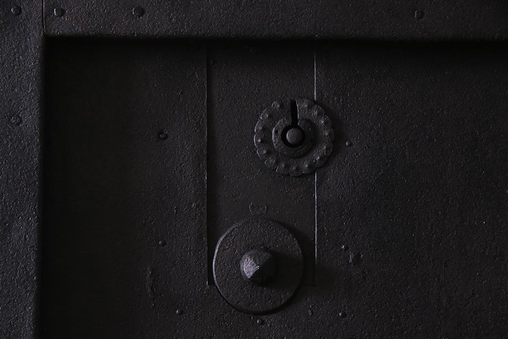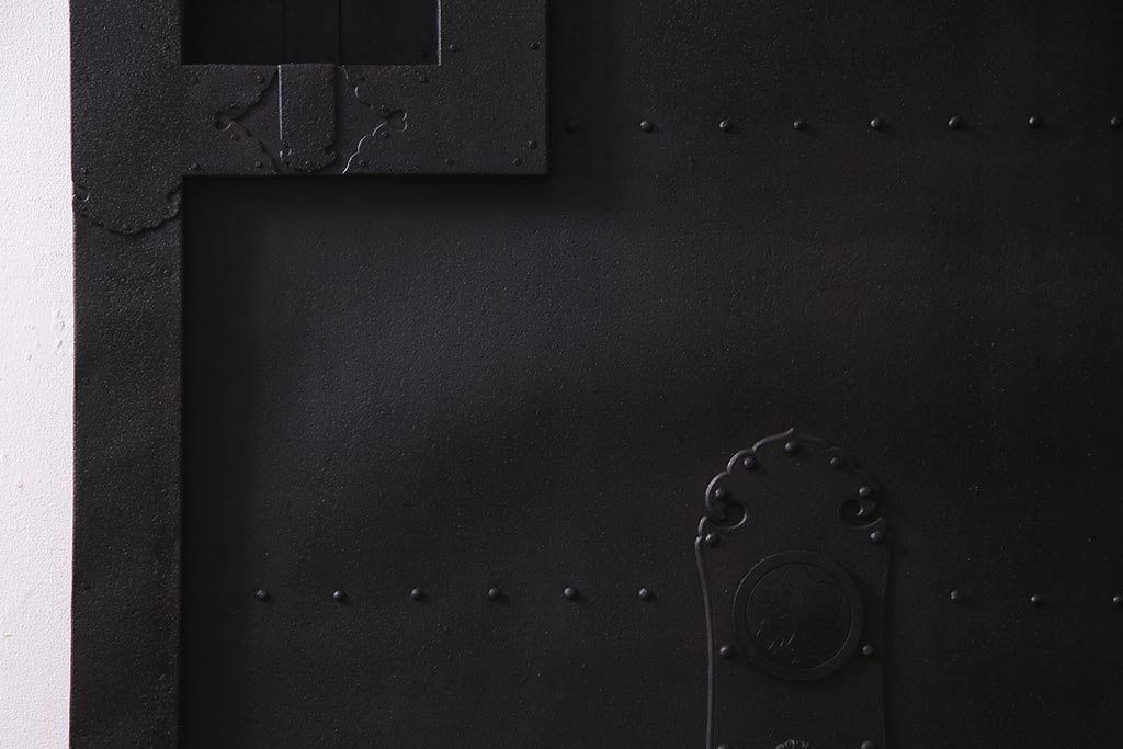 ラフジュ工房> ドア・建具> 鉄扉 > アンティーク建具 激レア 使い込まれた渋さが魅力的な鉄板付き蔵戸(鉄扉、引き戸、玄関戸)(R-037996)