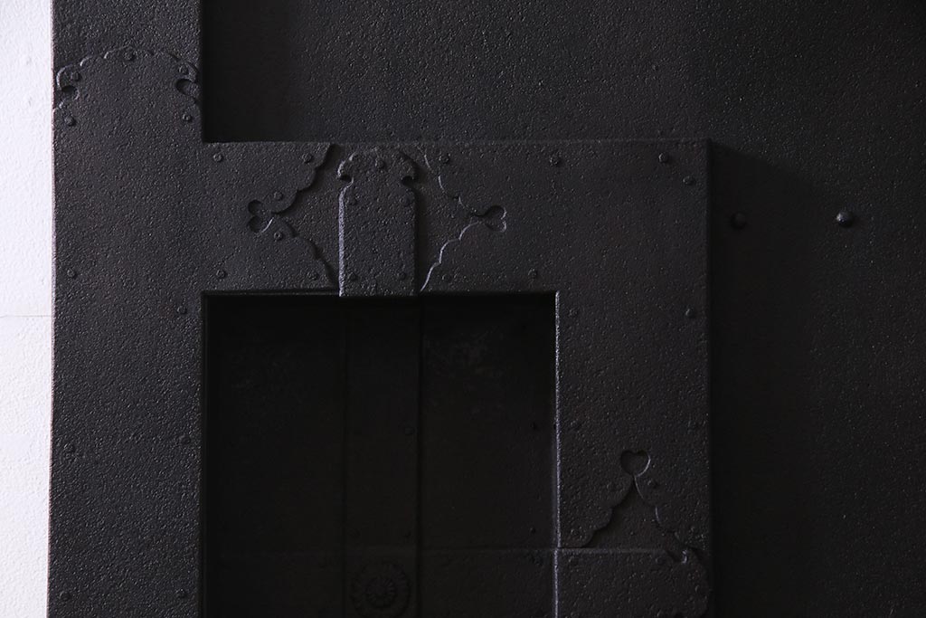 ラフジュ工房> ドア・建具> 引き戸 > アンティーク建具 激レア 使い込まれた渋さが魅力的な鉄板付き蔵戸(鉄扉、引き戸、玄関戸)(R-037996)