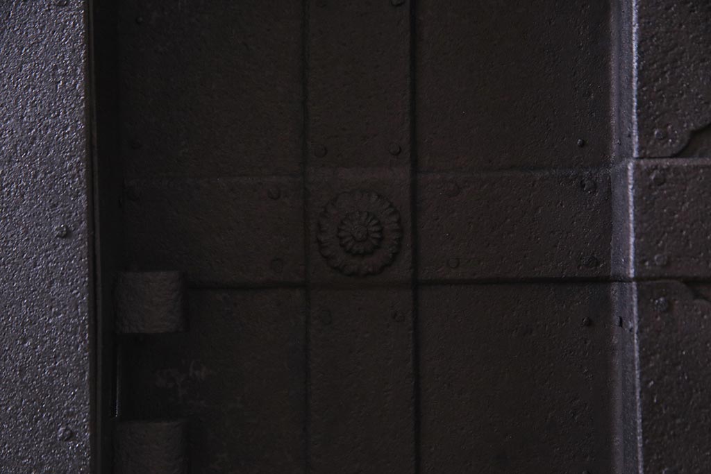 ラフジュ工房> ドア・建具> 蔵戸 > アンティーク建具 激レア 使い込まれた渋さが魅力的な鉄板付き蔵戸(鉄扉、引き戸、玄関戸)(R-037996)