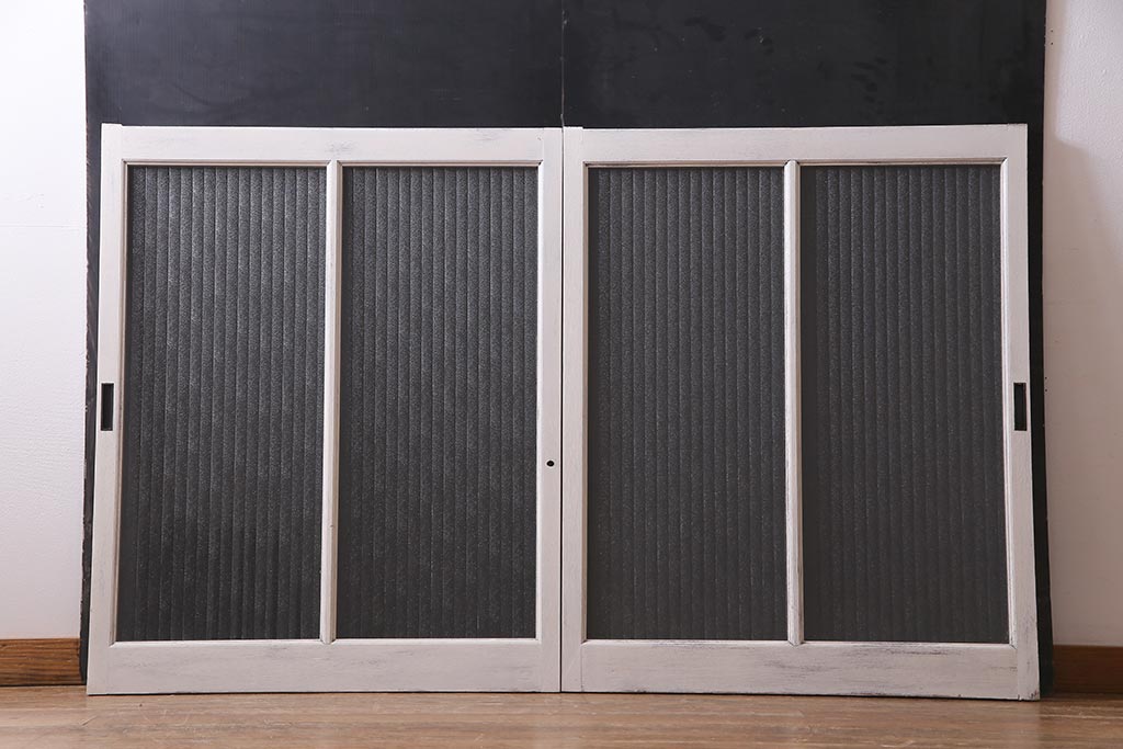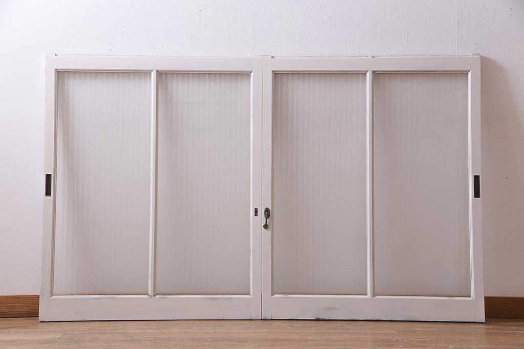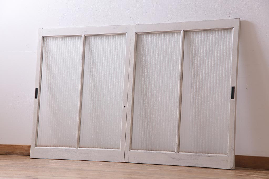 ドア・建具> ガラス戸 > アンティーク家具 昭和中期 ナチュラルインテリアにぴったりなペイントガラス戸2枚セット(引き戸、建具)(R-038028)