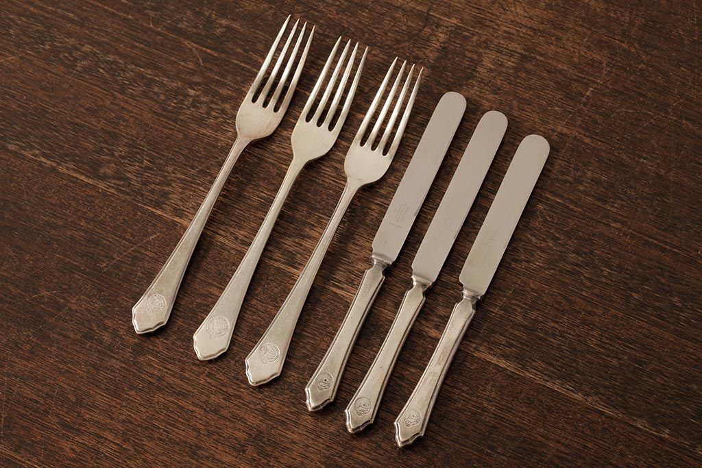 ラフジュ工房> 洋食器・キッチン用品 > アンティーク雑貨 イギリスビンテージ Mappin&Webb(マッピン&ウエッブ) シルバープレート フォーク・ナイフ3セット(R-038034)