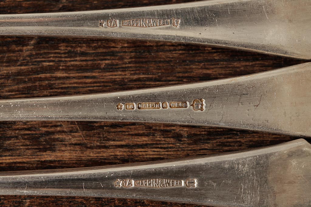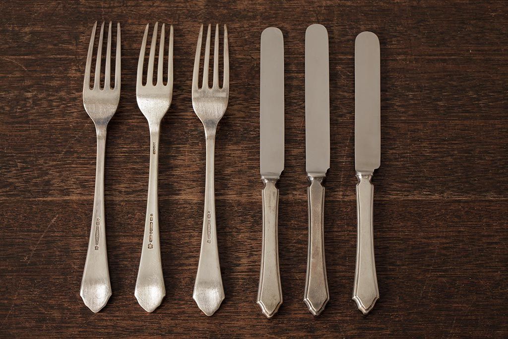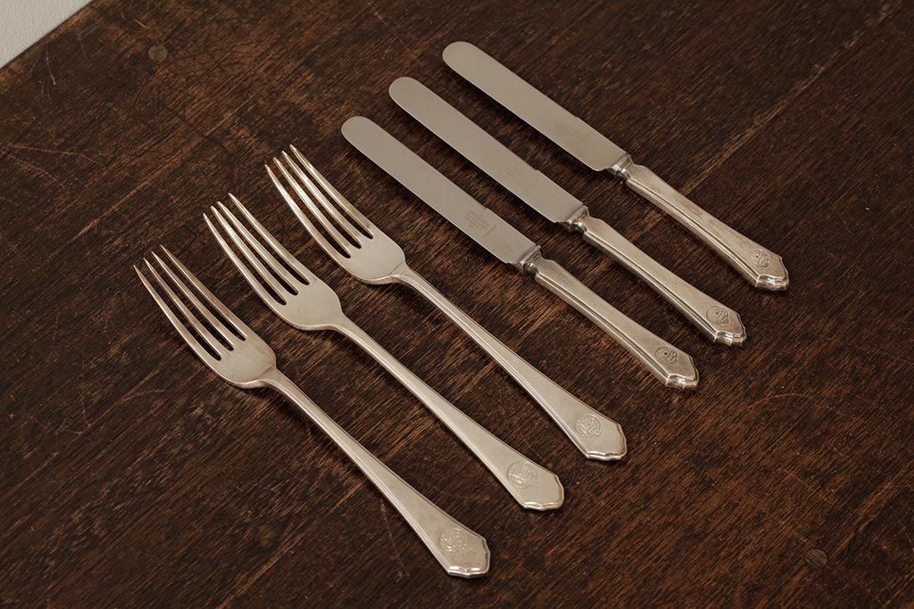アンティーク雑貨 イギリスビンテージ Mappin&Webb(マッピン&ウエッブ) シルバープレート フォーク・ナイフ3セット(R-038034)