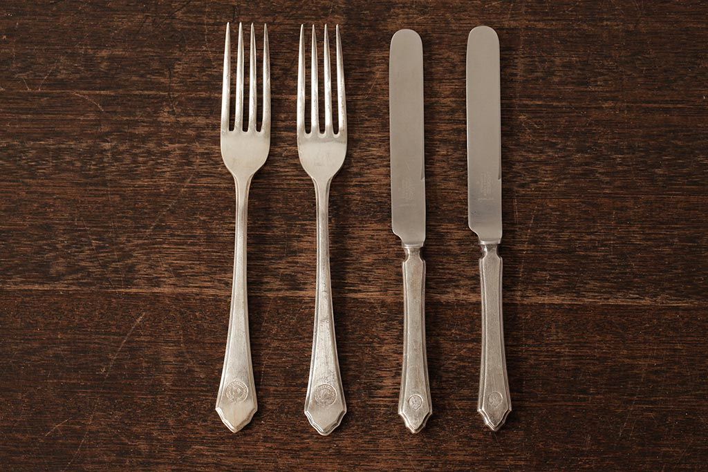 ラフジュ工房> 洋食器・キッチン用品 > アンティーク雑貨 イギリスビンテージ Mappin&Webb(マッピン&ウエッブ) シルバープレート フォーク・ナイフ2セット(R-038035)