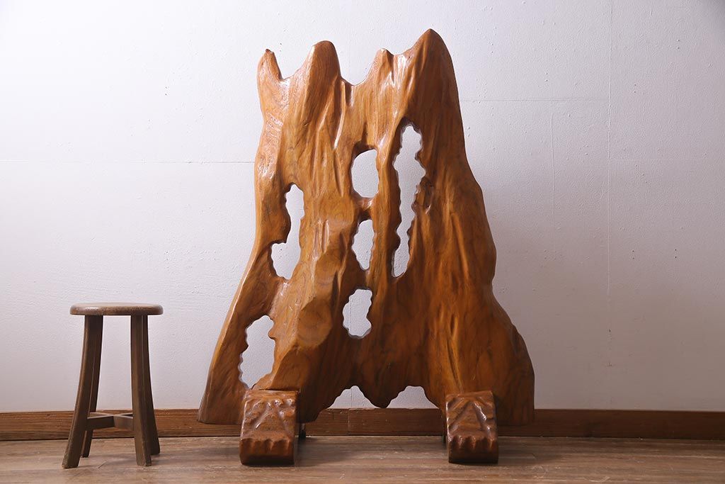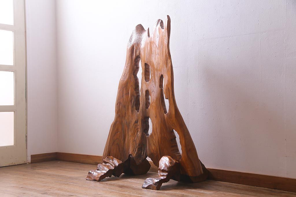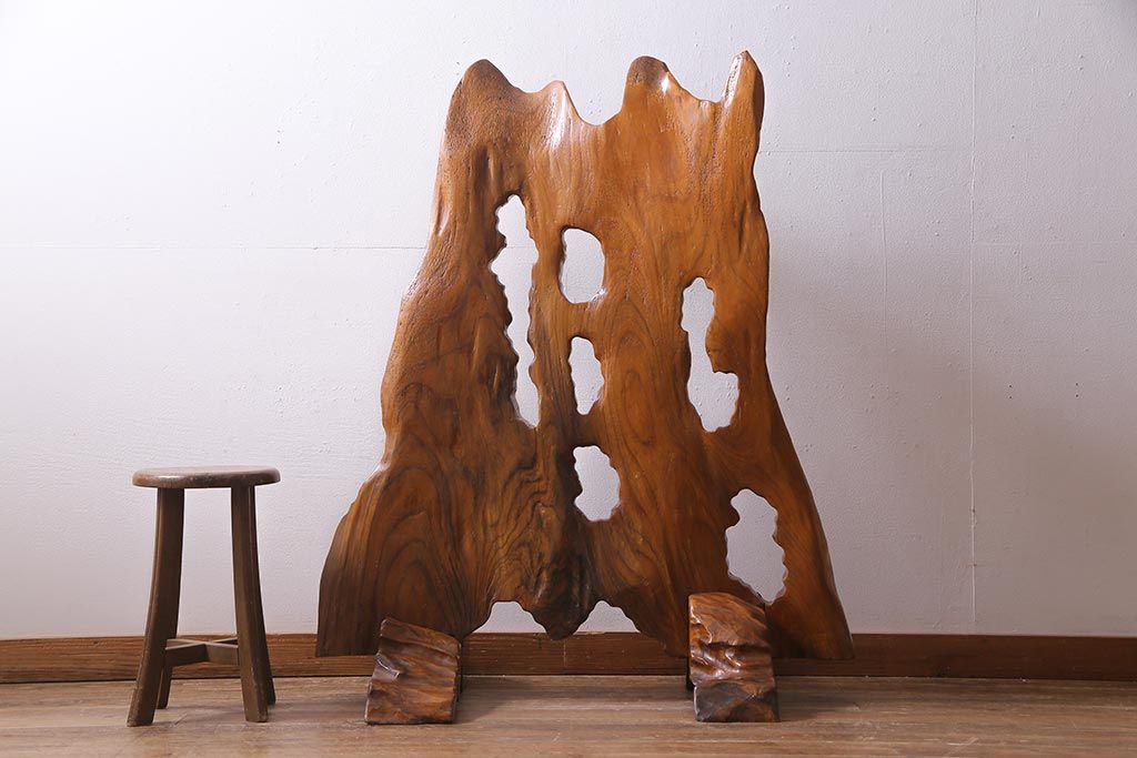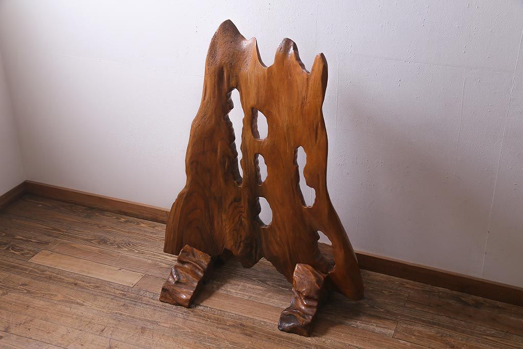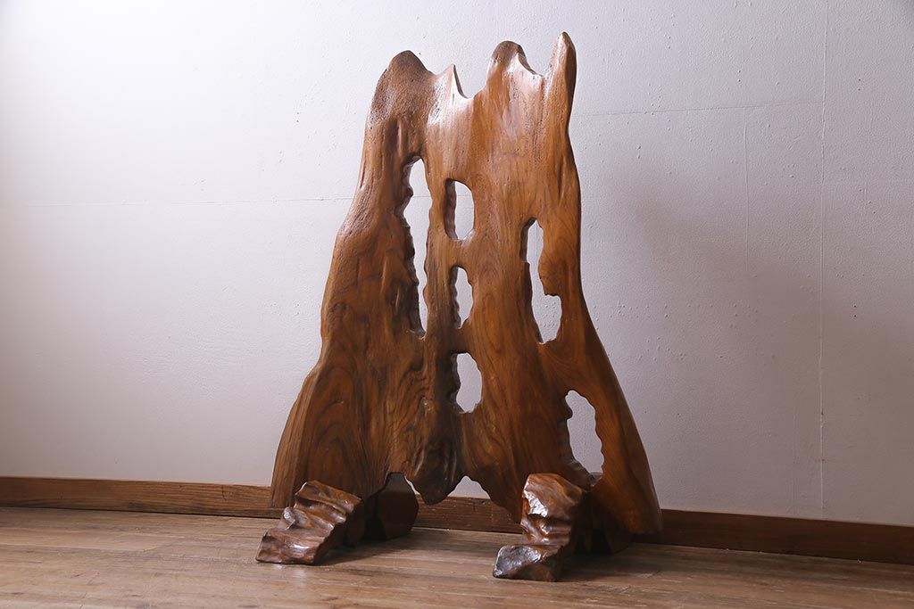 ビンテージ家具 和製 ケヤキ材を活かした存在感抜群のつい立て(衝立、パーテーション、仕切り)(R-038120)です。
