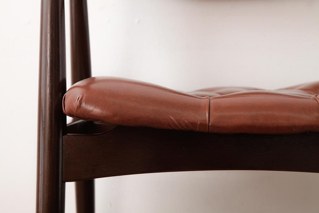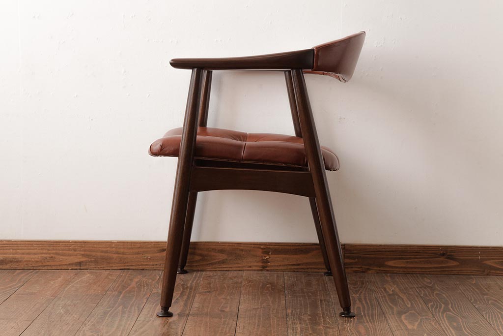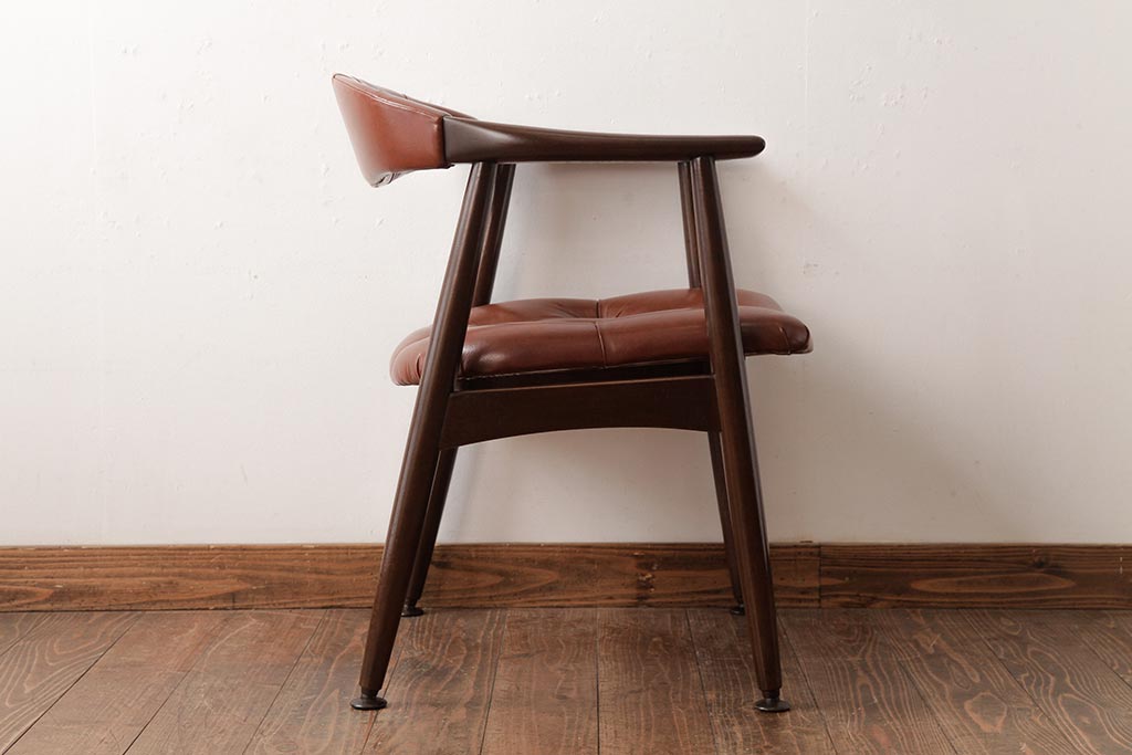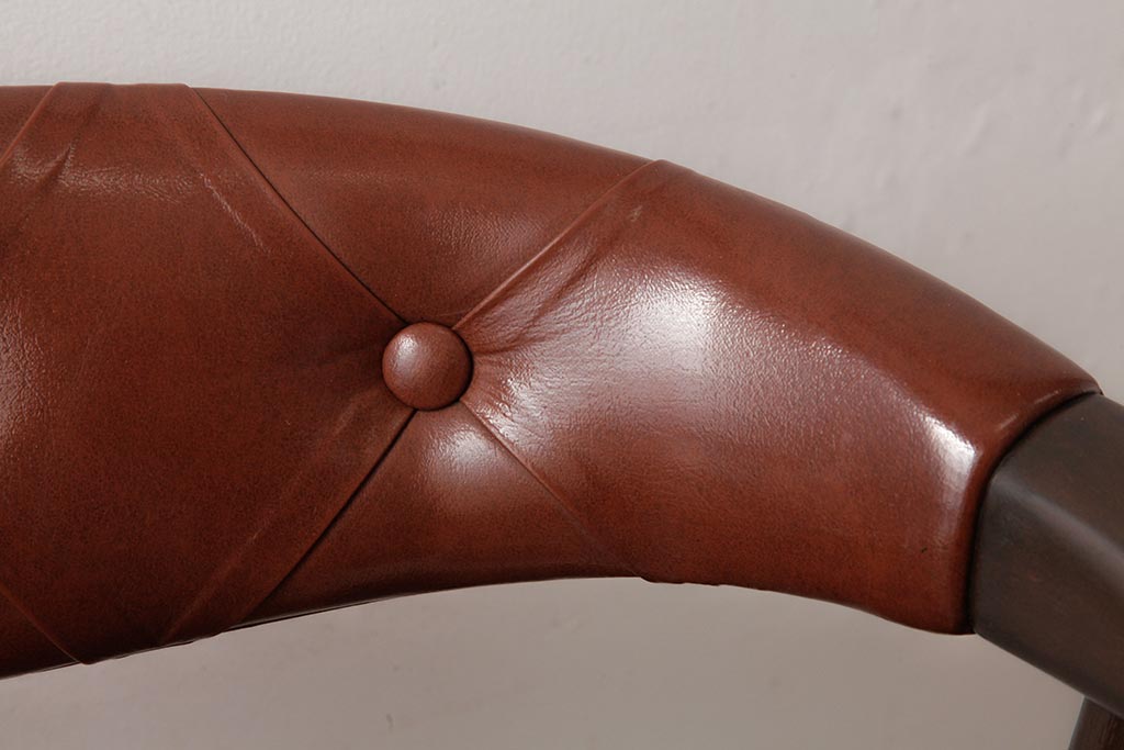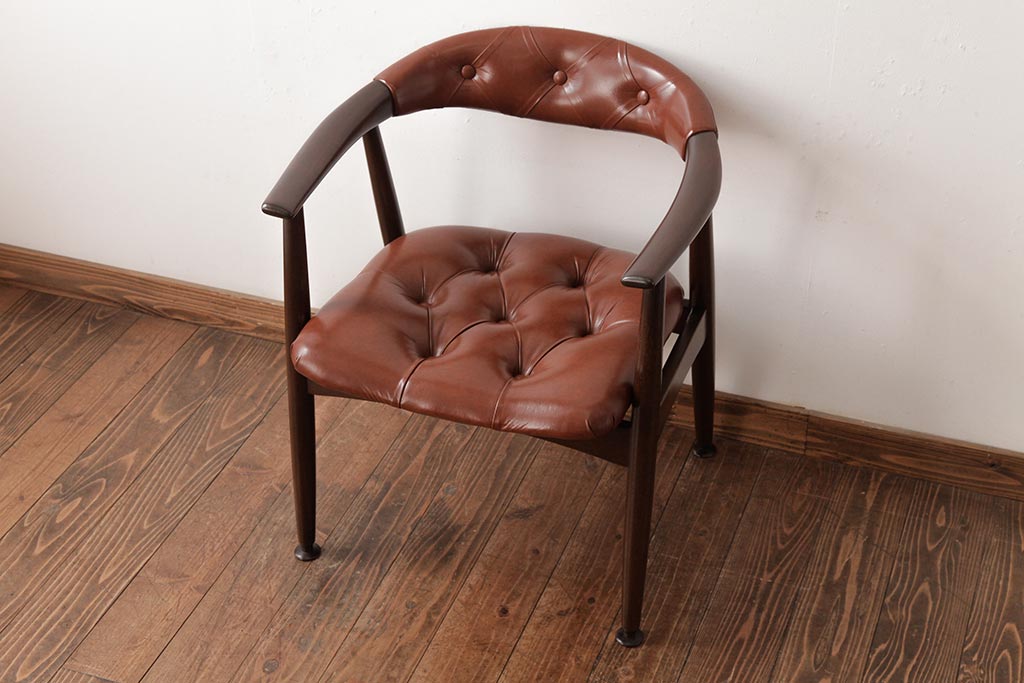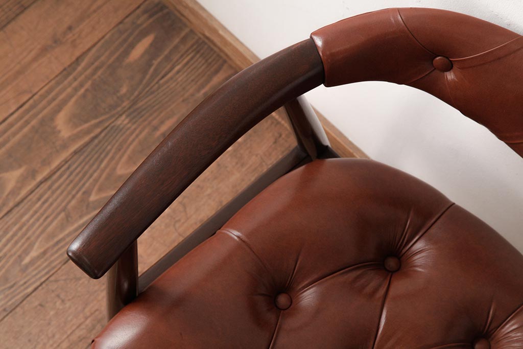 ビンテージ家具 和製 ボタン付きのレザーが格好いいアームチェア(チェア、椅子)(R-038125)
