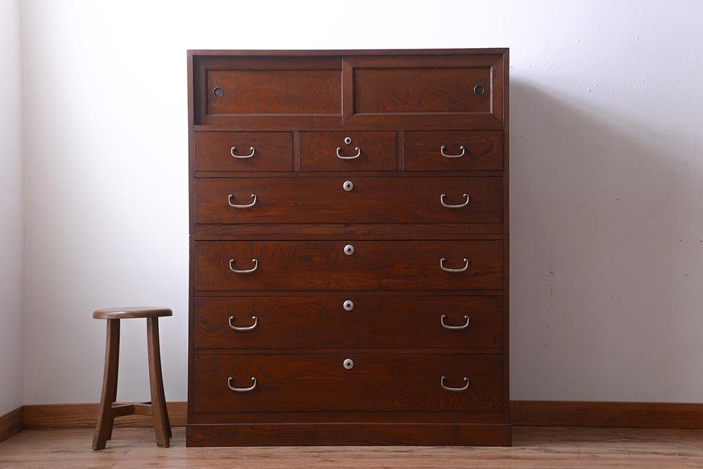 アンティーク家具 和製アンティーク 前面栗材 シンプルさが魅力の衣装箪笥(チェスト)(R-038119)
