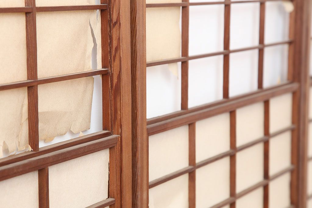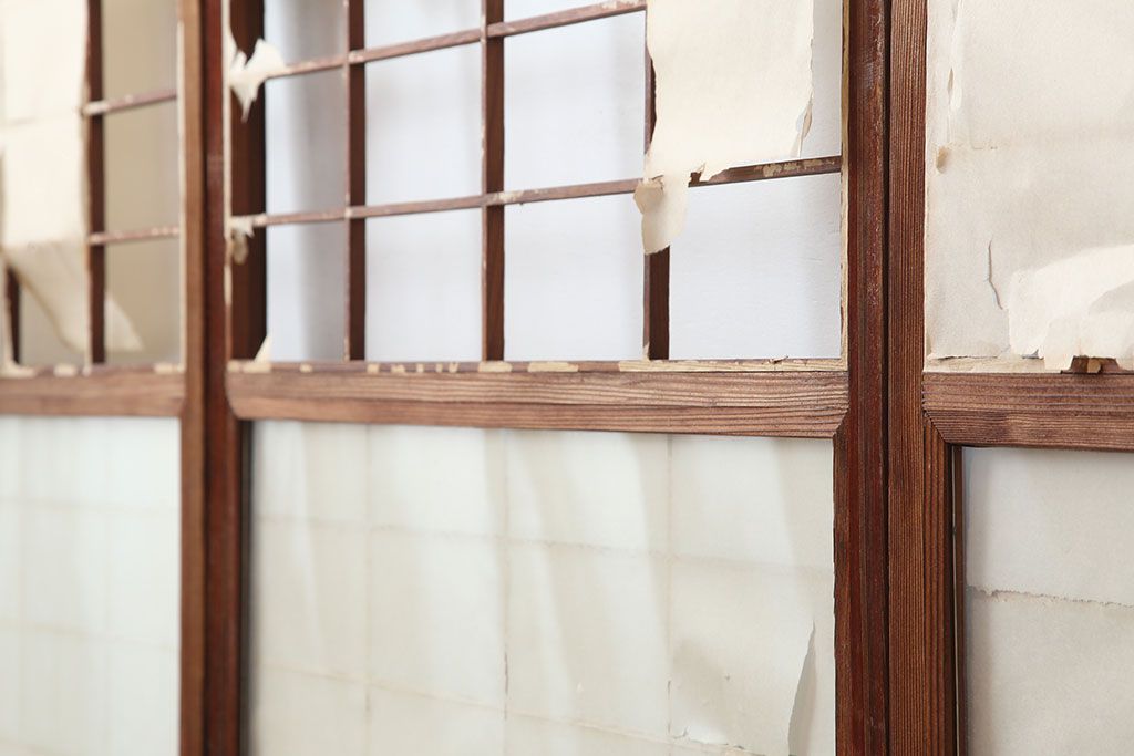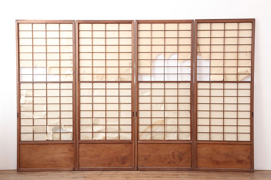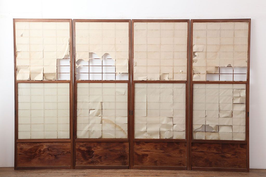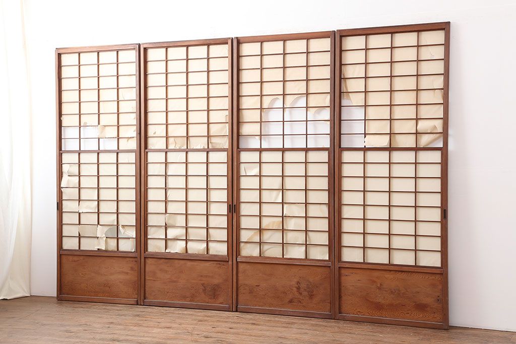 ラフジュ工房> ドア・建具> 4枚〜セット > アンティーク建具 昭和初期 摺り上げ 風情あるインテリアにおすすめな雪見障子戸4枚セット(建具、擦り上げ障子戸、擦上障子戸、引き戸)(R-037063)