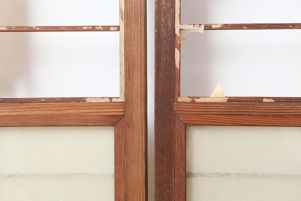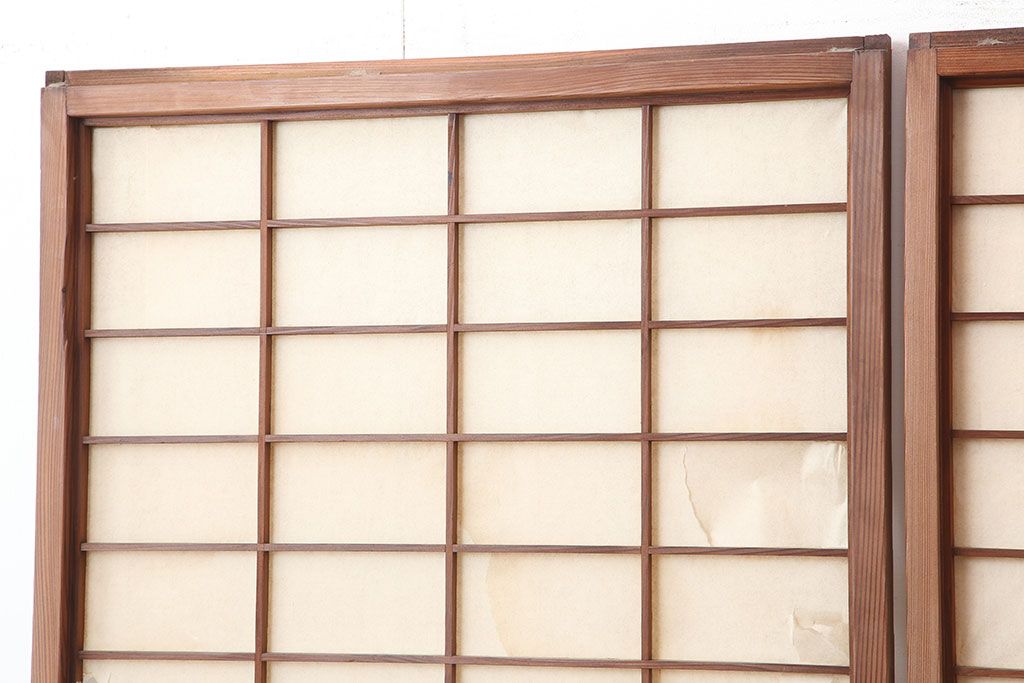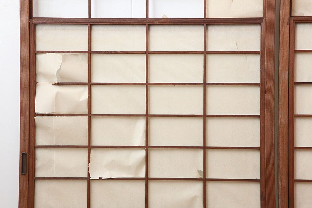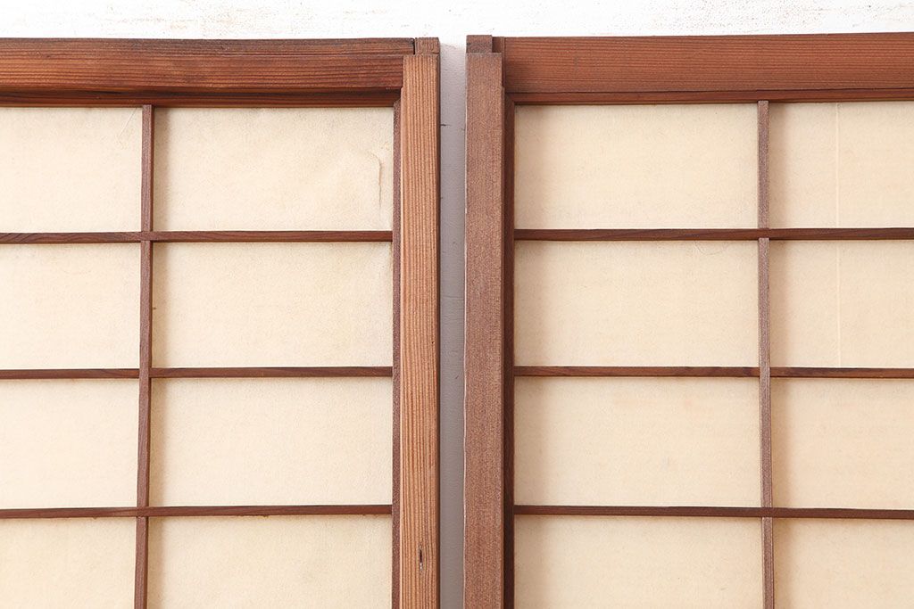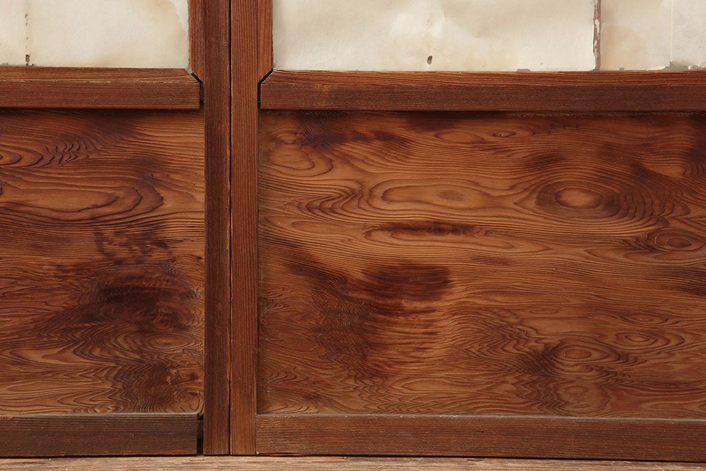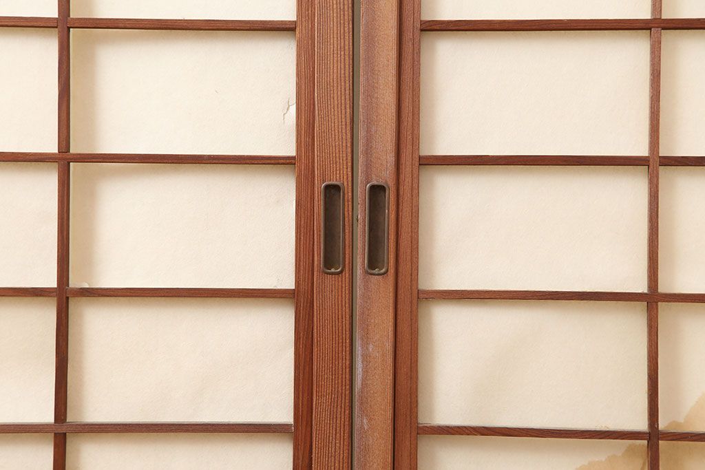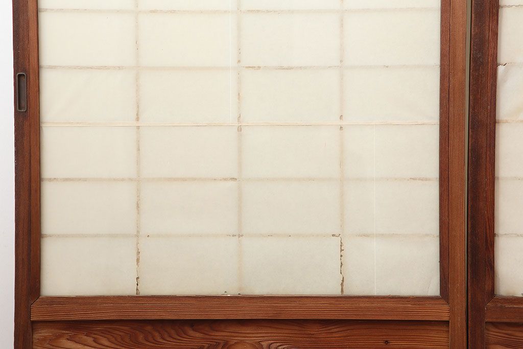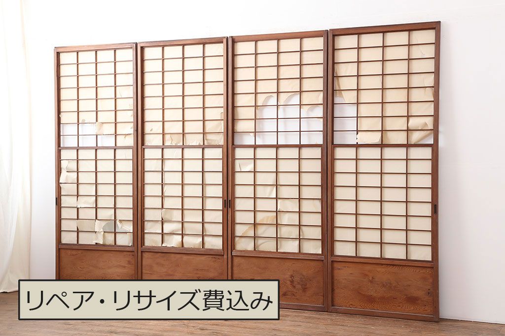 アンティーク建具 昭和初期 摺り上げ 風情あるインテリアにおすすめな雪見障子戸4枚セット(建具、擦り上げ障子戸、擦上障子戸、引き戸)(R-037063)