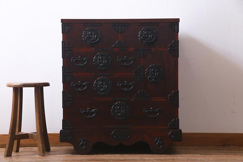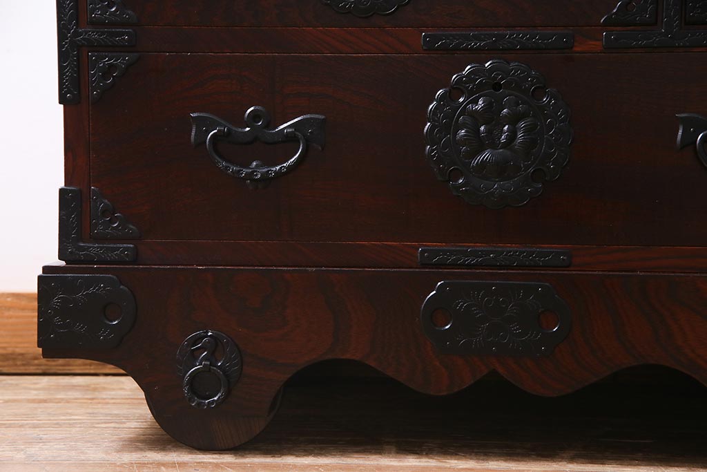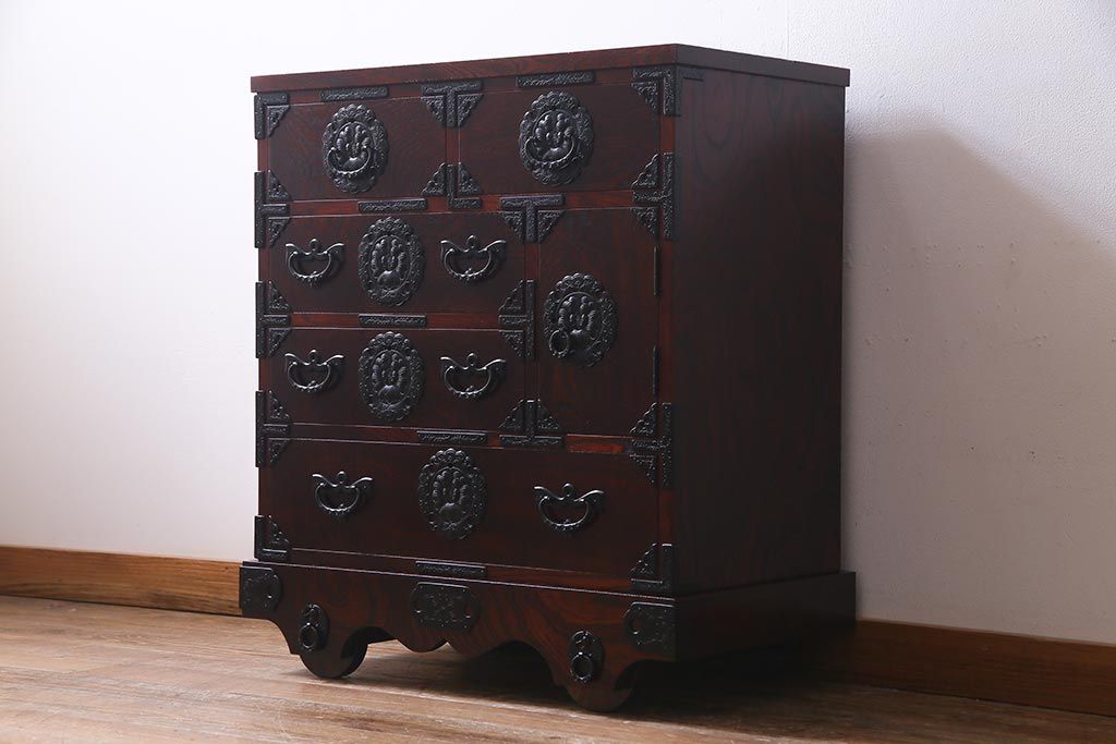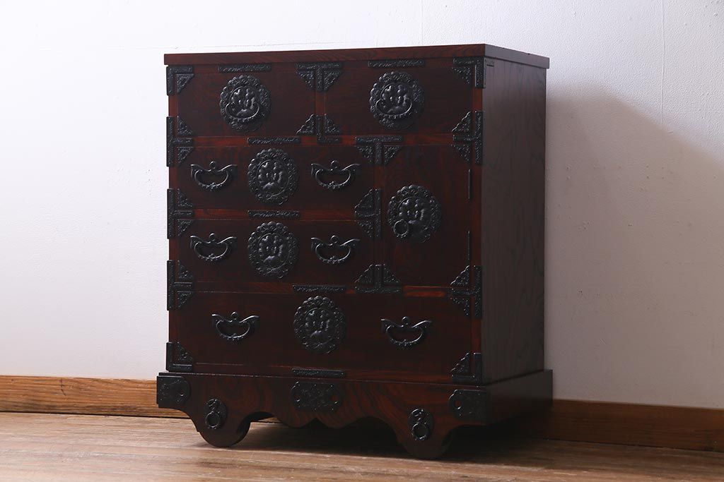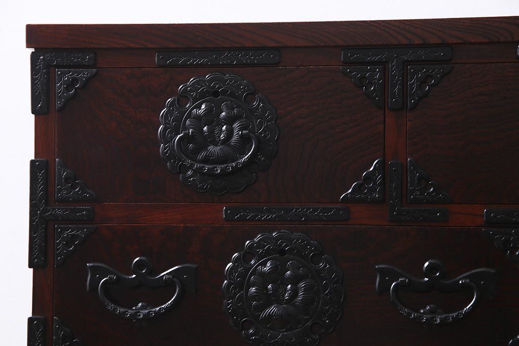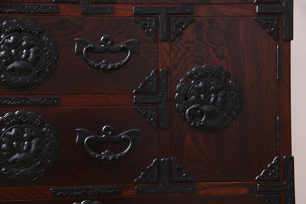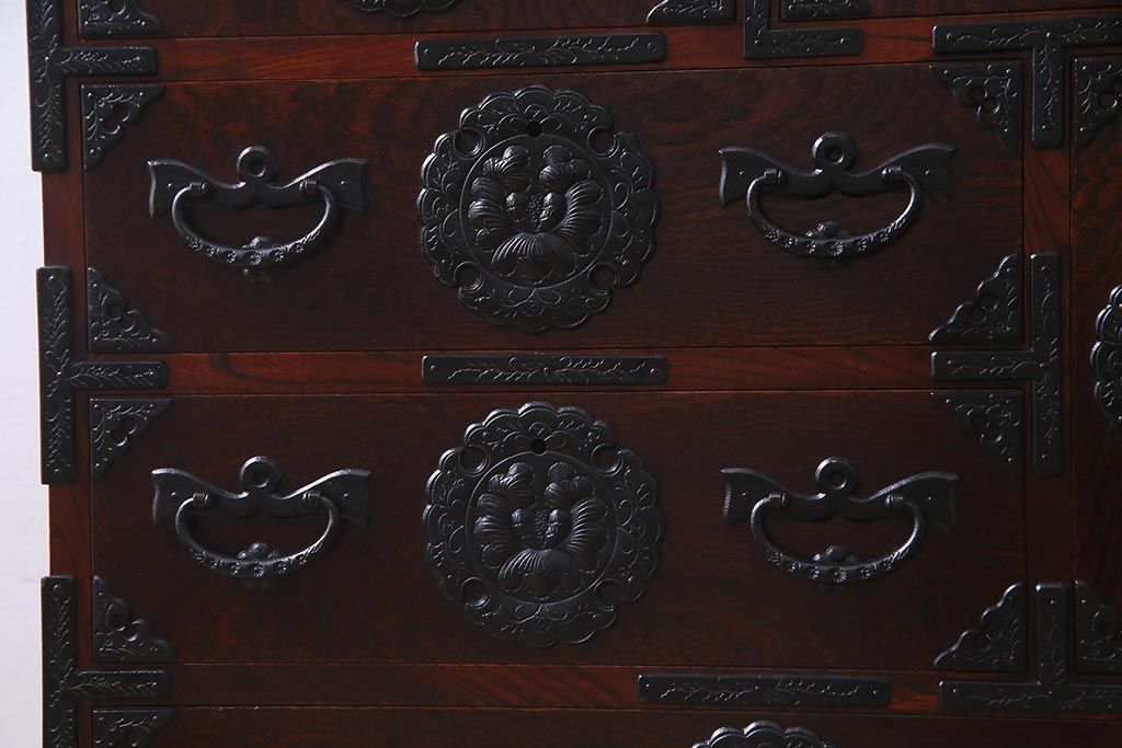 ラフジュ工房> 和箪笥> 小箪笥 > 中古 伝統民芸家具 岩谷堂箪笥 厚みのある金具が威厳を放つ車箪笥(小箪笥、チェスト)(R-038134)