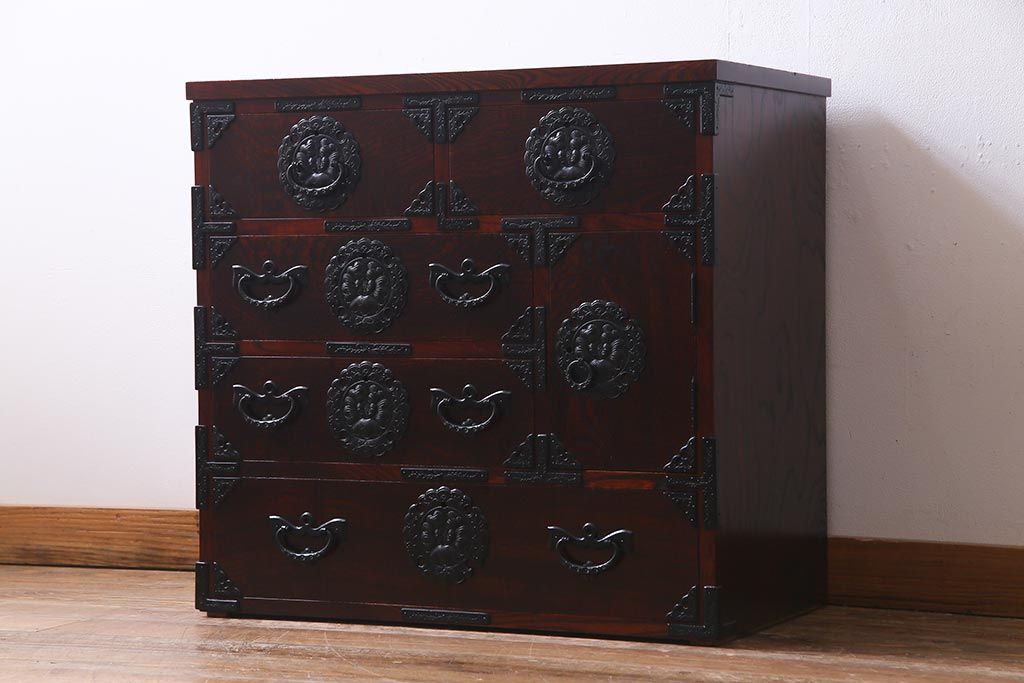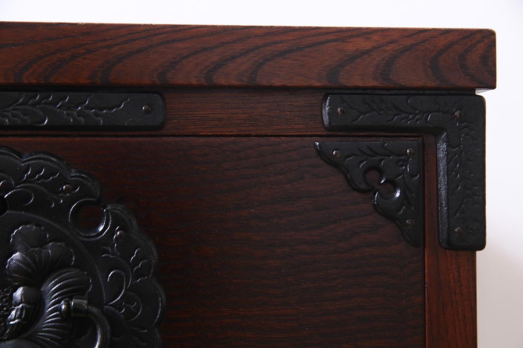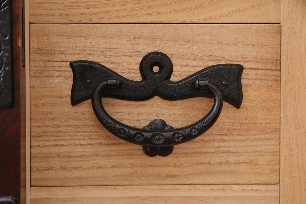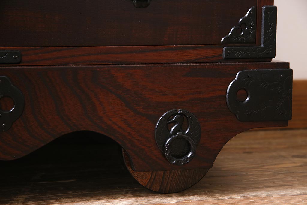ラフジュ工房> 民芸家具 > 中古 伝統民芸家具 岩谷堂箪笥 厚みのある金具が威厳を放つ車箪笥(小箪笥、チェスト)(R-038134)