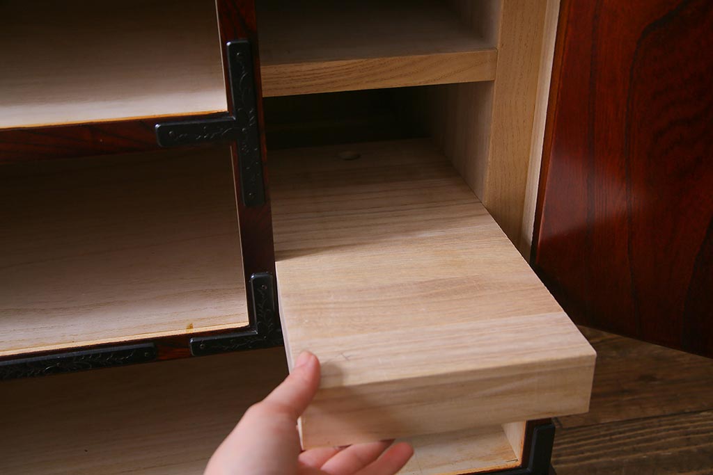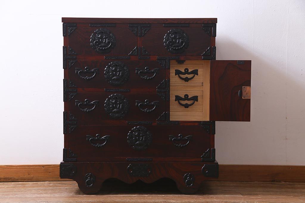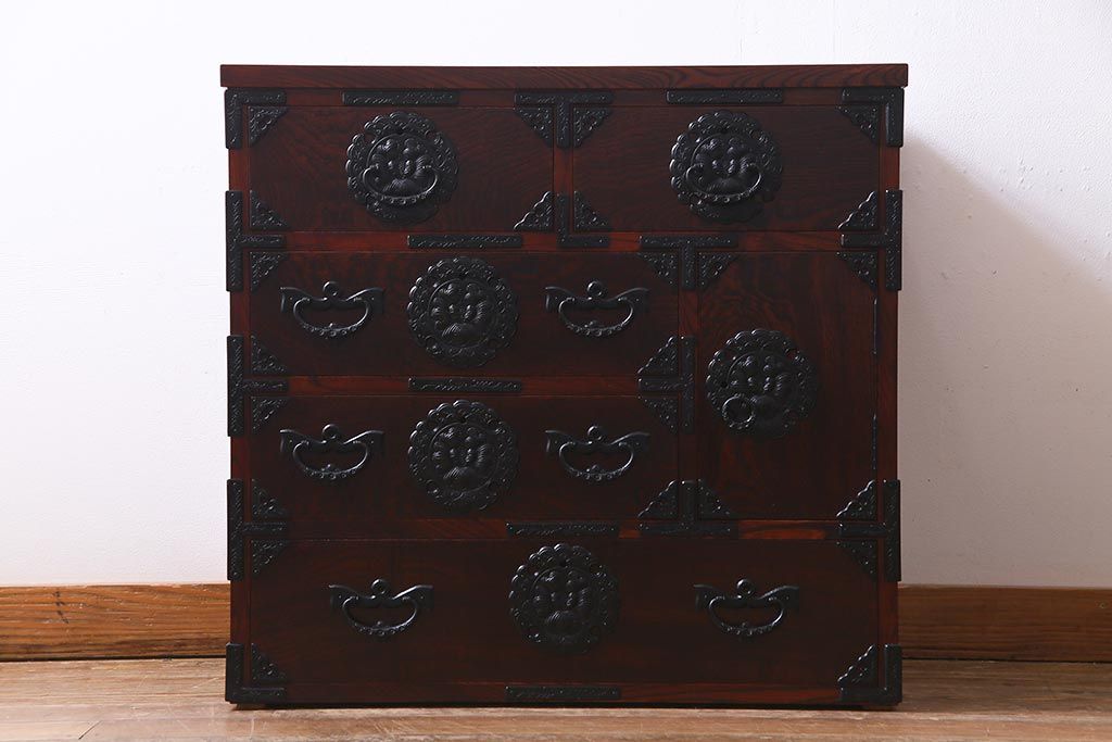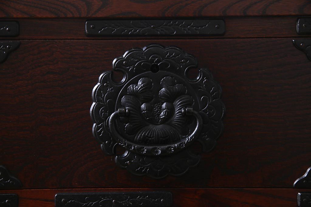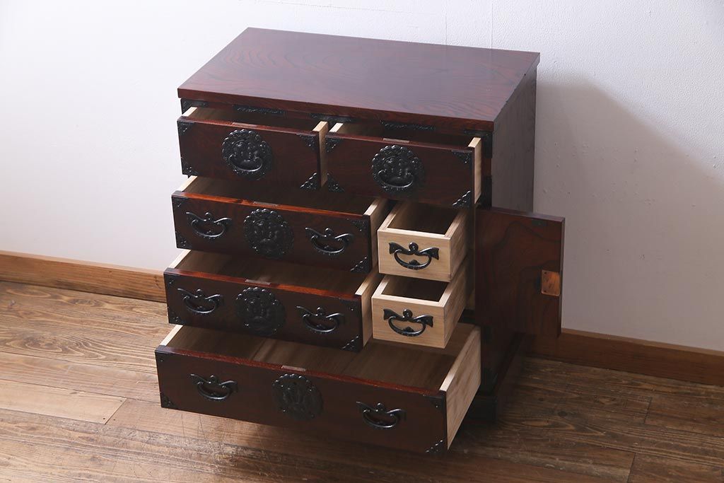 ラフジュ工房> 民芸家具 > 中古 伝統民芸家具 岩谷堂箪笥 厚みのある金具が威厳を放つ車箪笥(小箪笥、チェスト)(R-038134)