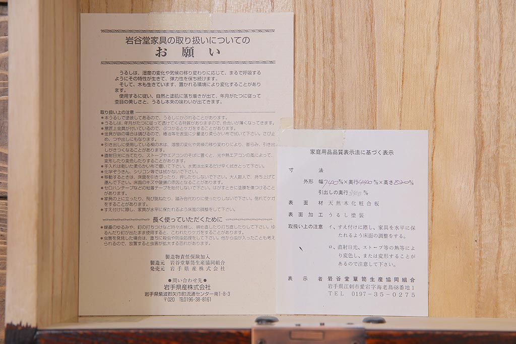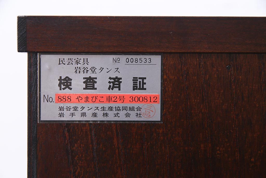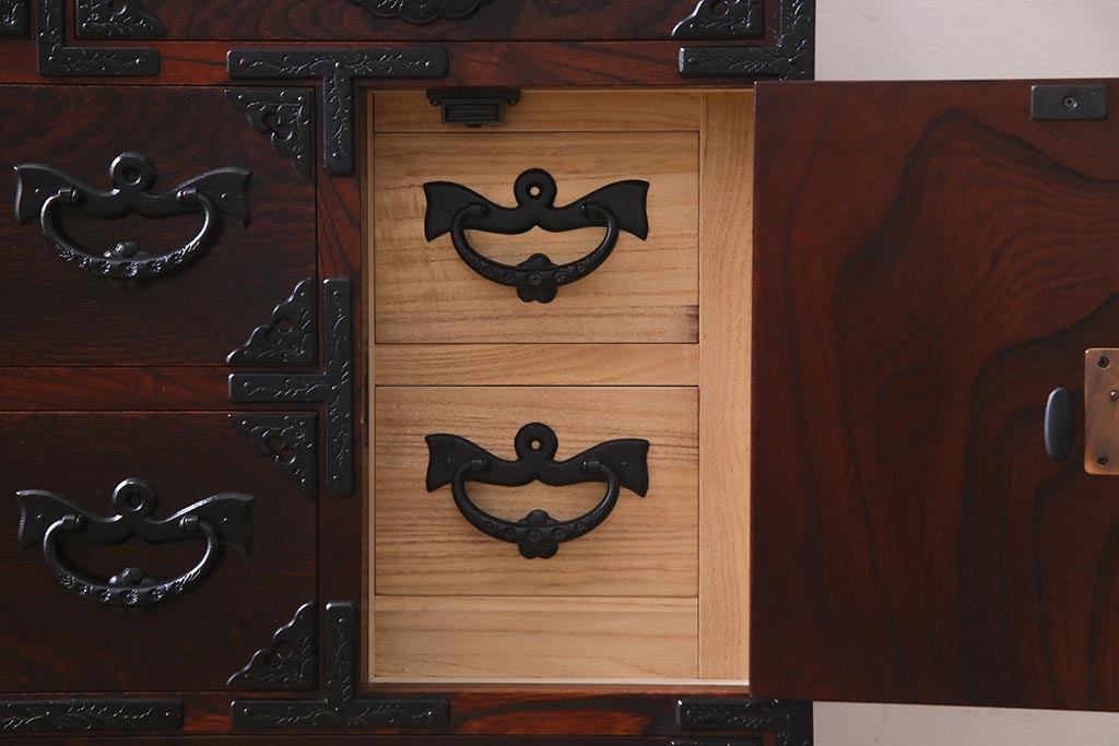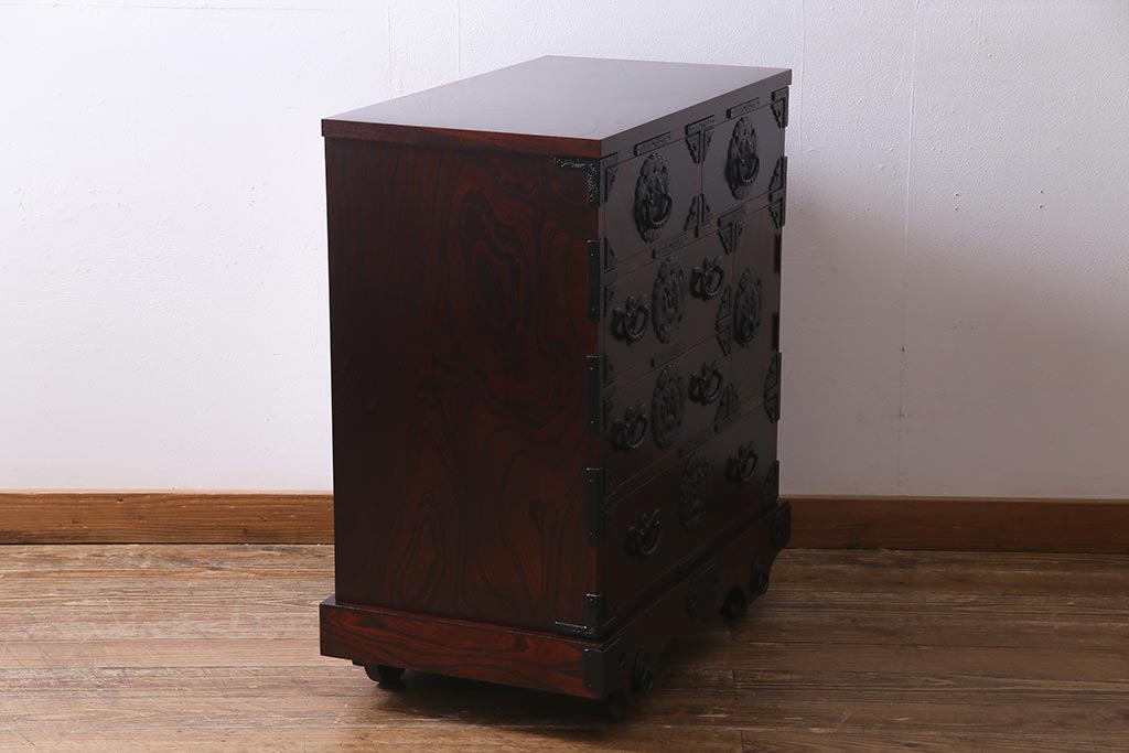 ラフジュ工房> 和箪笥 > 中古 伝統民芸家具 岩谷堂箪笥 厚みのある金具が威厳を放つ車箪笥(小箪笥、チェスト)(R-038134)