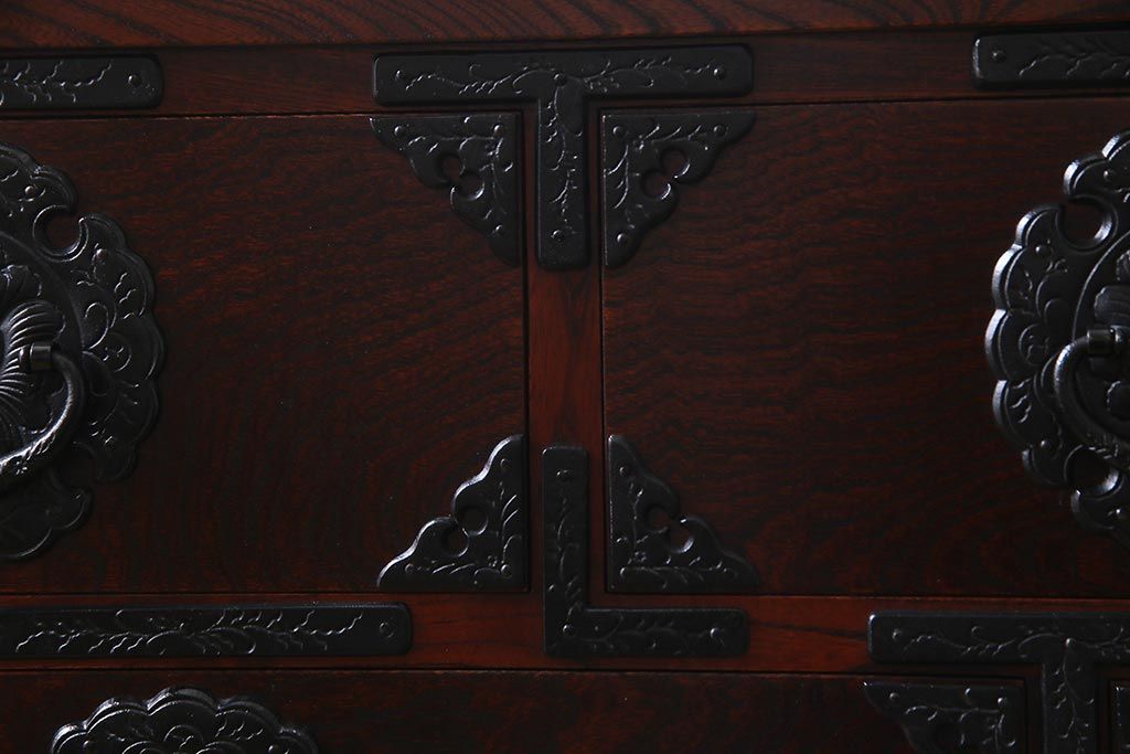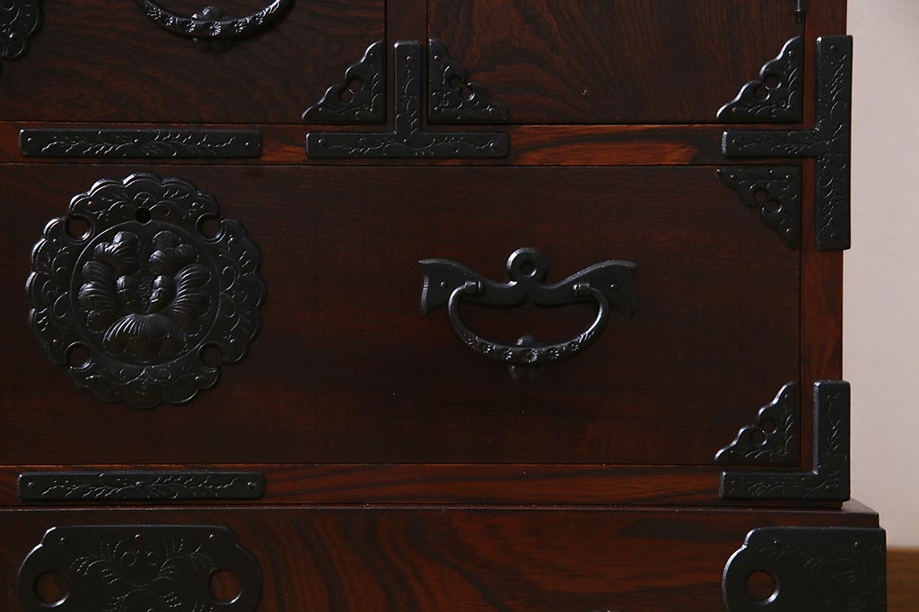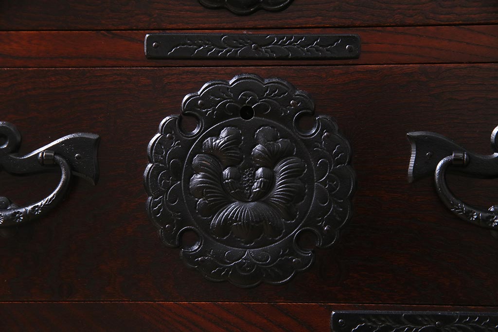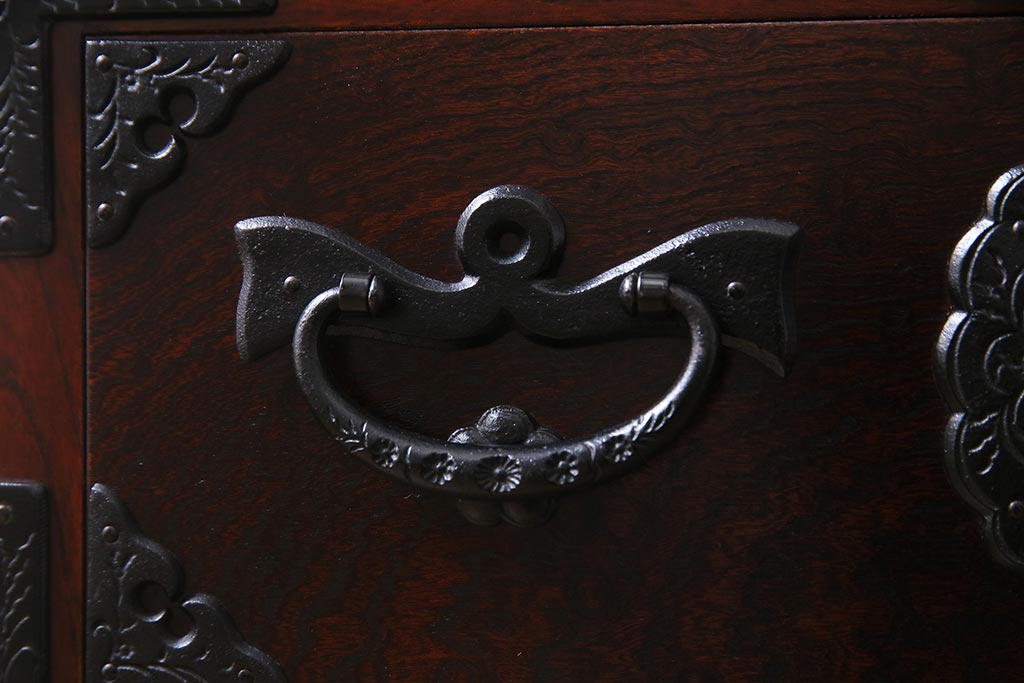 中古 伝統民芸家具 岩谷堂箪笥 厚みのある金具が威厳を放つ車箪笥(小箪笥、チェスト)(R-038134)