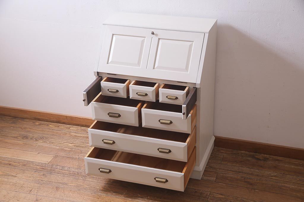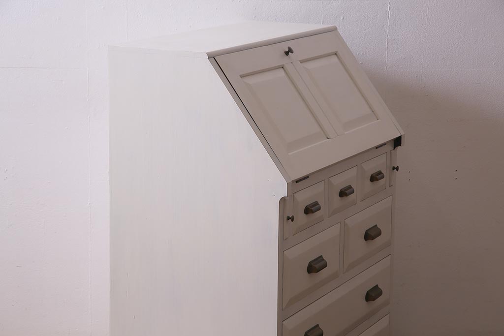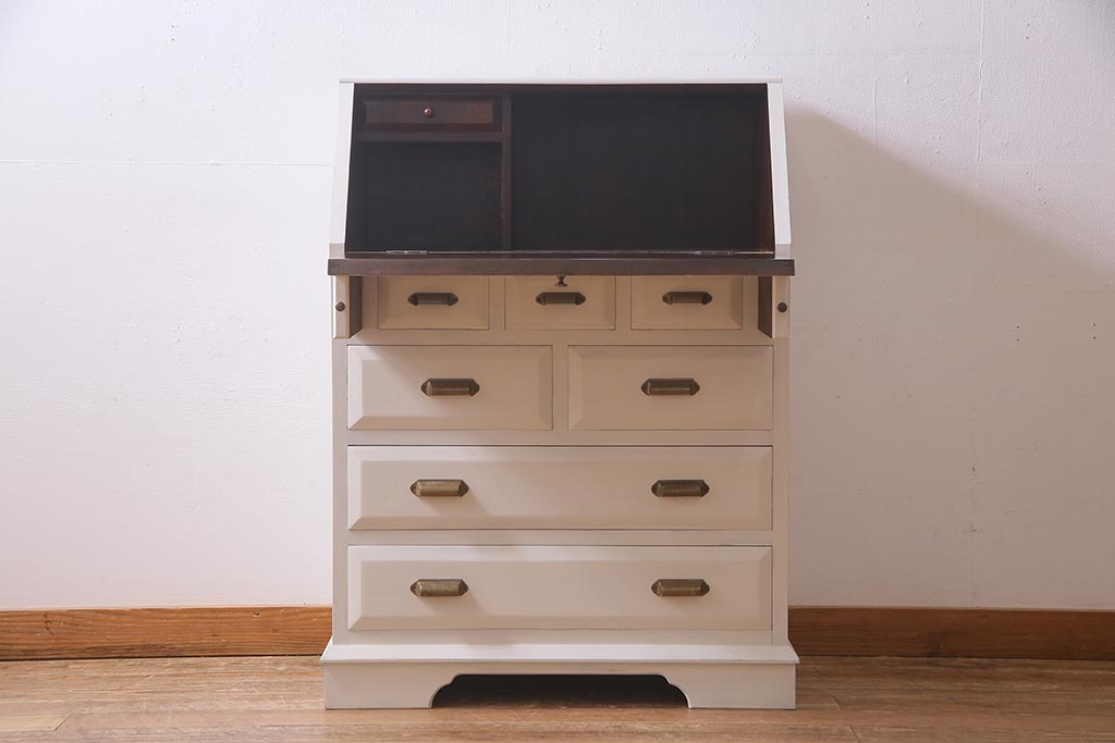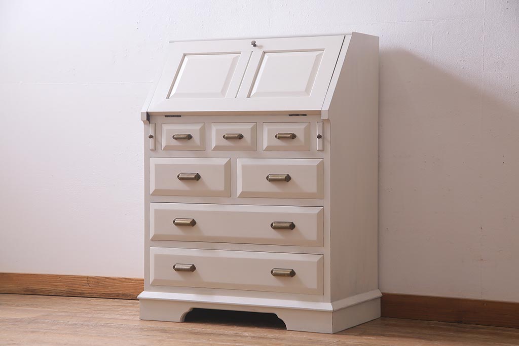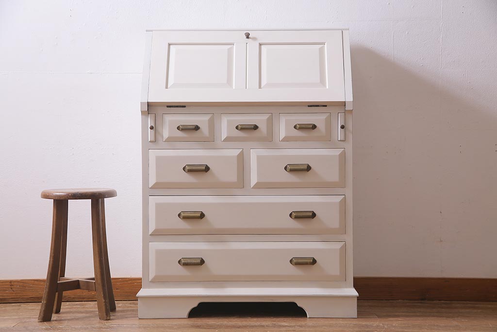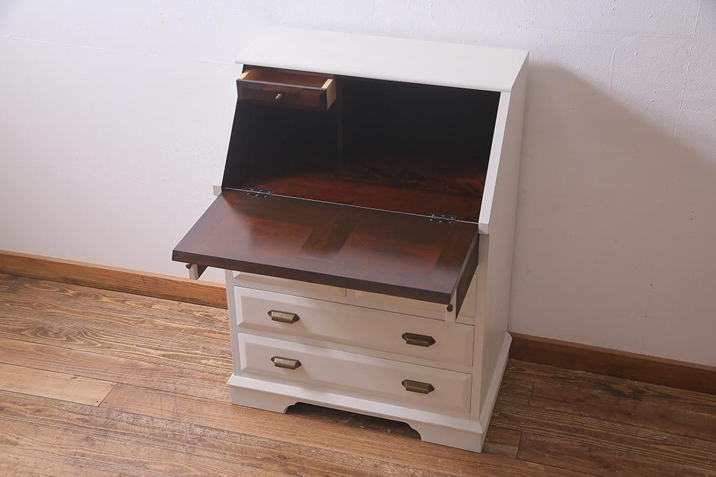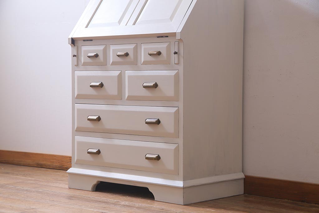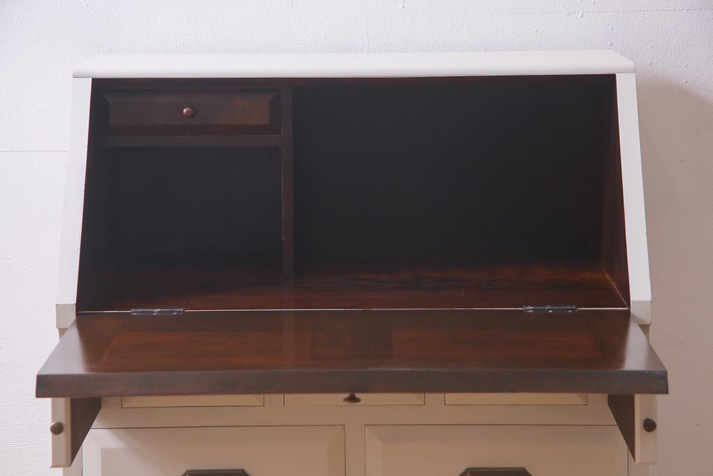 ラフジュ工房> 民芸家具 > 当店リメイク 松本民芸家具 明るい雰囲気が魅力的な当店ペイントのライティングビューロー(ワークデスク、机、在宅ワーク、在宅用)(R-038124)
