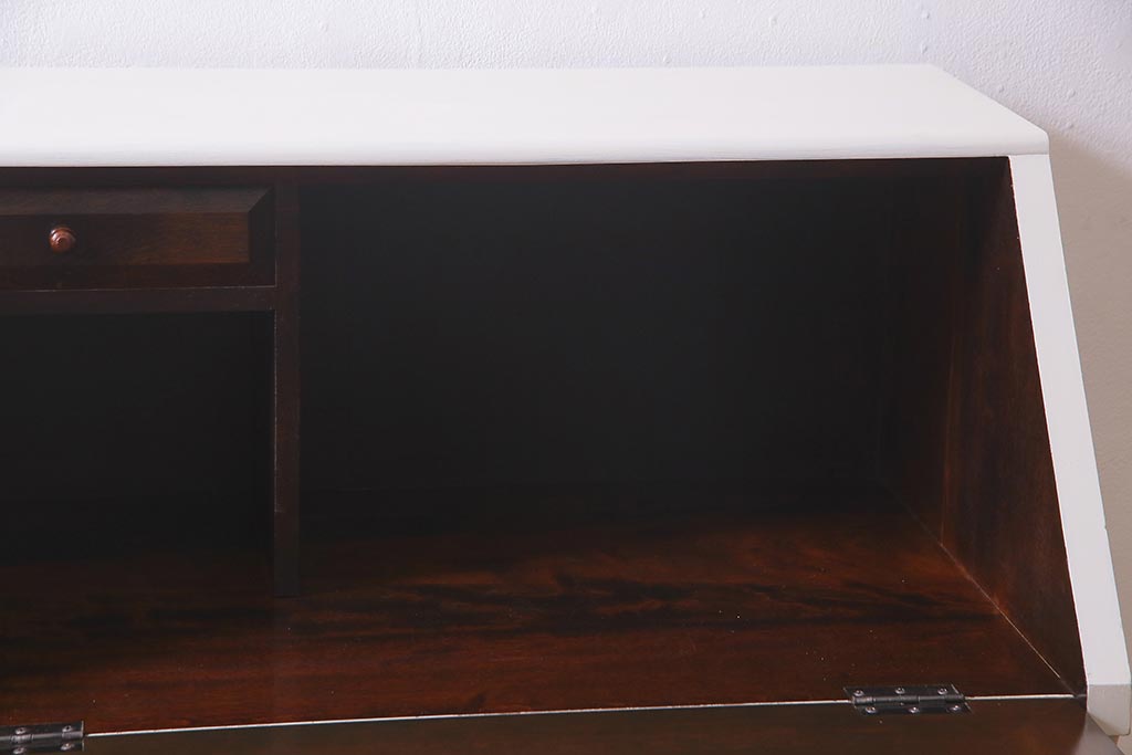 当店リメイク 松本民芸家具 明るい雰囲気が魅力的な当店ペイントのライティングビューロー(ワークデスク、机、在宅ワーク、在宅用)(R-038124)