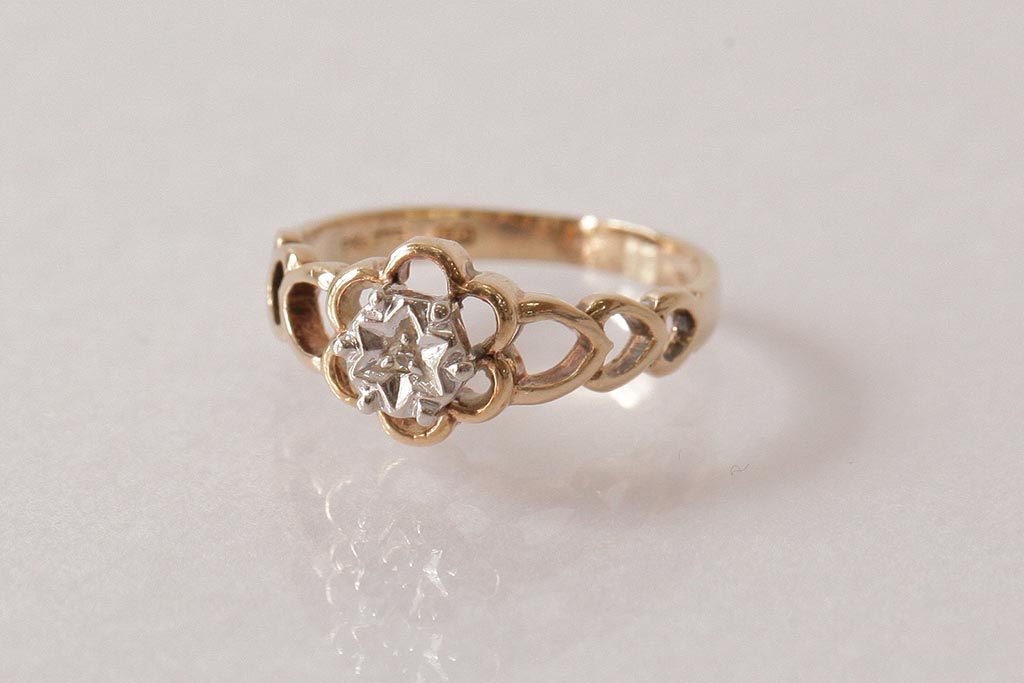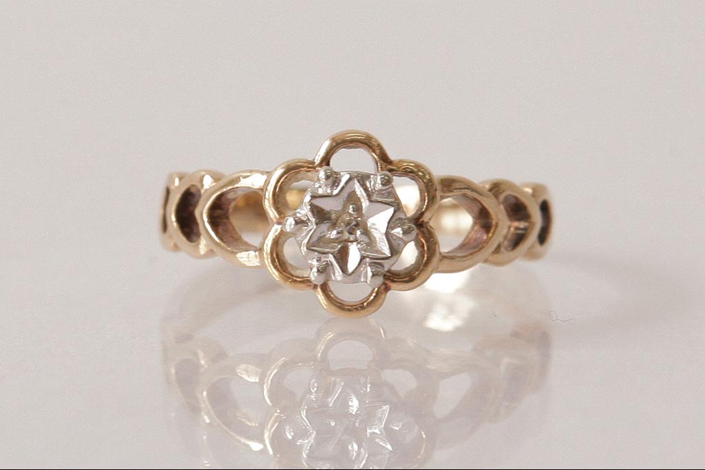 ラフジュ工房> アクセサリー > アンティーク雑貨 イギリスビンテージ 9K 箱付き 花モチーフの可愛らしいリング(指輪、アクセサリー)(R-038044)