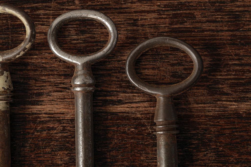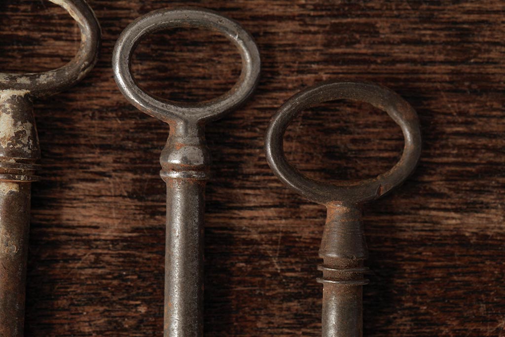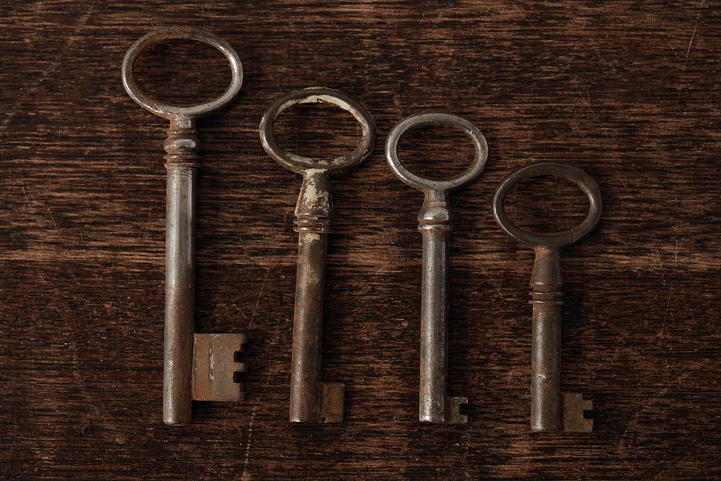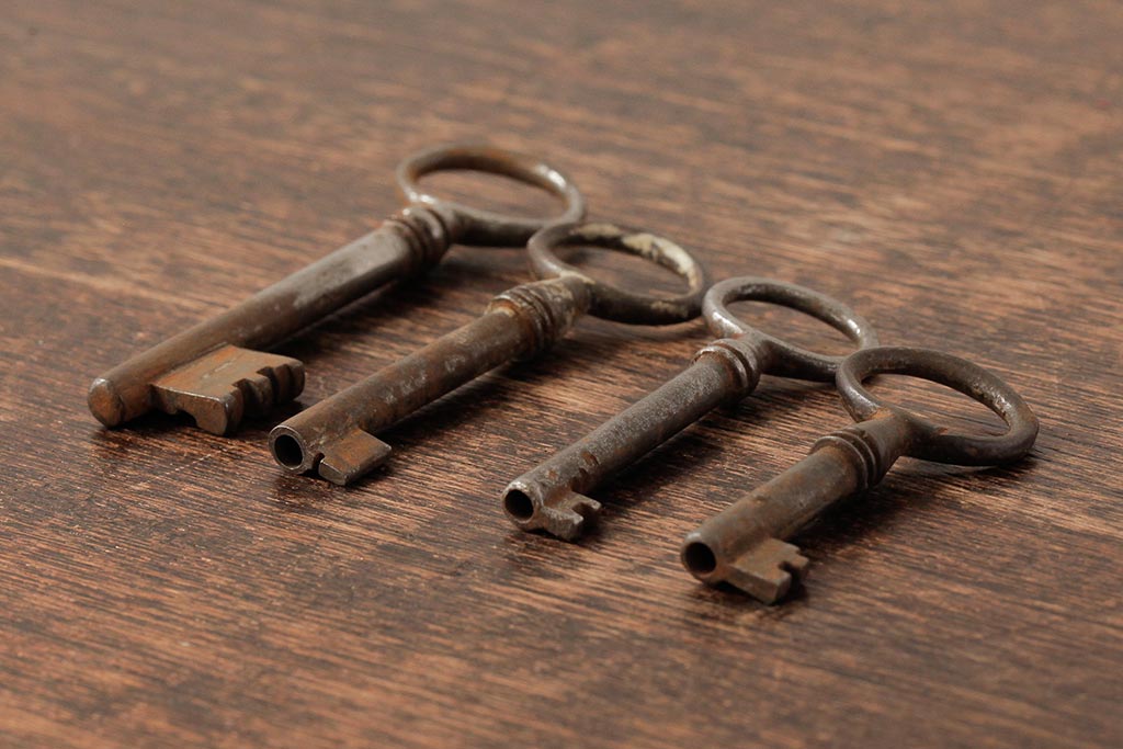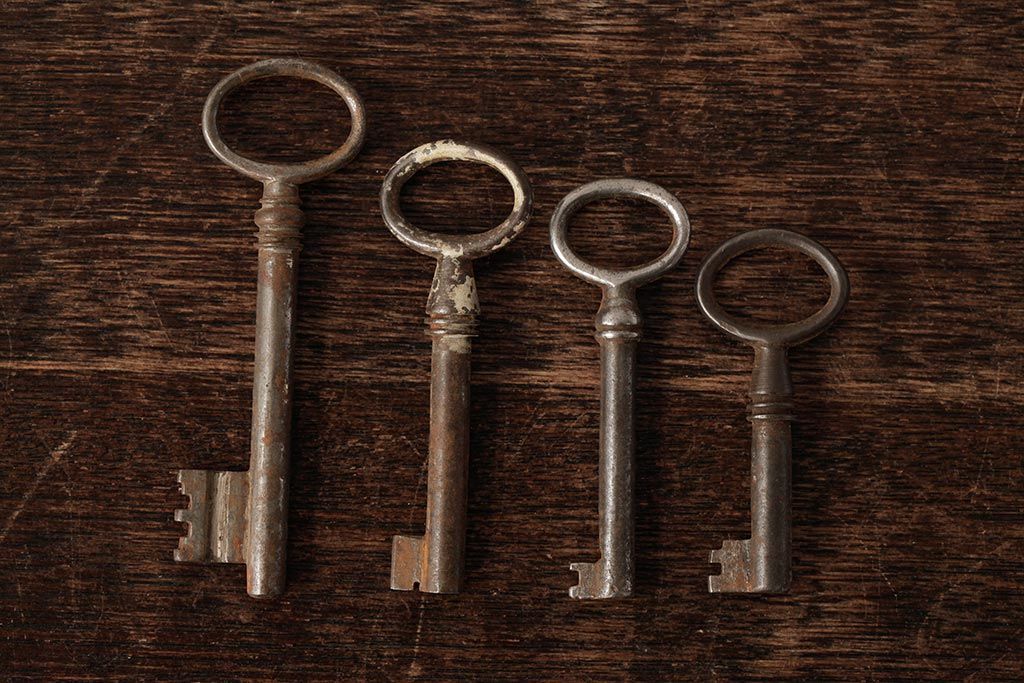 アンティーク雑貨 フランスアンティーク ブロカントスタイルに合うシャビーなキー4本セット(鍵、カギ)(R-038002)