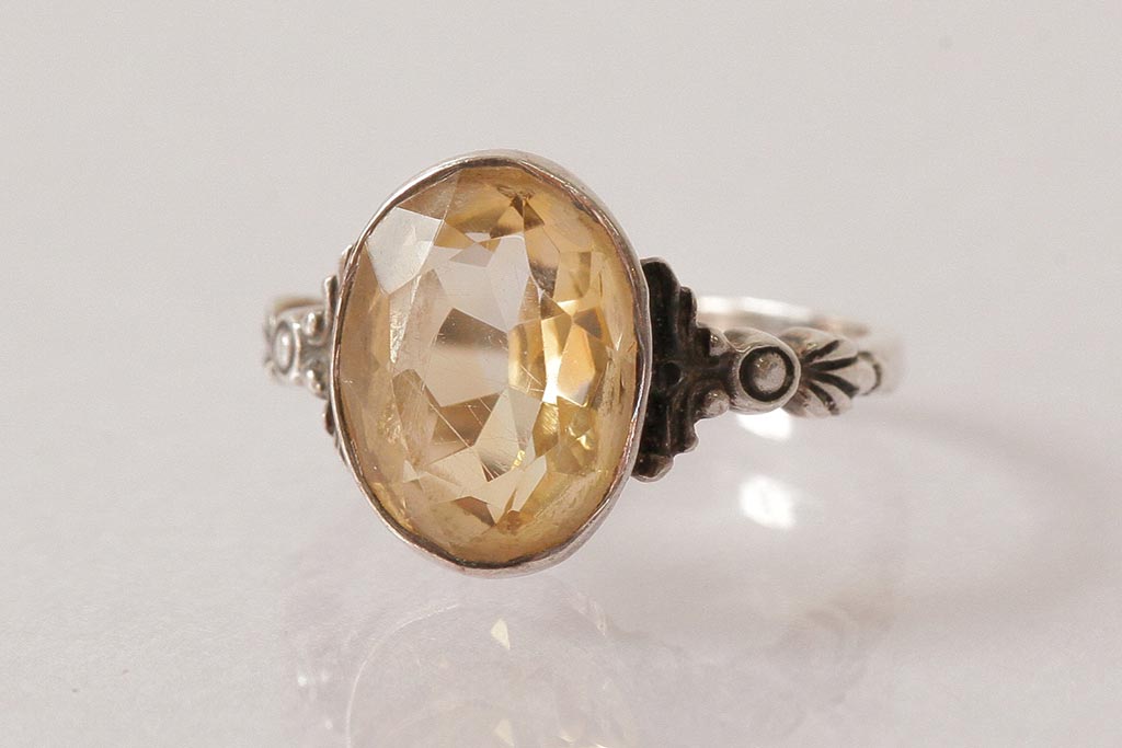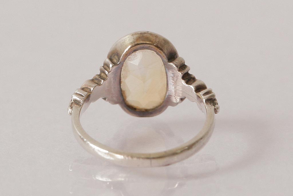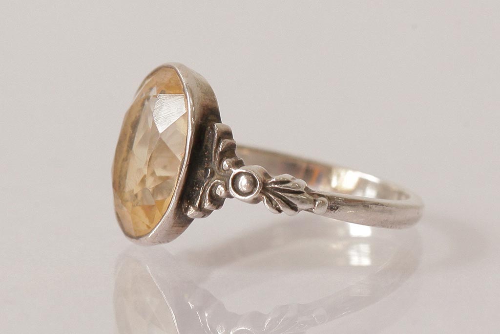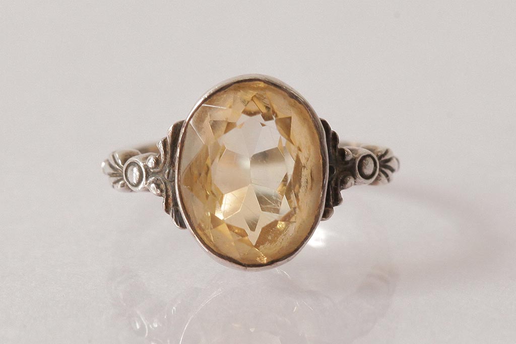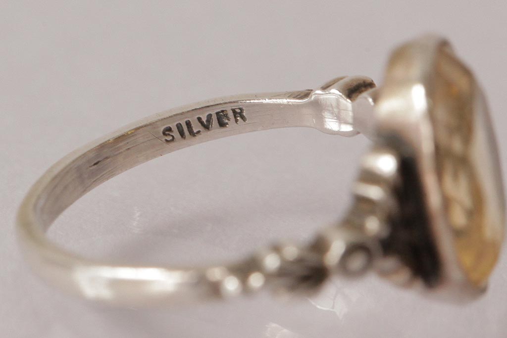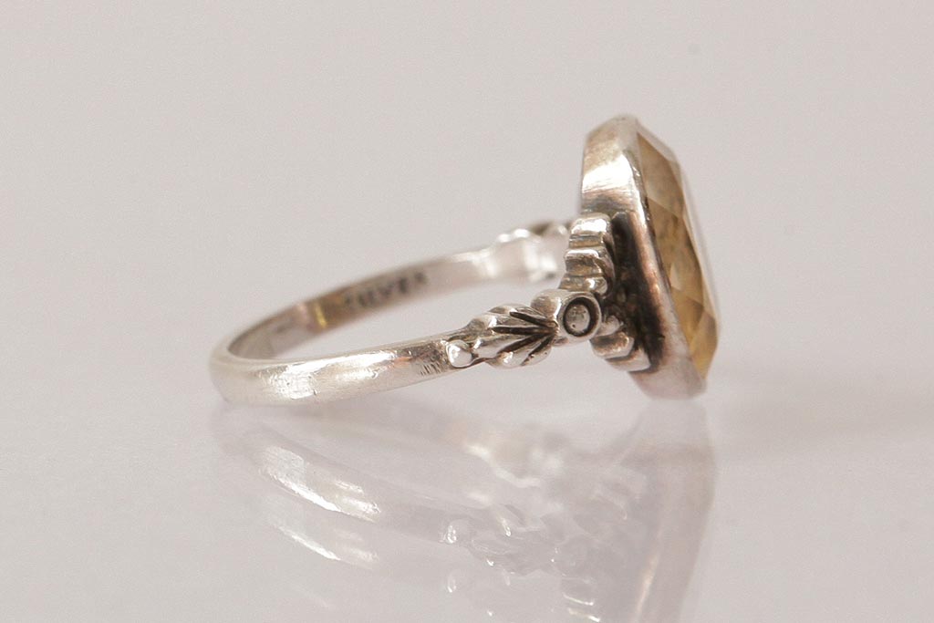 ラフジュ工房> 雑貨 > アンティーク雑貨 イギリスビンテージ 淡いイエローガラスのシルバーリング(指輪、アクセサリー)(R-038040)
