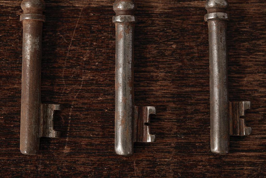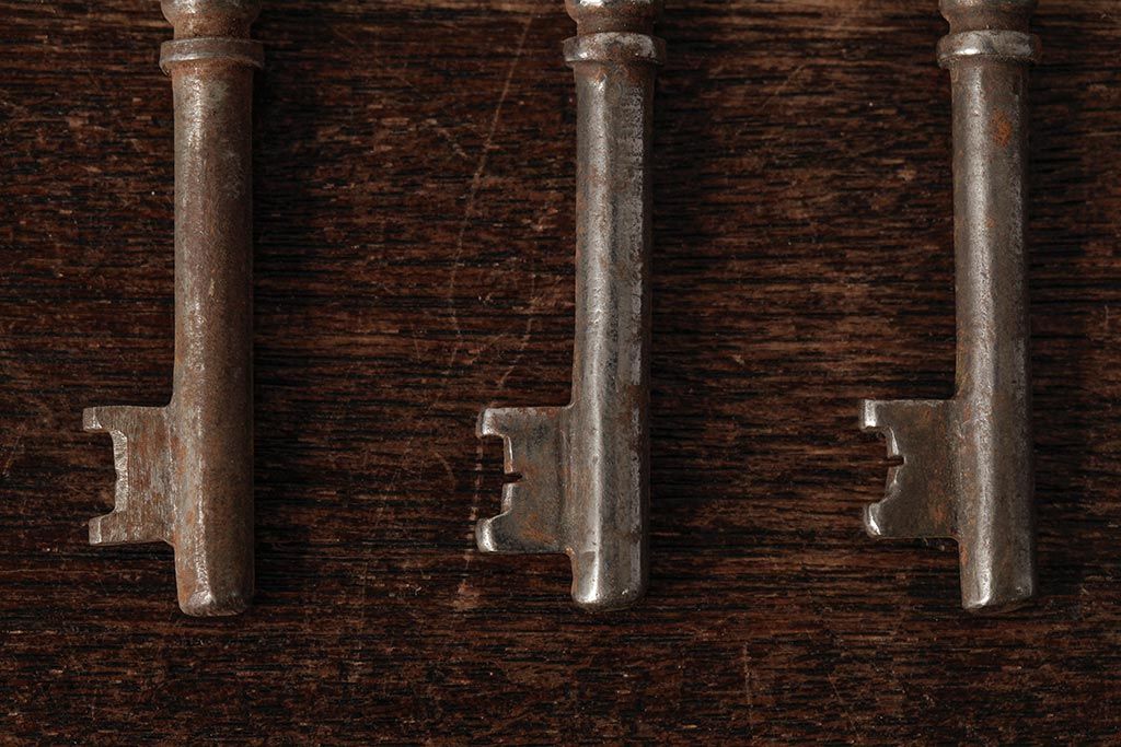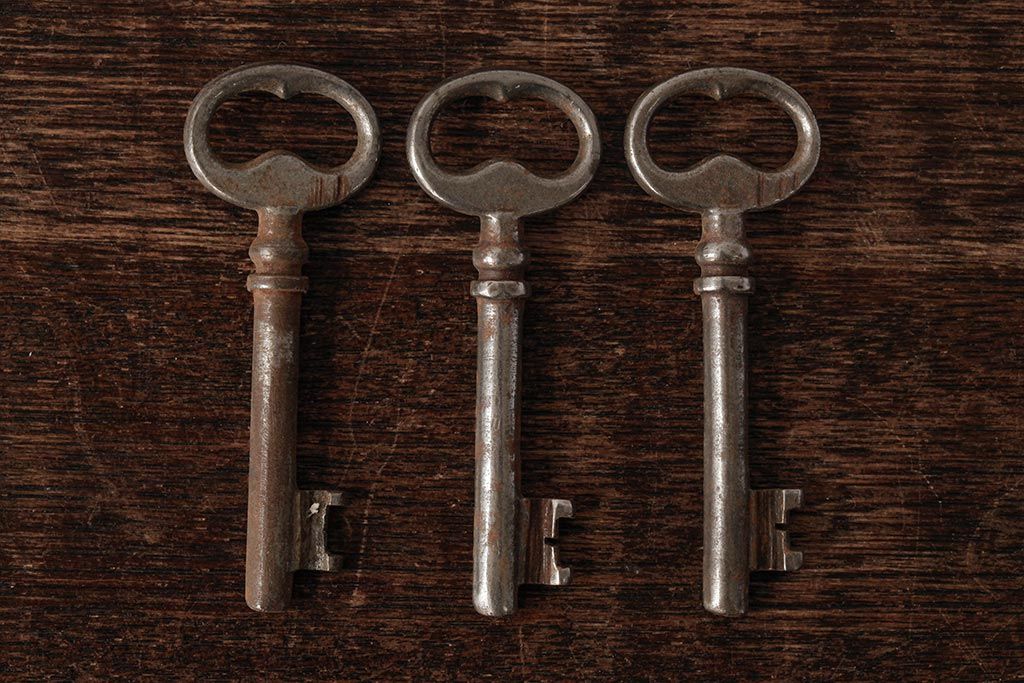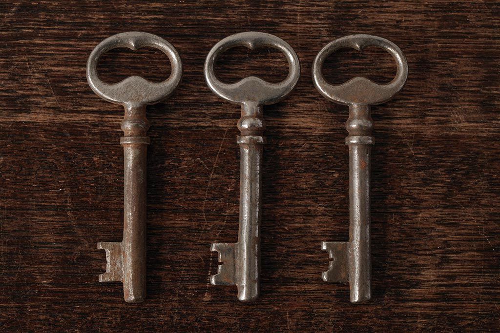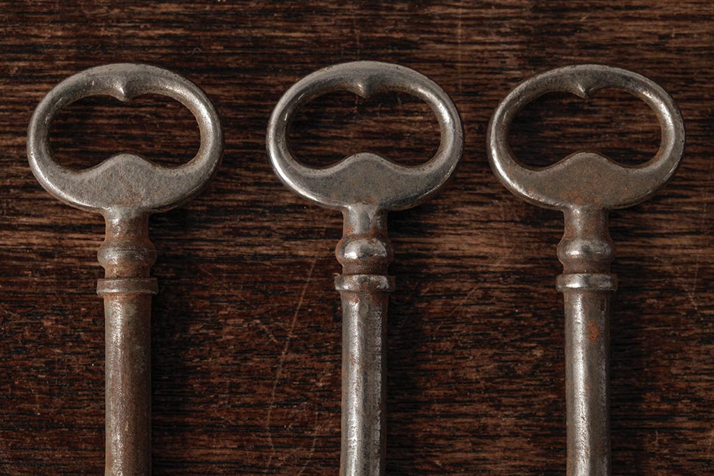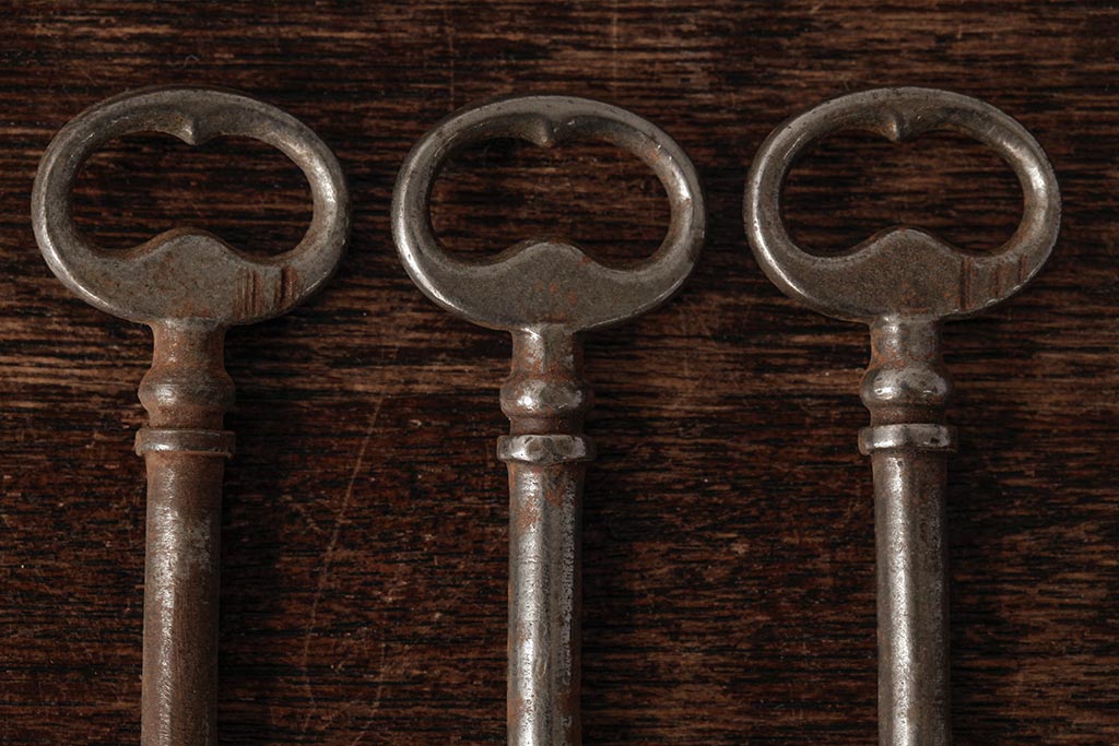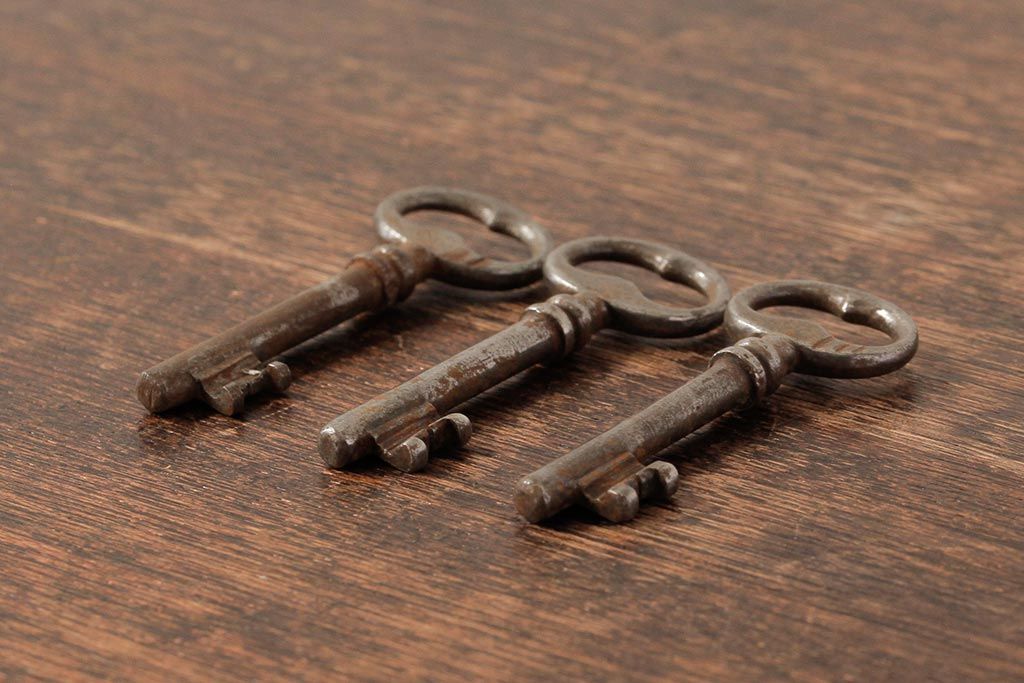 アンティーク雑貨 フランスアンティーク ブロカントスタイルに合うシャビーなキー3本セット(鍵、カギ)(R-038004)