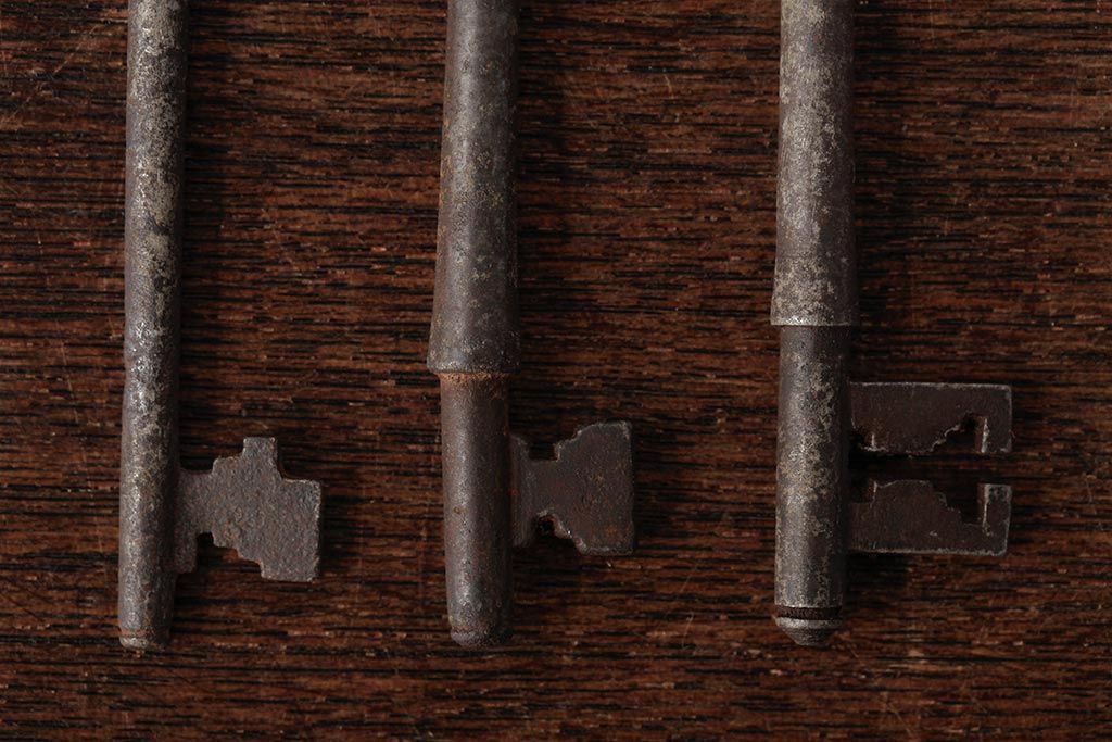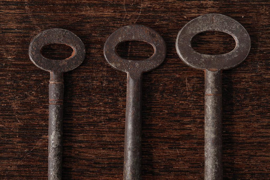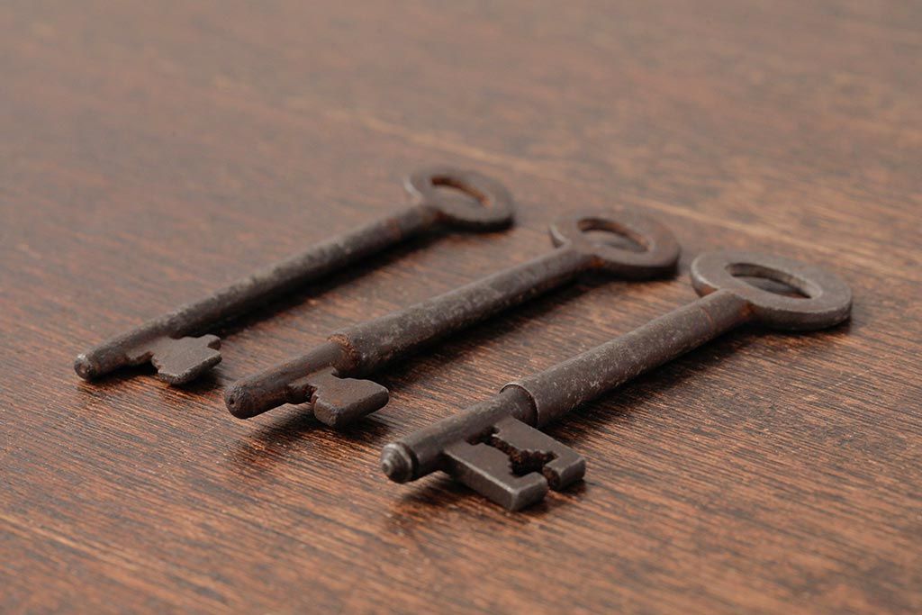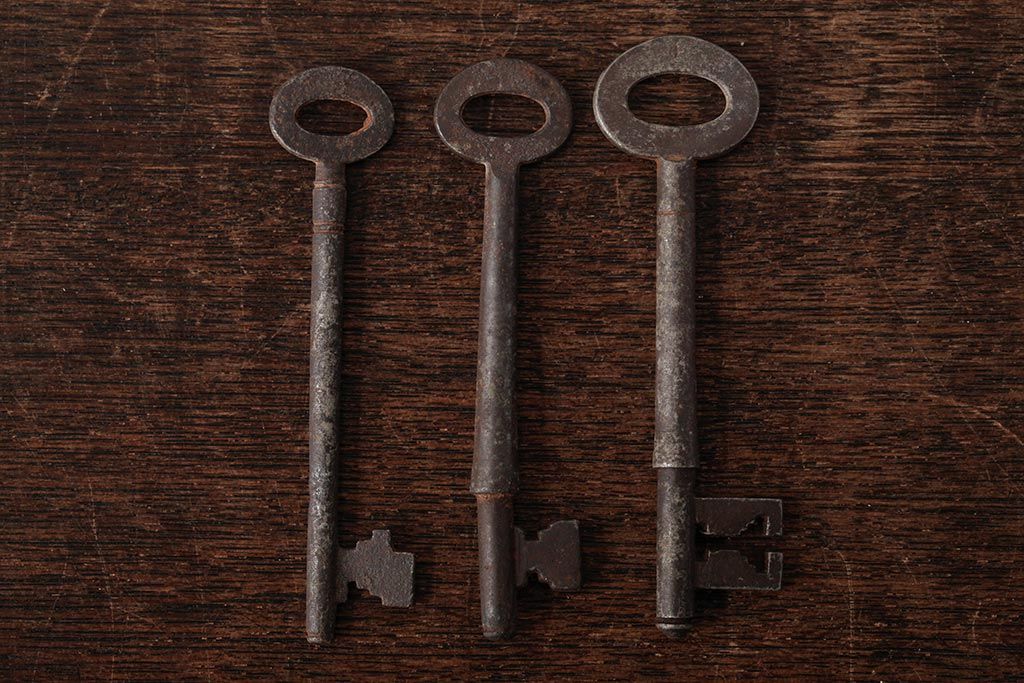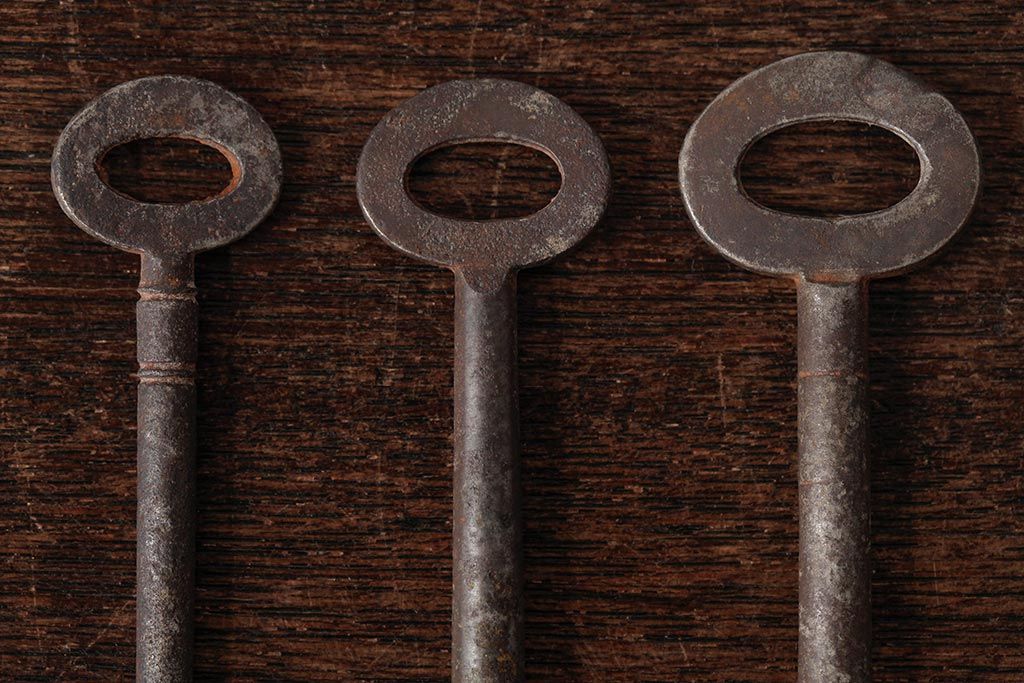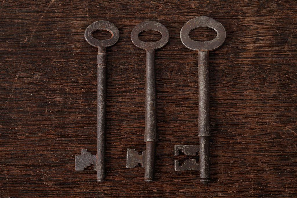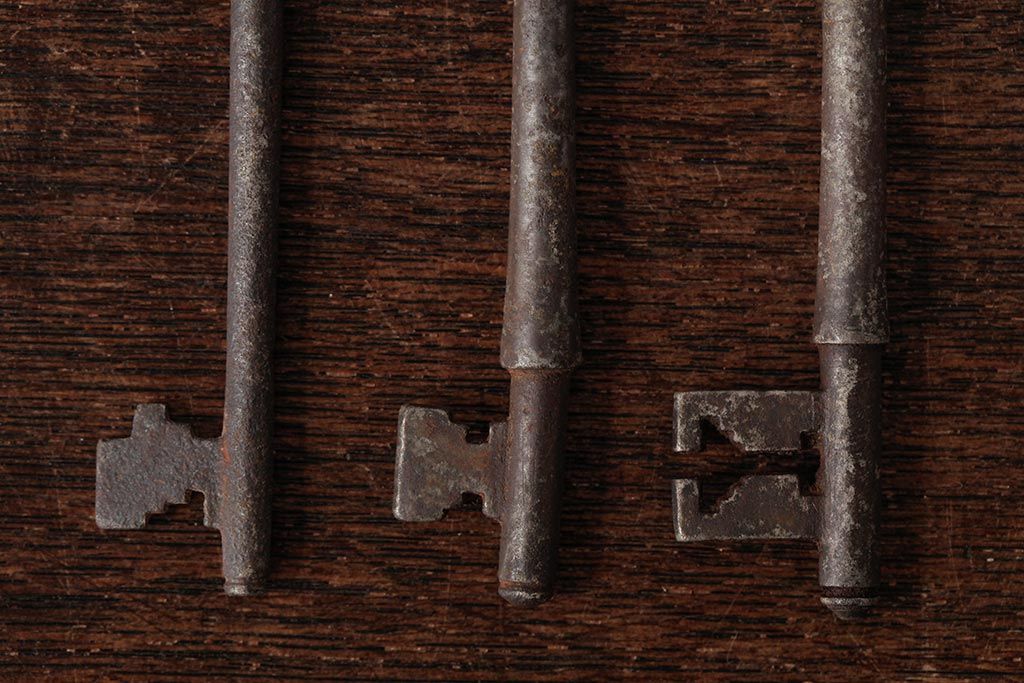 アンティーク雑貨 イギリスアンティーク 味のある風合いが魅力の古いキー3本セット(鍵、カギ)(R-037932)