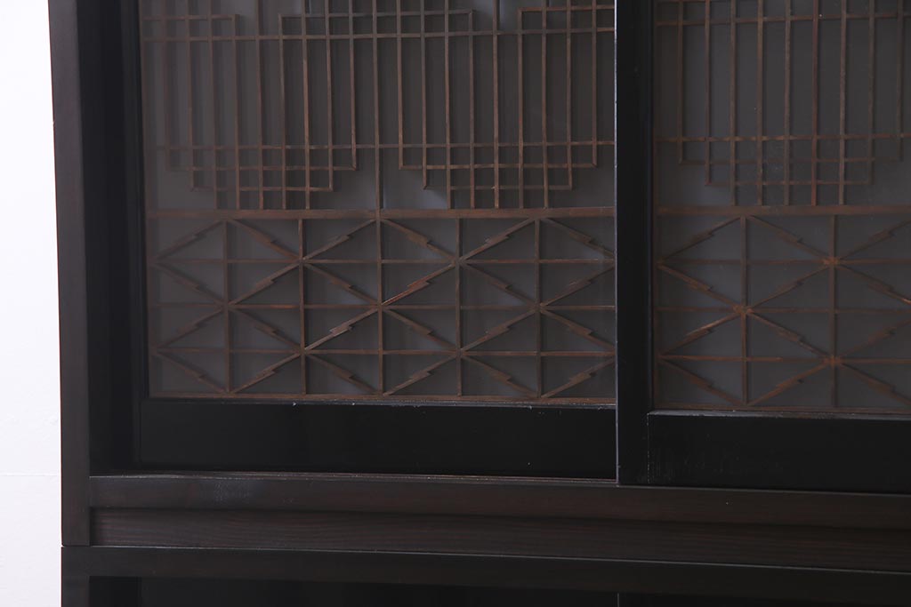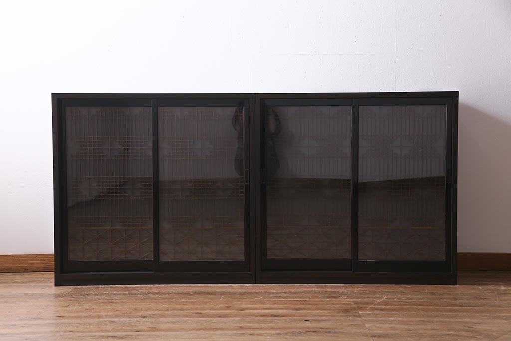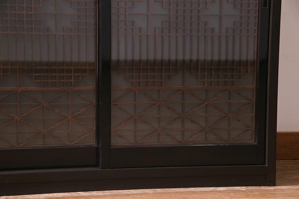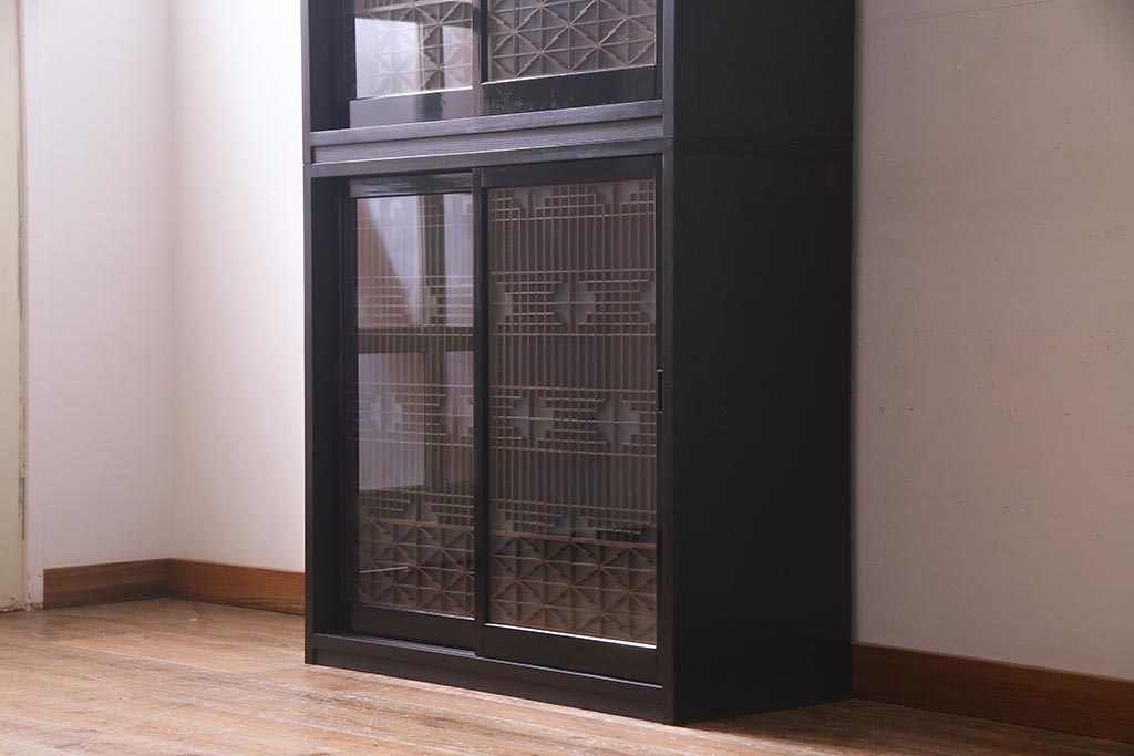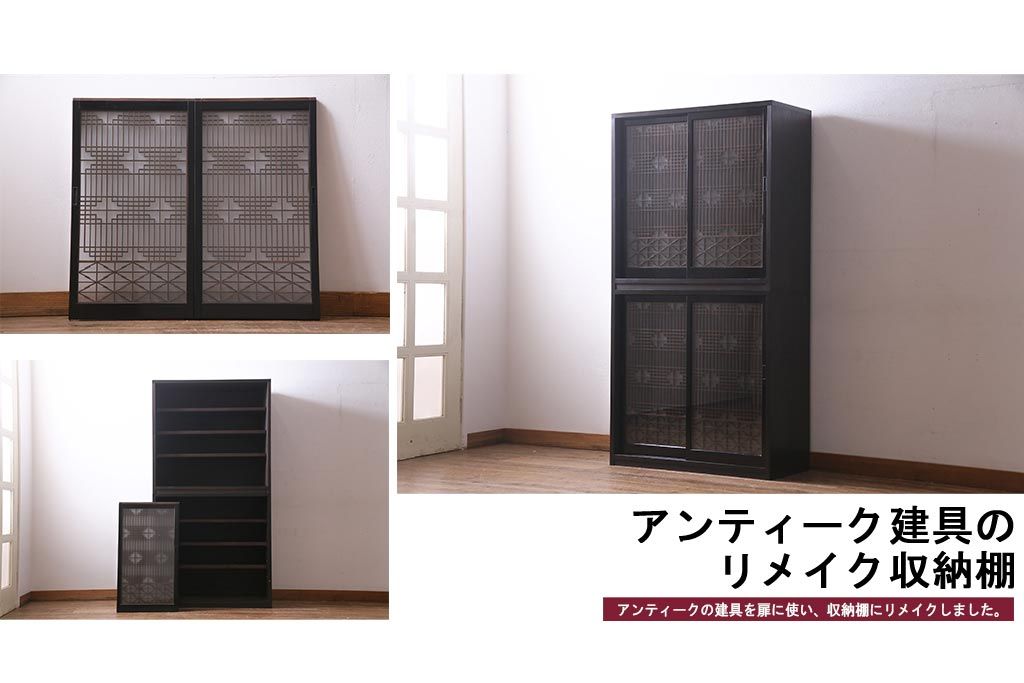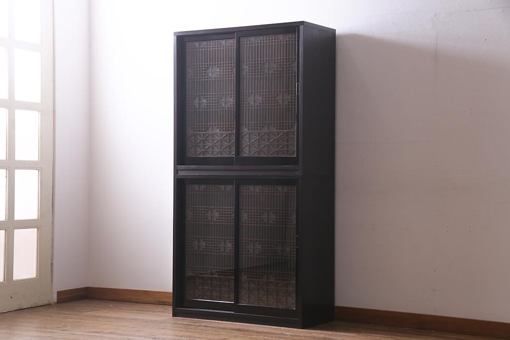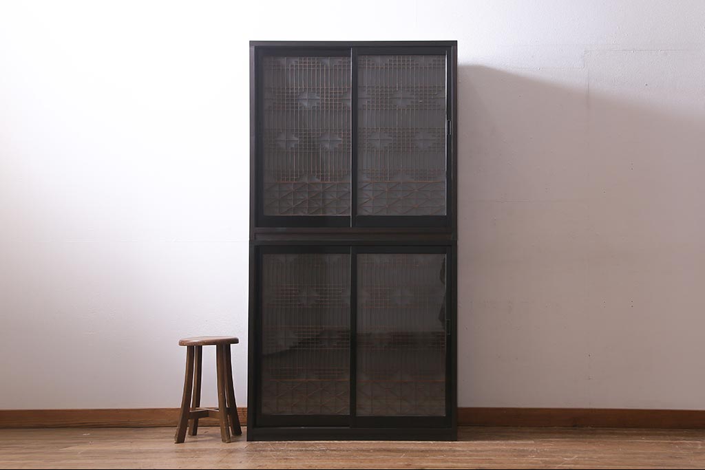 ラフジュ工房オリジナル アンティーク古建具リメイク すりガラス入り 組子模様が美しい重ね戸棚(書院戸、収納棚、キャビネット)(R-038131)