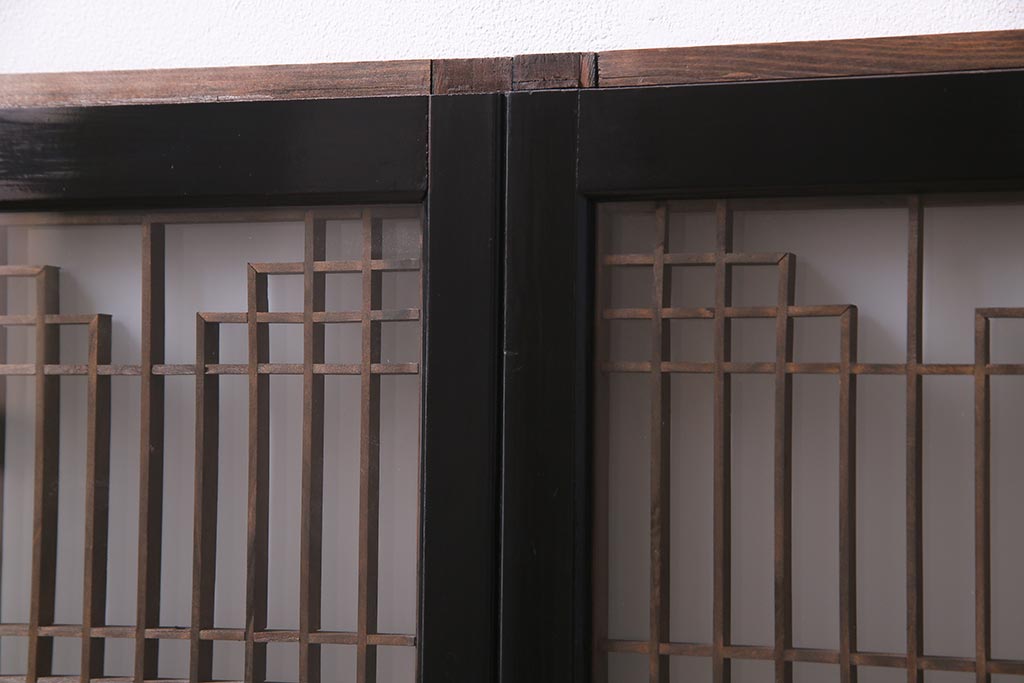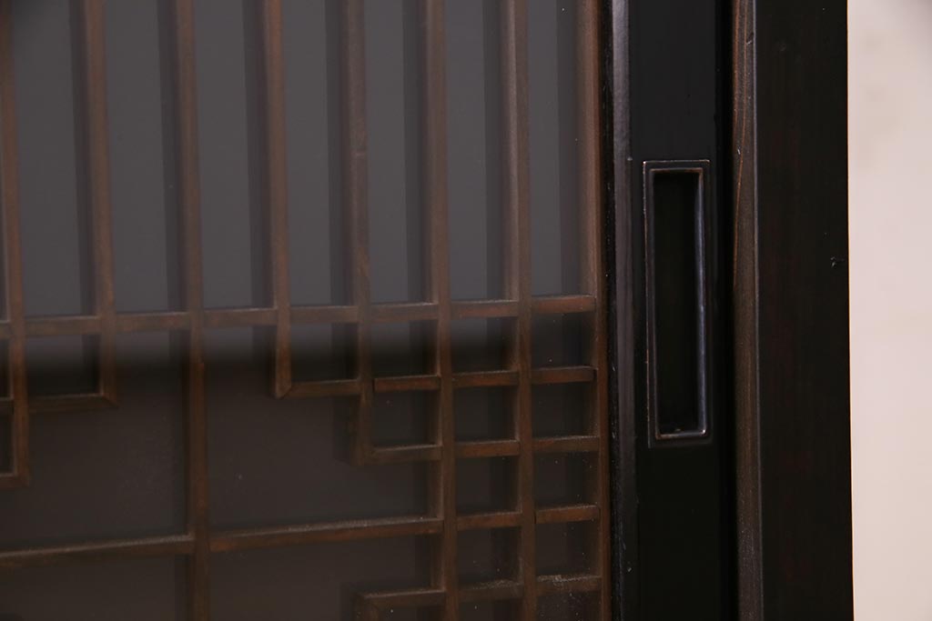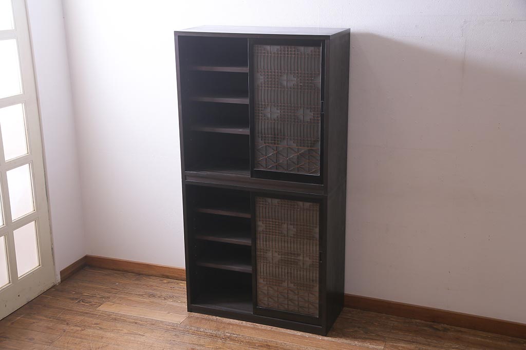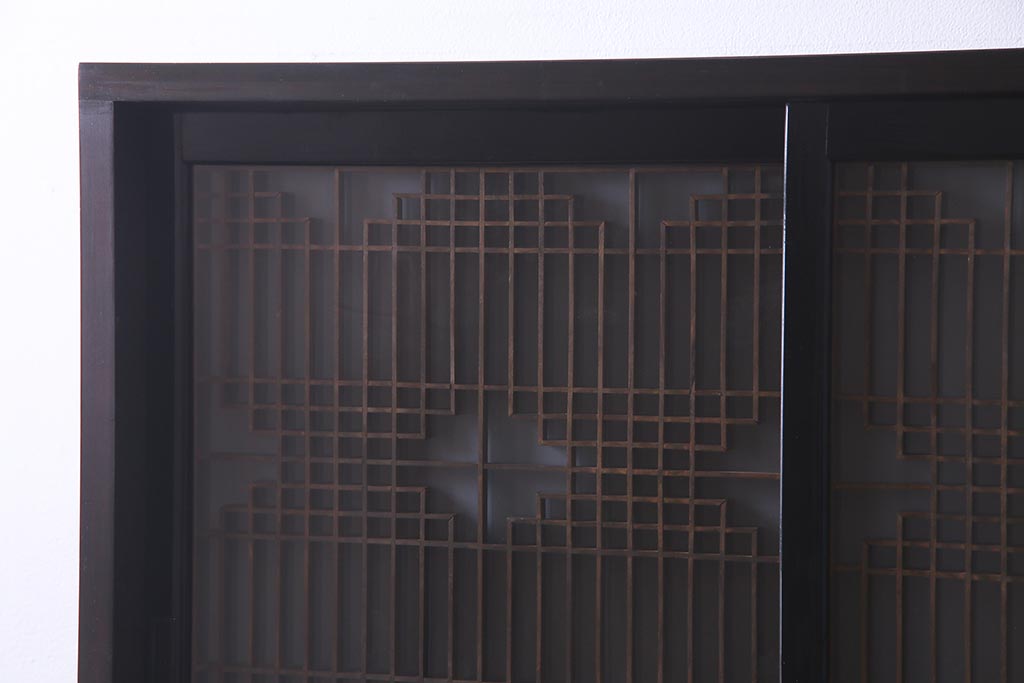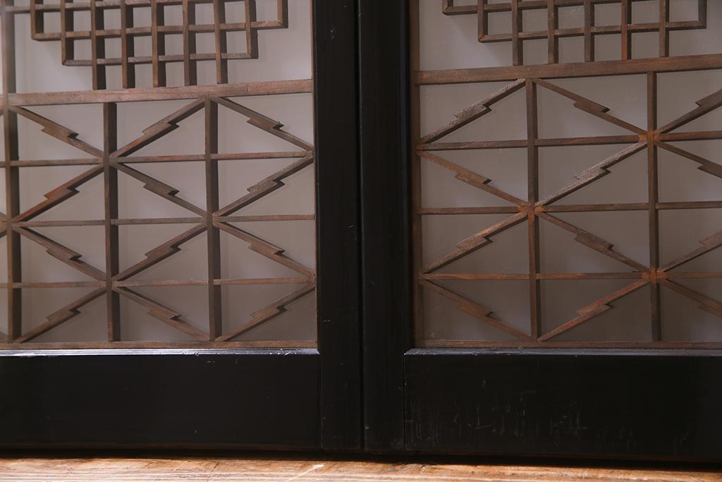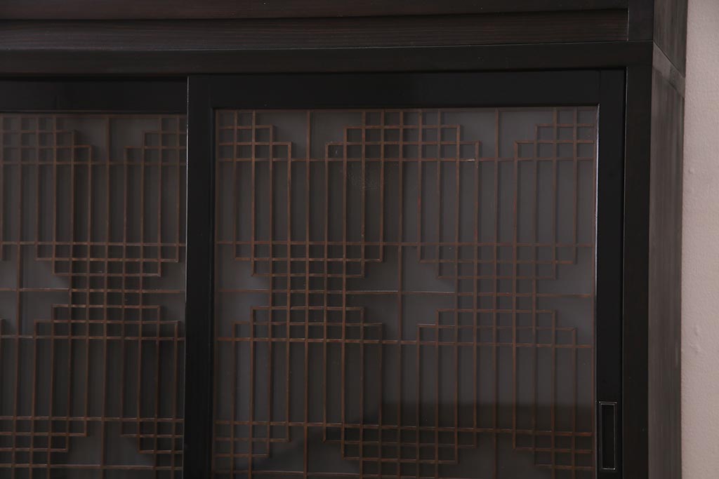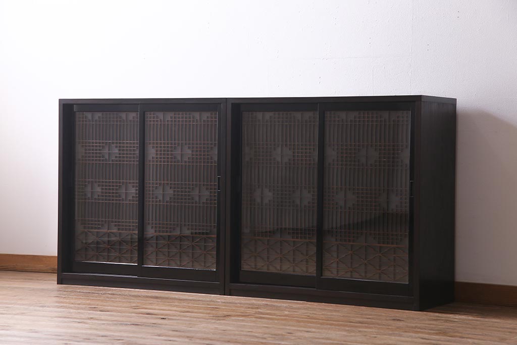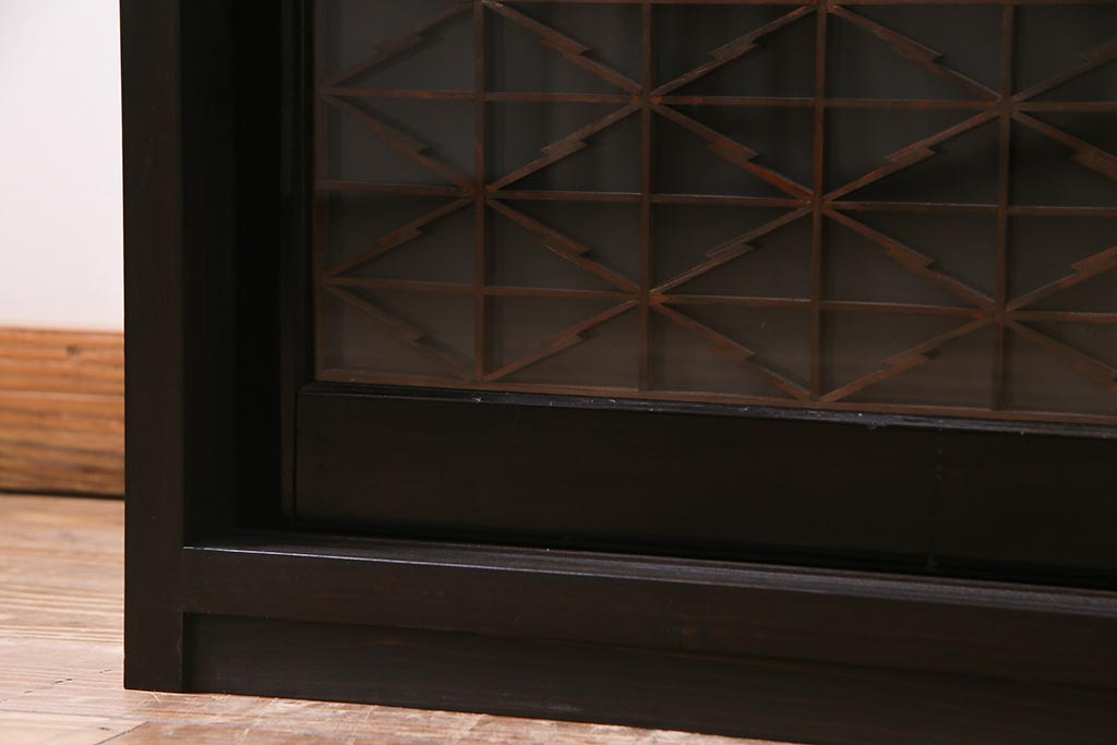 ラフジュ工房オリジナル アンティーク古建具リメイク すりガラス入り 組子模様が美しい重ね戸棚(書院戸、収納棚、キャビネット)(R-038131)