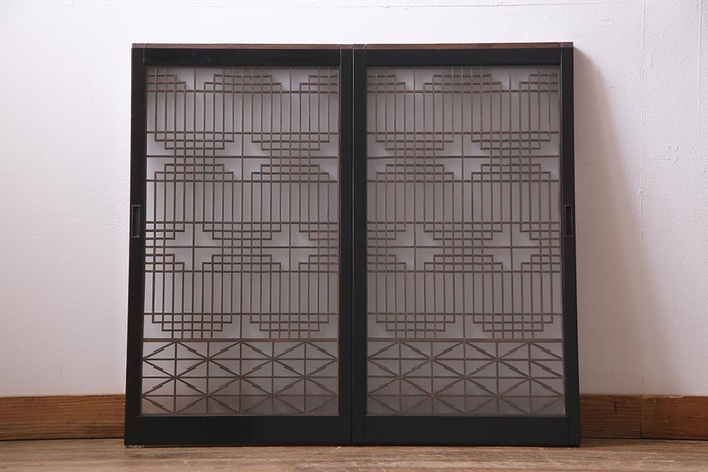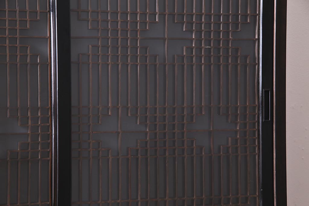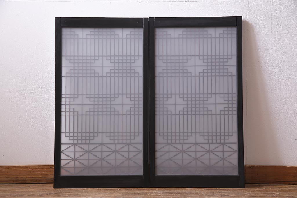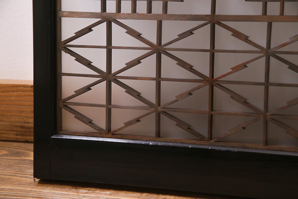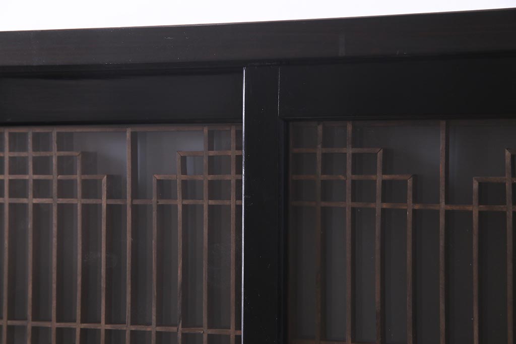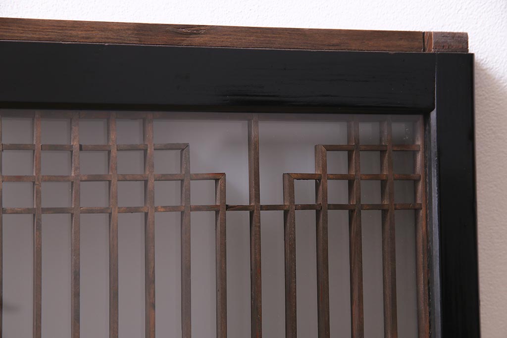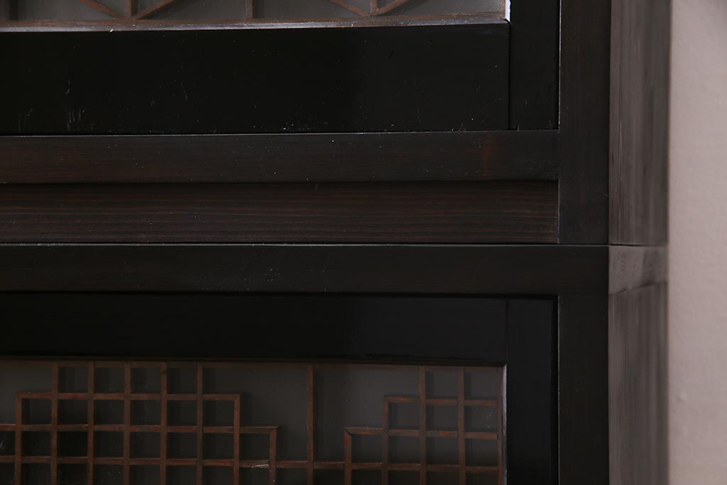 ラフジュ工房オリジナル アンティーク古建具リメイク すりガラス入り 組子模様が美しい重ね戸棚(書院戸、収納棚、キャビネット)(R-038131)
