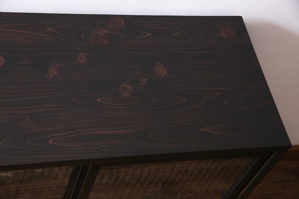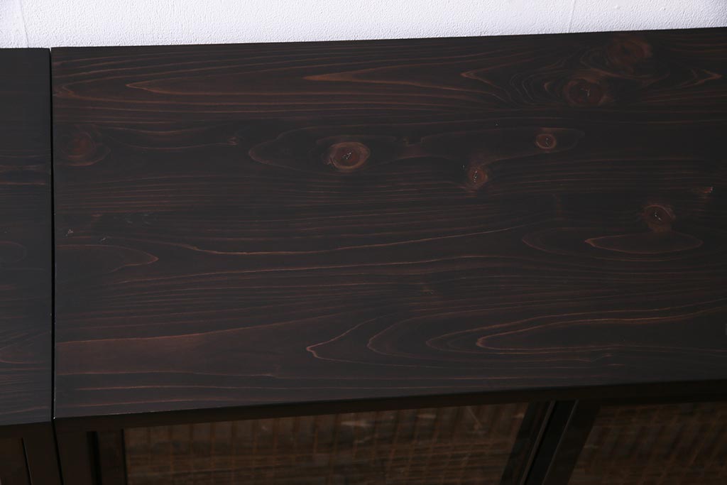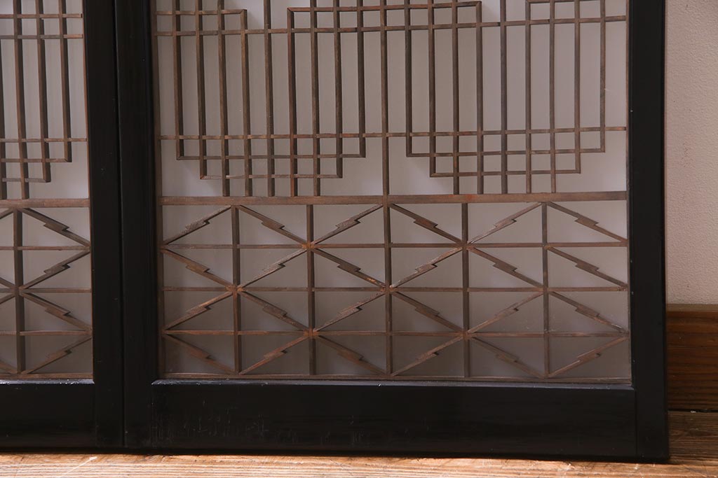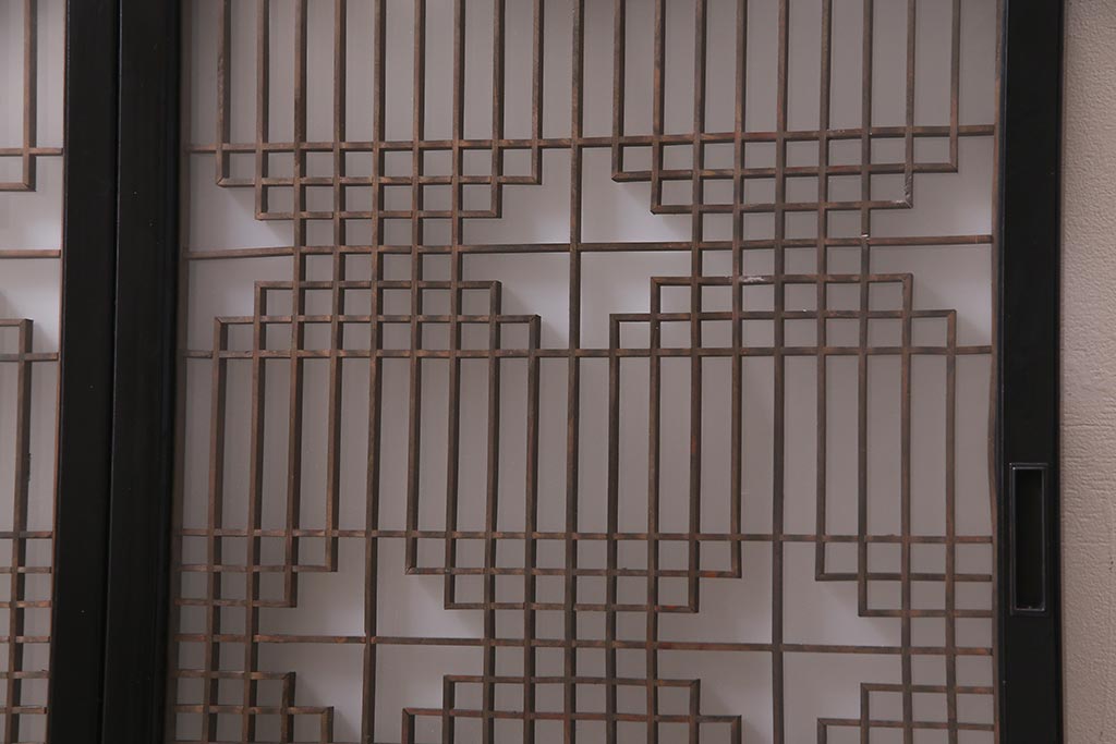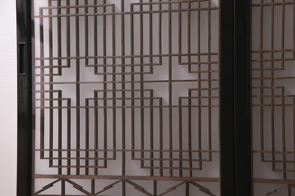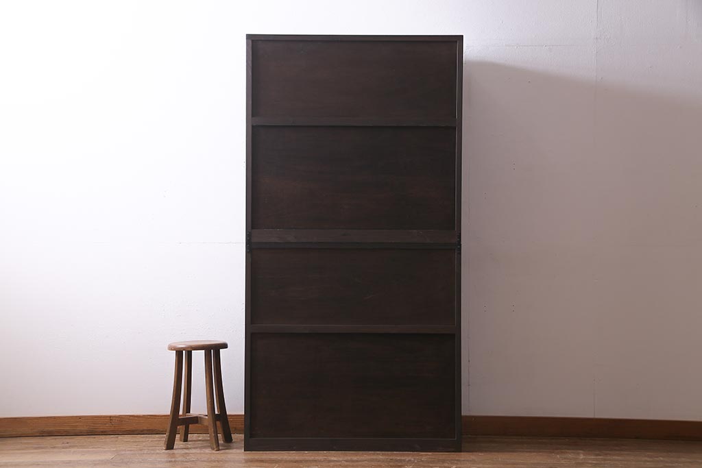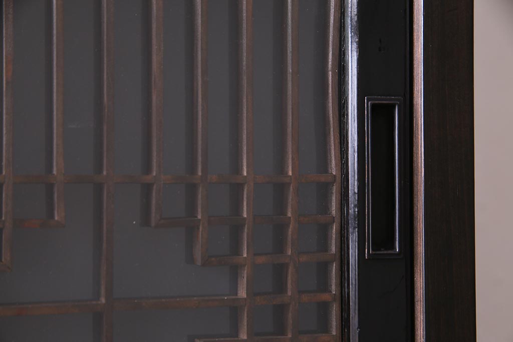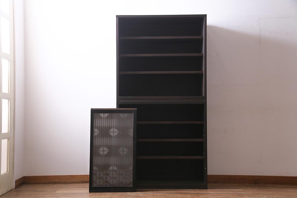 ラフジュ工房オリジナル アンティーク古建具リメイク すりガラス入り 組子模様が美しい重ね戸棚(書院戸、収納棚、キャビネット)(R-038131)