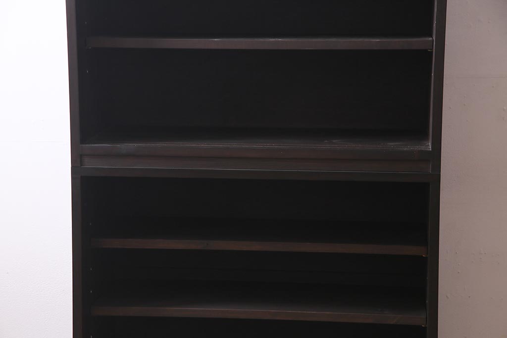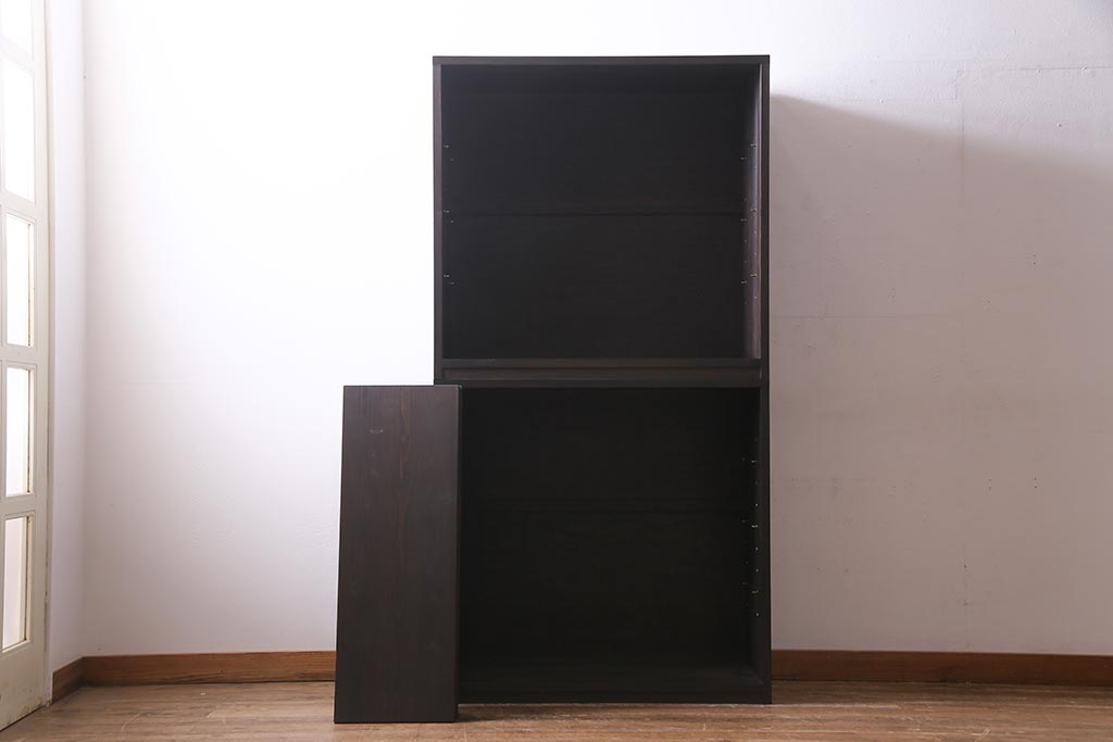 ラフジュ工房> キャビネット・戸棚> 下駄箱 > ラフジュ工房オリジナル アンティーク古建具リメイク すりガラス入り 組子模様が美しい重ね戸棚(書院戸、収納棚、キャビネット)(R-038131)