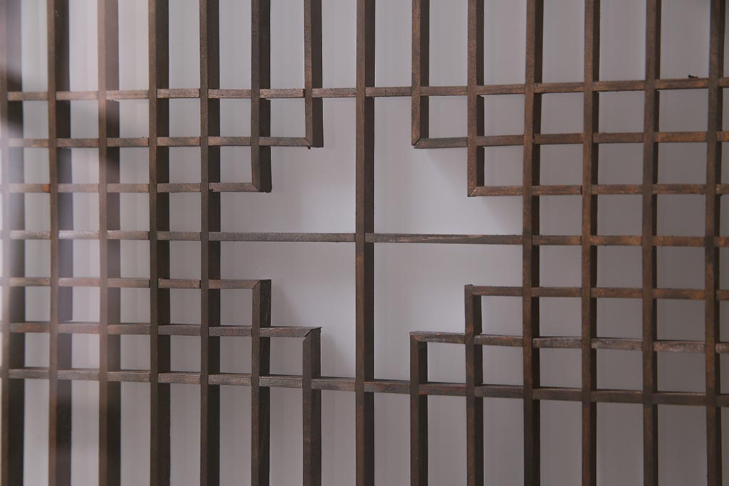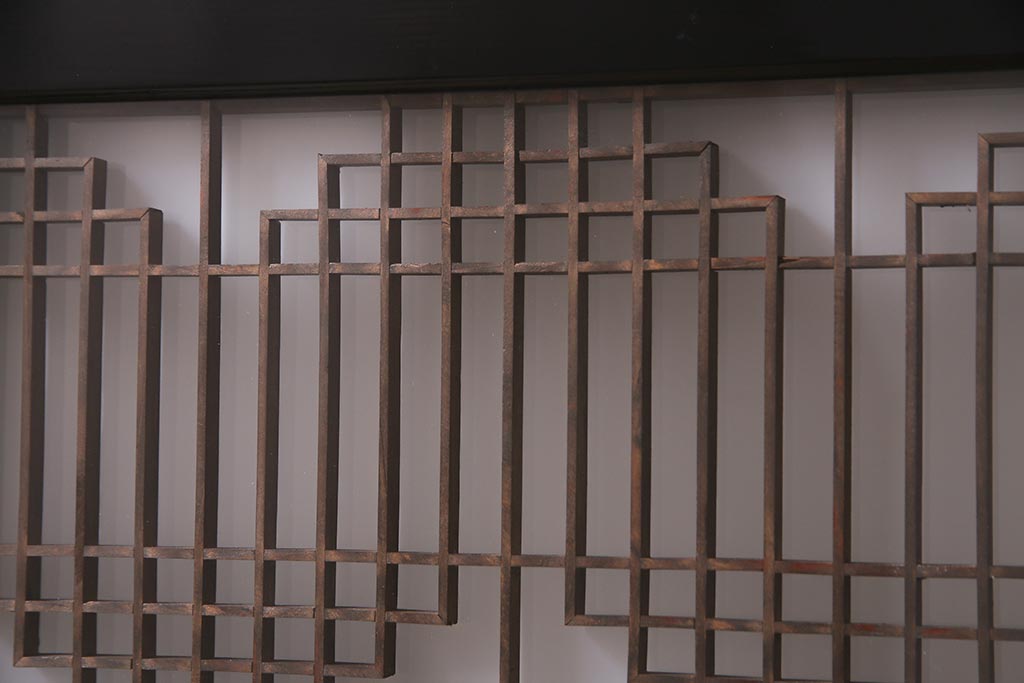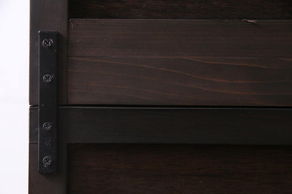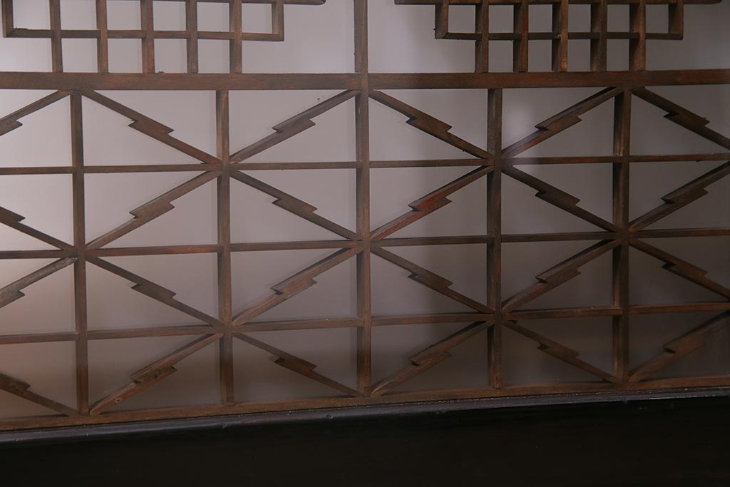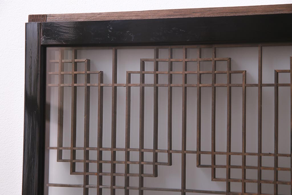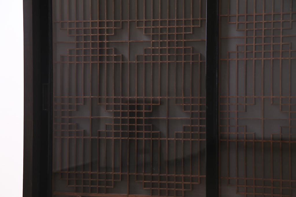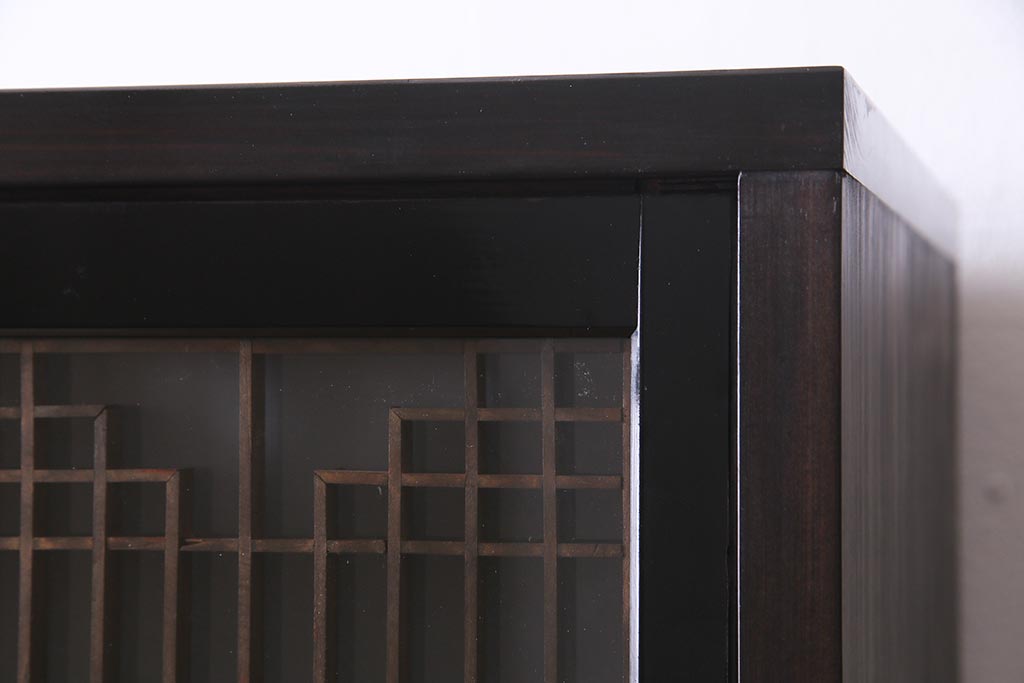 ラフジュ工房> キャビネット・戸棚> サイドボード > ラフジュ工房オリジナル アンティーク古建具リメイク すりガラス入り 組子模様が美しい重ね戸棚(書院戸、収納棚、キャビネット)(R-038131)