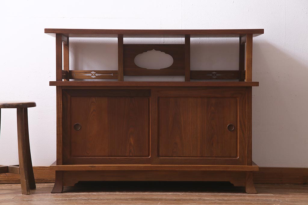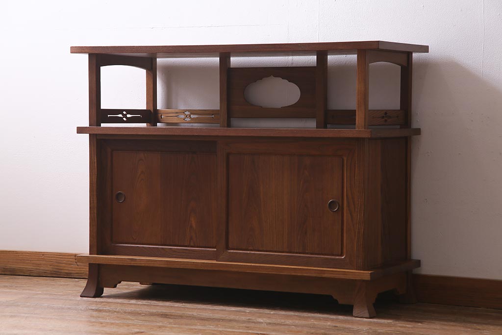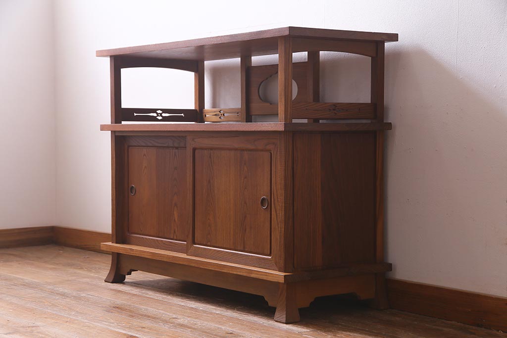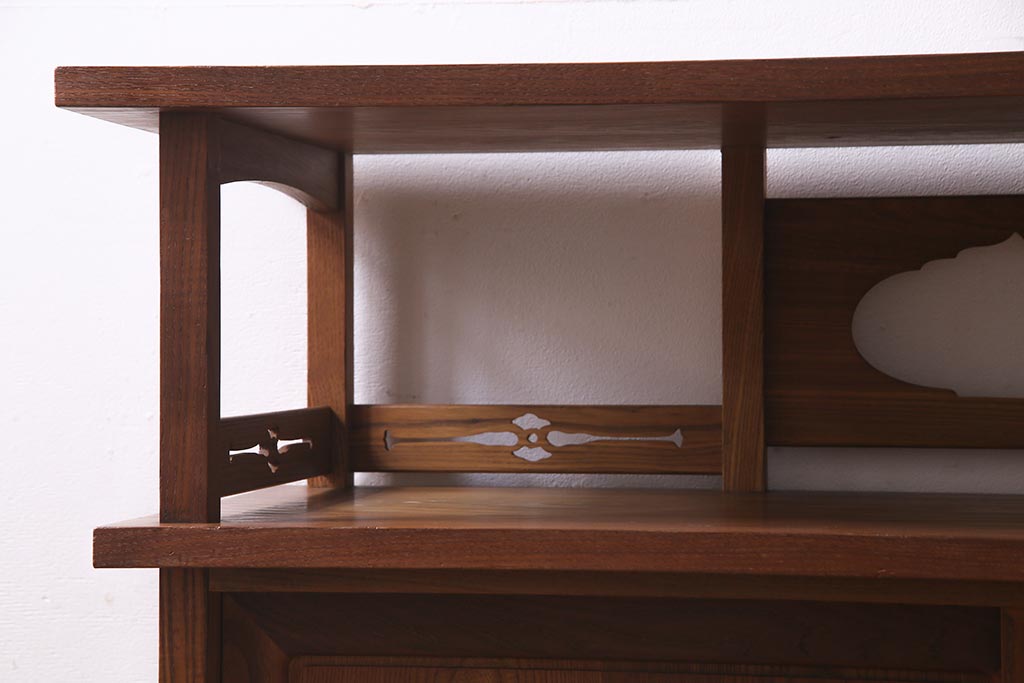 和箪笥> 茶箪笥・茶棚 > 中古 指物工芸家具 桑総無垢材 高級品!和の趣たっぷりの茶箪笥(飾り棚)(R-038133)(定価約80万円)